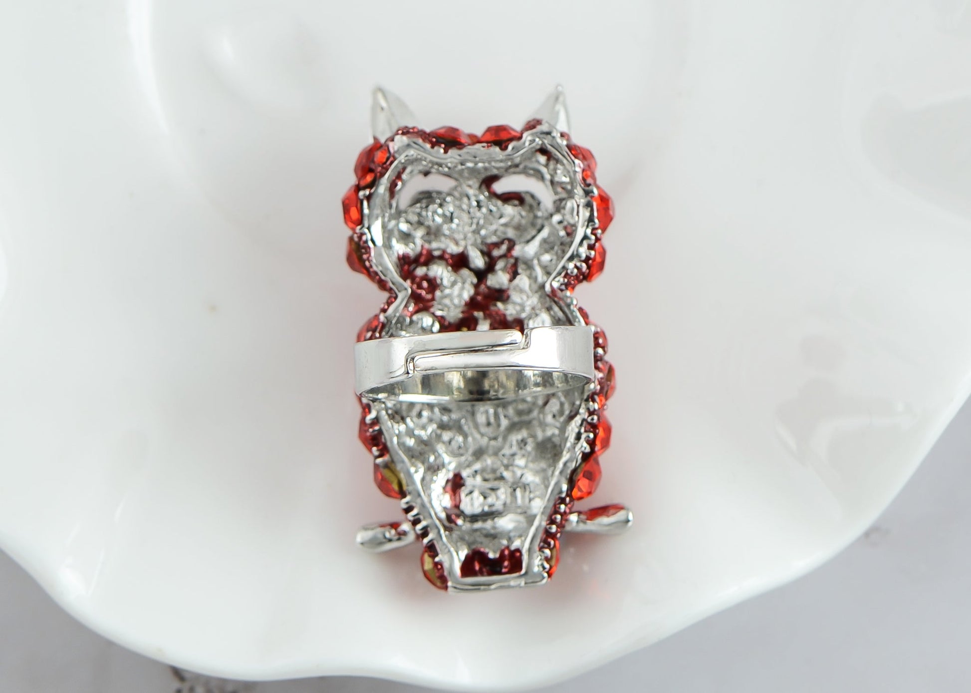 • UNIQUE DESIGN - Adjustable ring featuring owl design with red colored gemstones and clear rhinestones.