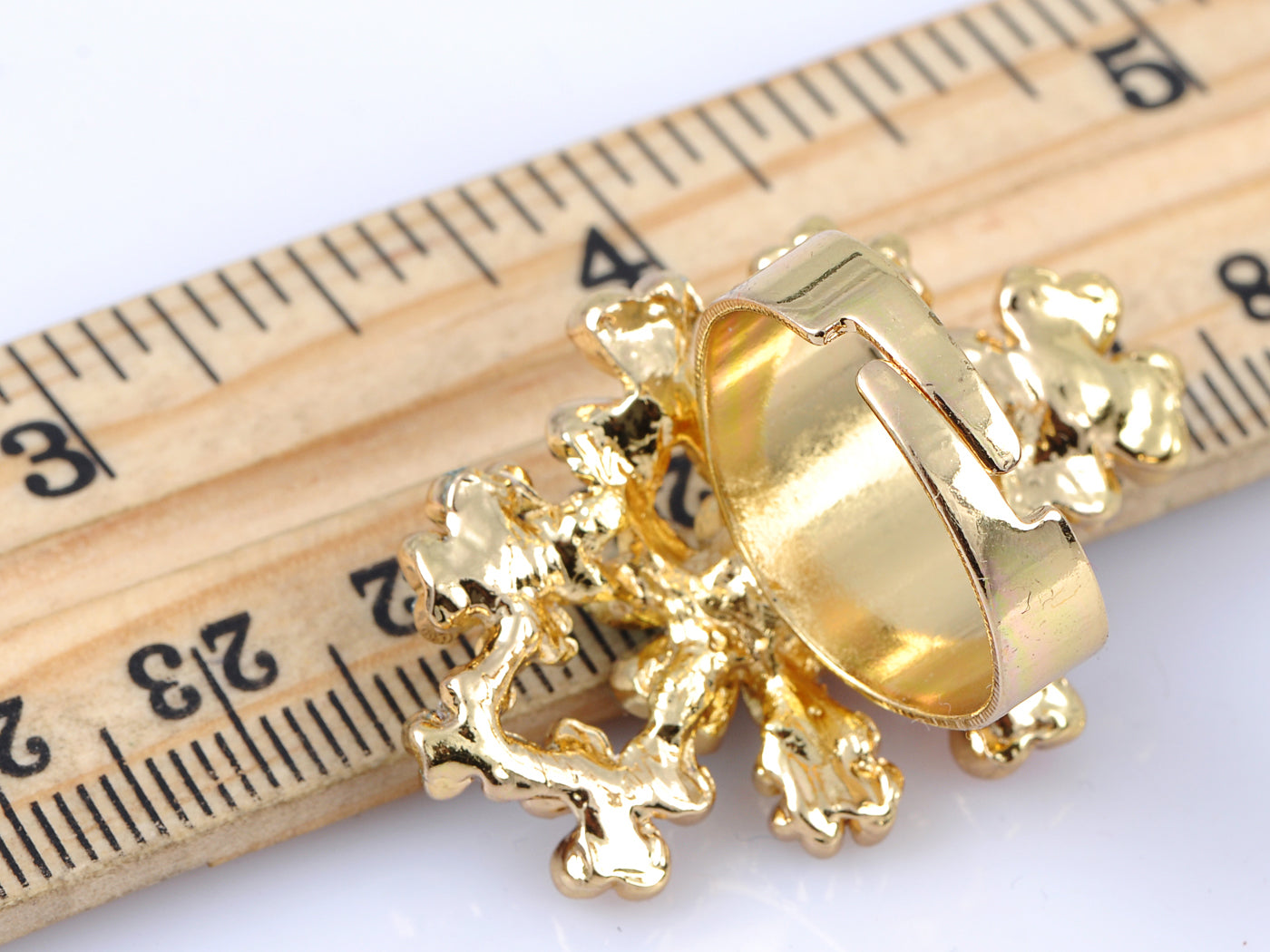 - UNIQUE DESIGN - Adjustable ring featuring floral and ladybug design with mostly purple colored rhinestones and painted enamel.