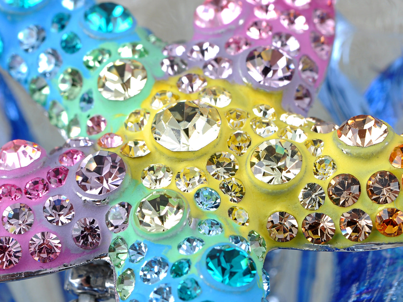 - FUNKY DESIGN - Add a bright pop of color to your outfit with this multicolored enamel neon starfish ring! Let your light sparkle with this merry Starfish covered with a glittering rainbow of rhinestones. Ring band is adjustable to your finger size and has stretch for ease of movement.