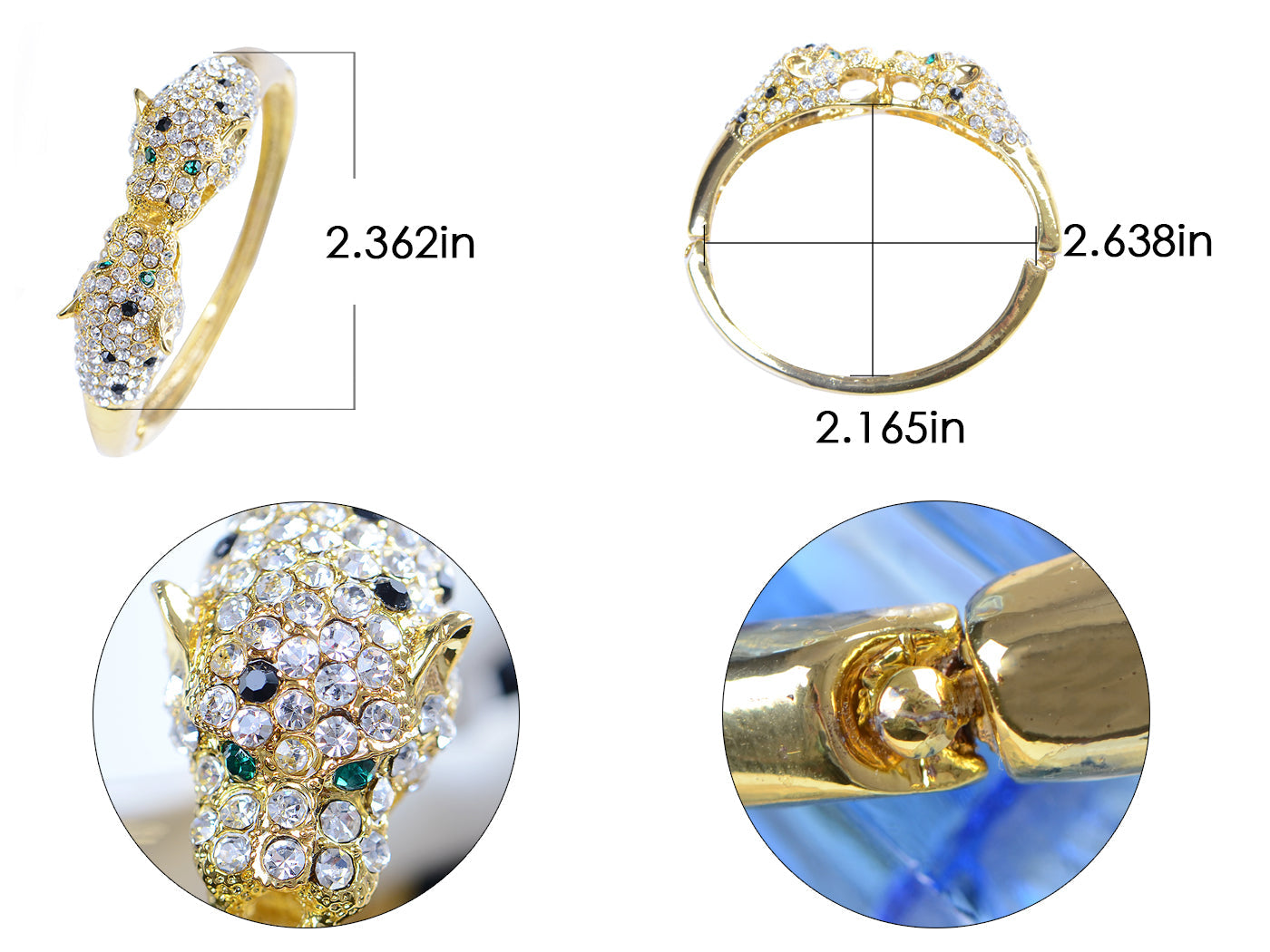 - UNIQUE DESIGN - Animal bracelet featuring twin lion design with gold head and black clear colored rhinestones.