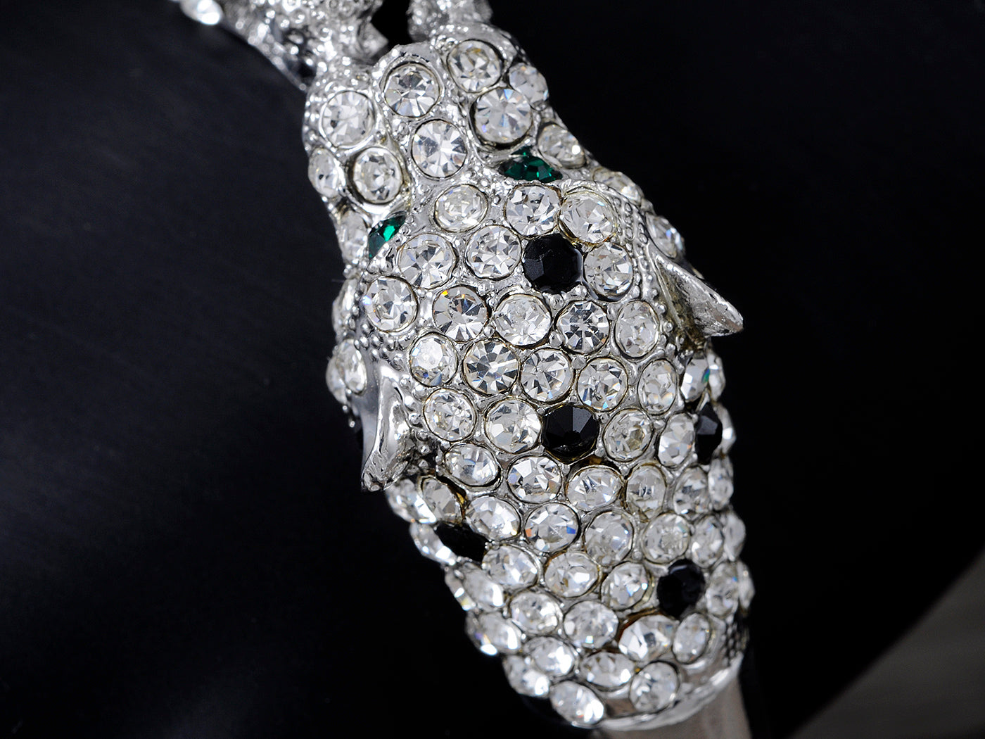 D Black Emerald Twin Lion Cuff Bracelet Bangle