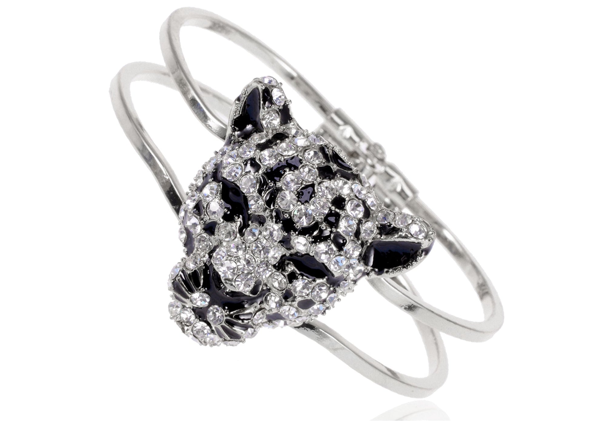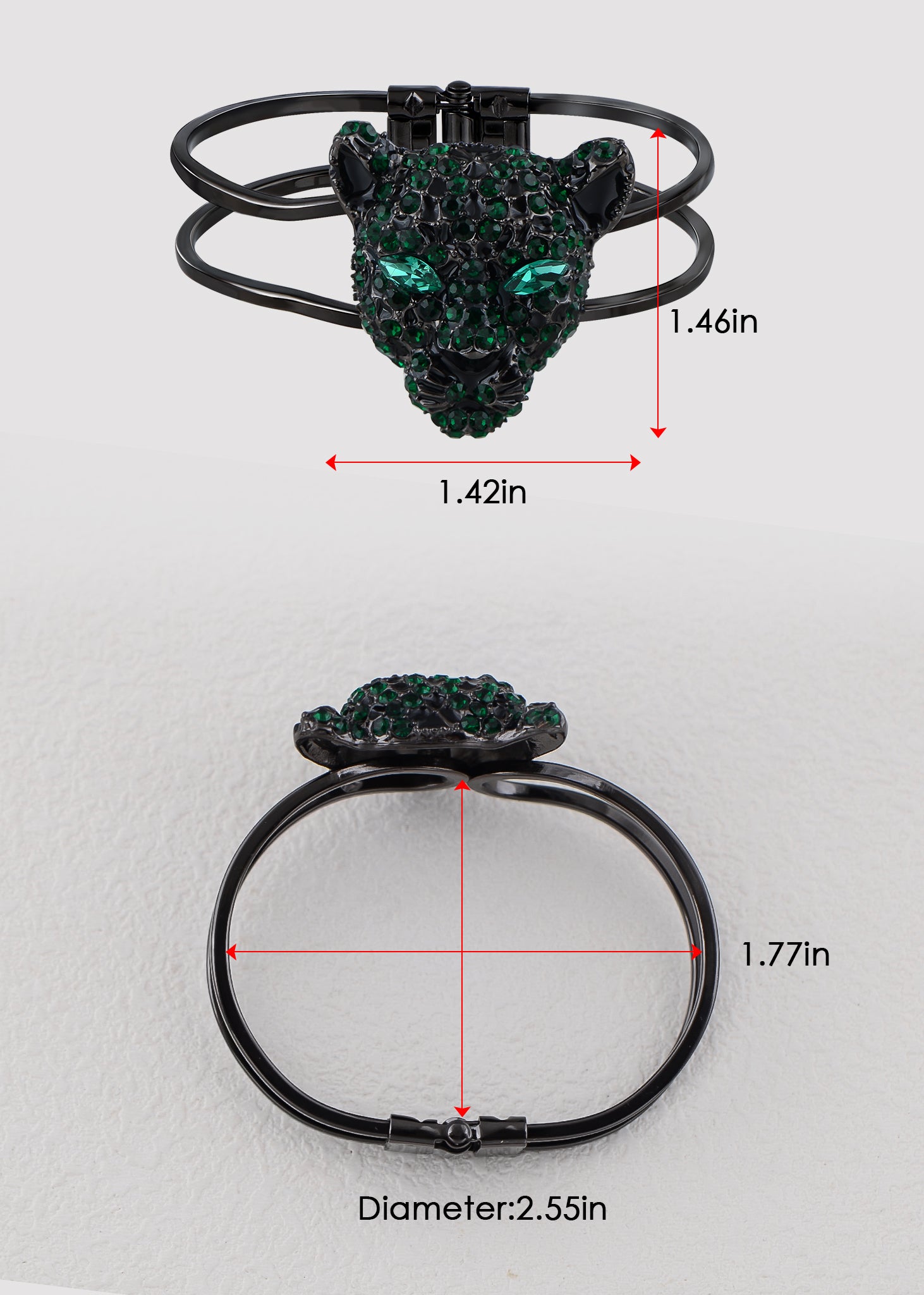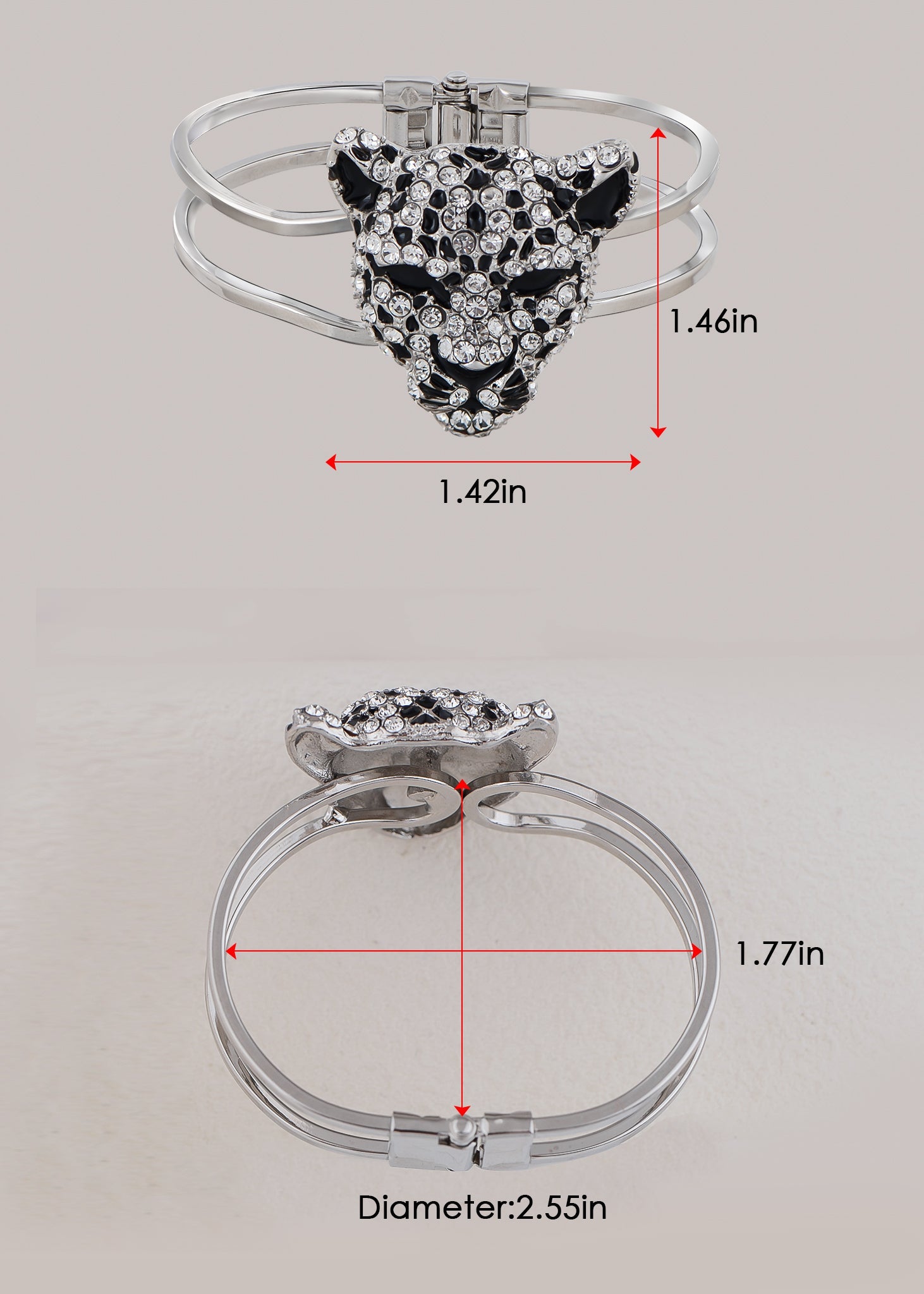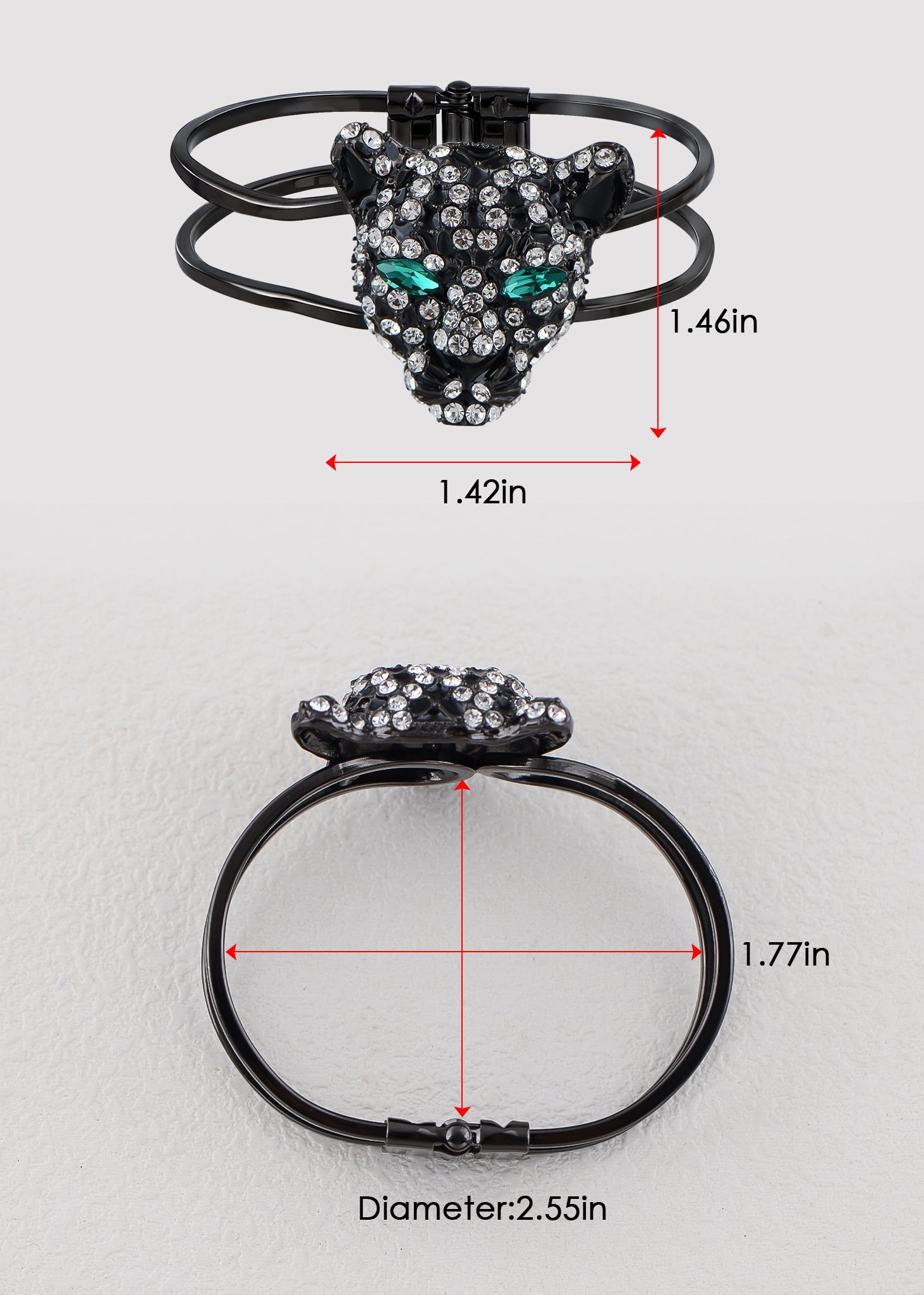 - UNIQUE DESIGN - Stunning golden tone layered cuff bracelet featuring a cheetah head design with sparkly clear crystal rhinestones and black painted enamel, and golden tone metal alloy base.