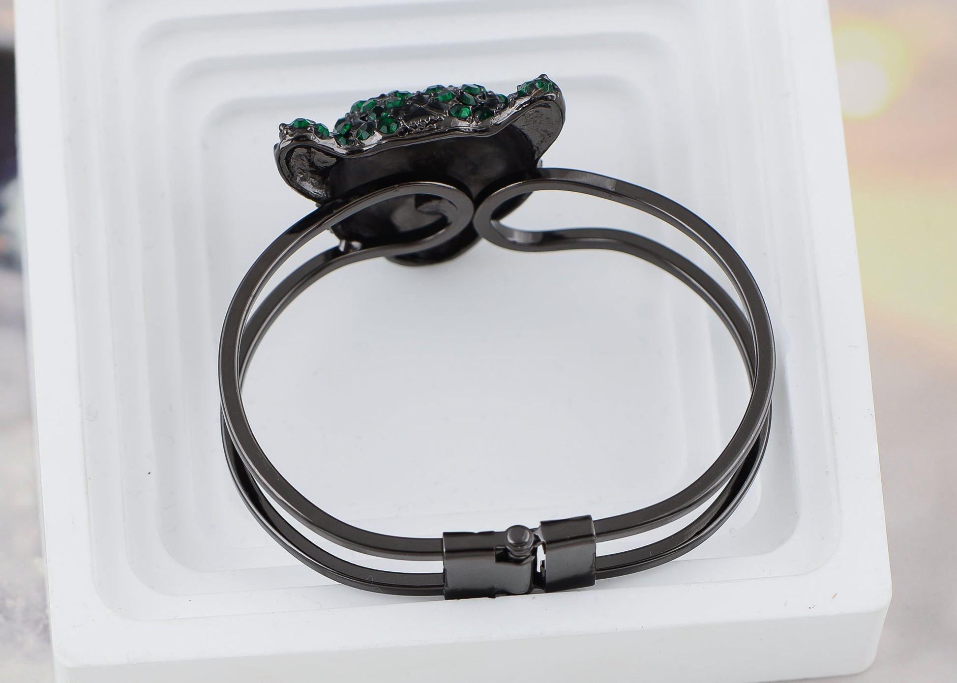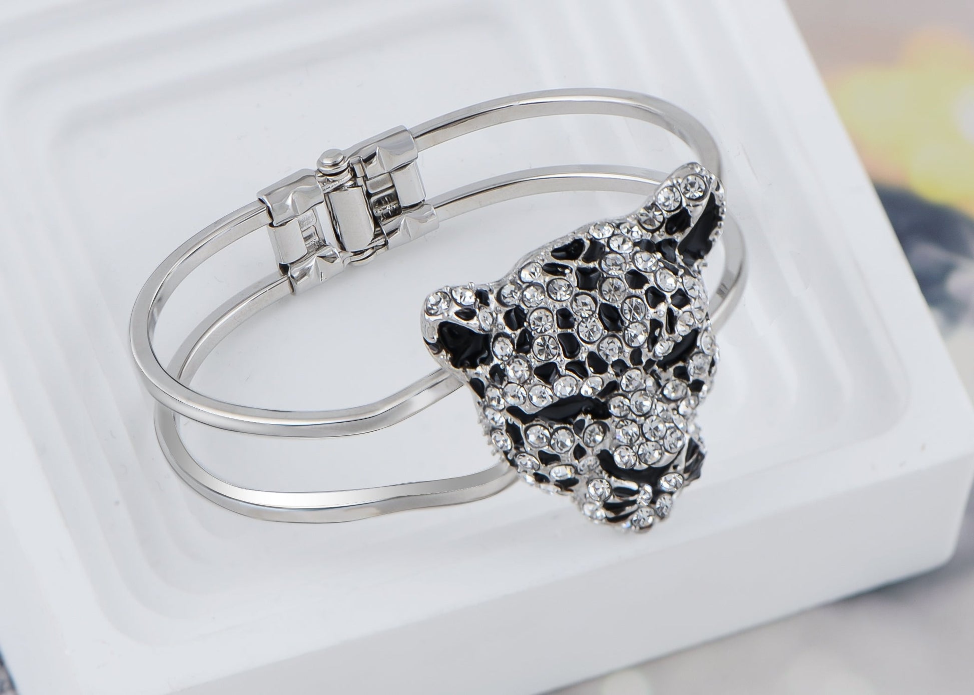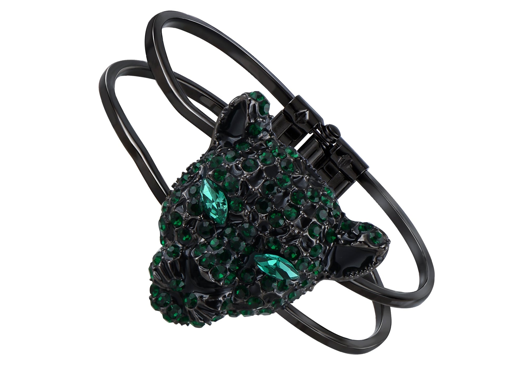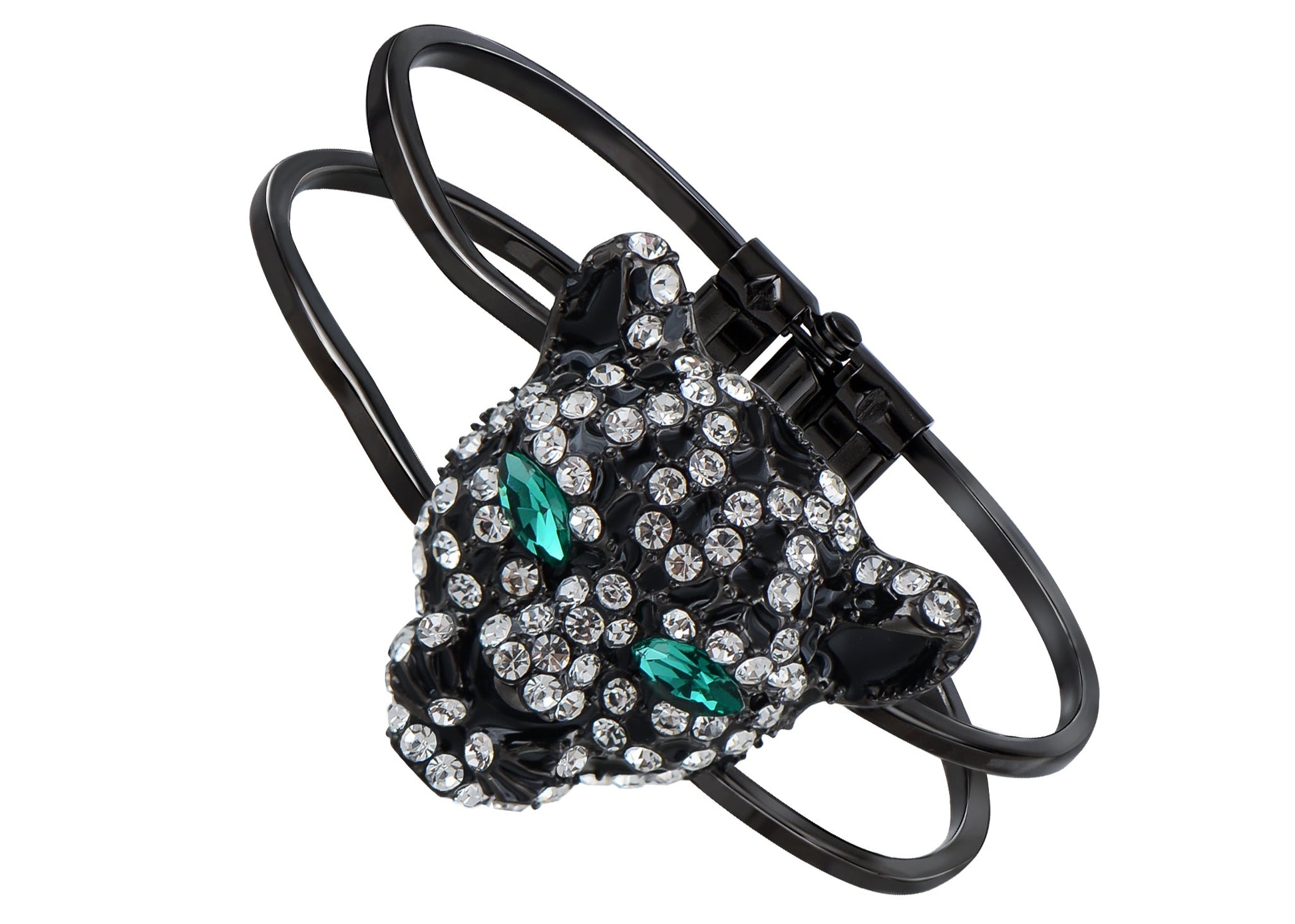 - UNIQUE DESIGN - Stunning golden tone layered cuff bracelet featuring a cheetah head design with sparkly clear crystal rhinestones and black painted enamel, and golden tone metal alloy base.