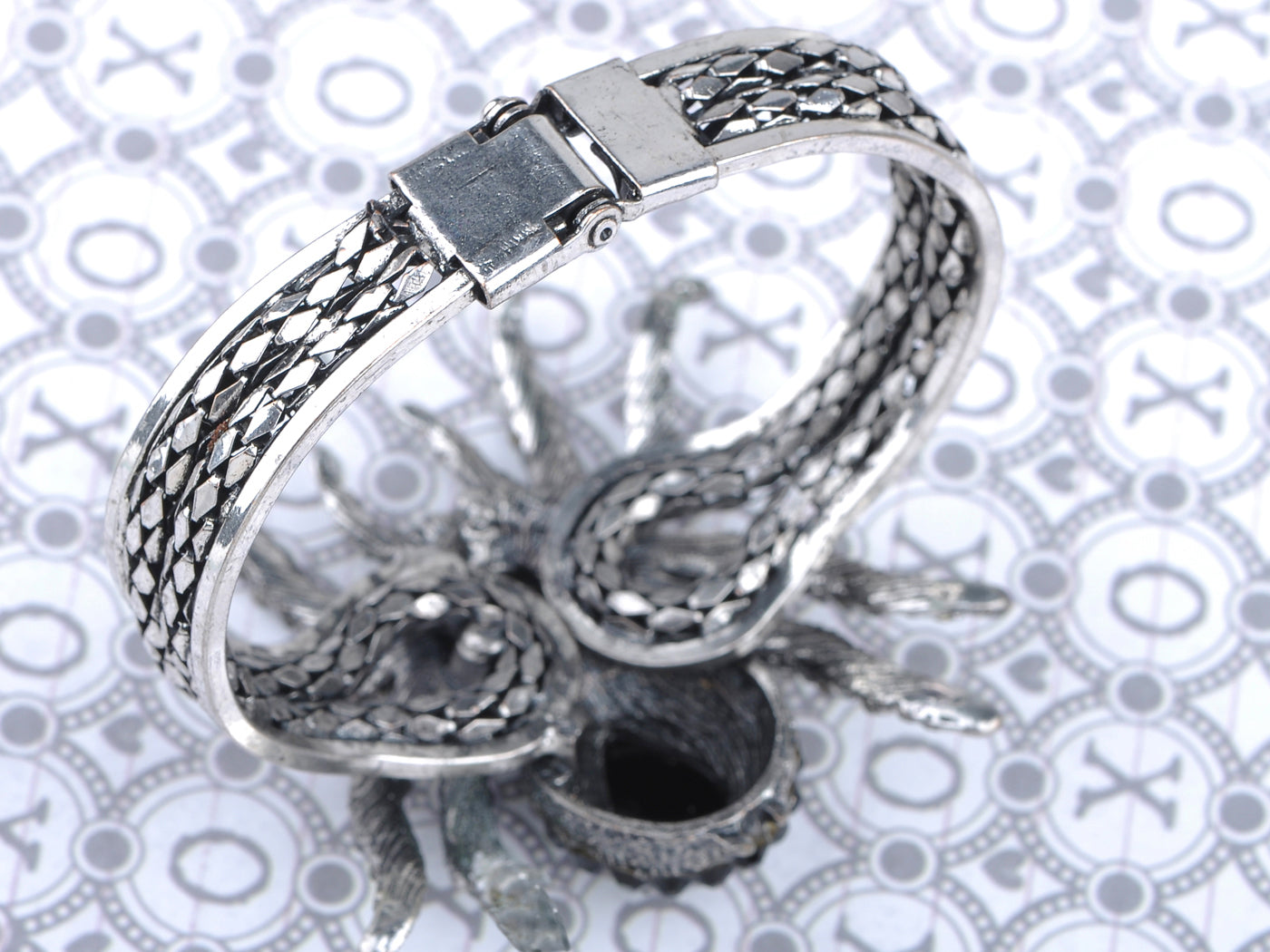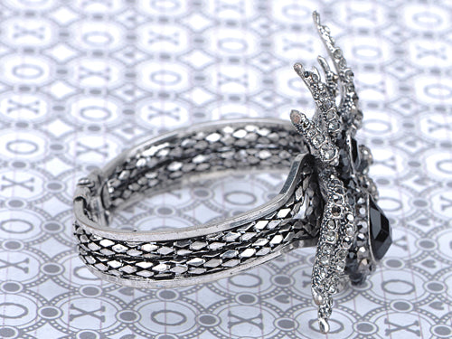 - UNIQUE DESIGN - Bangle bracelet featuring spider design with black colored rhinestones.