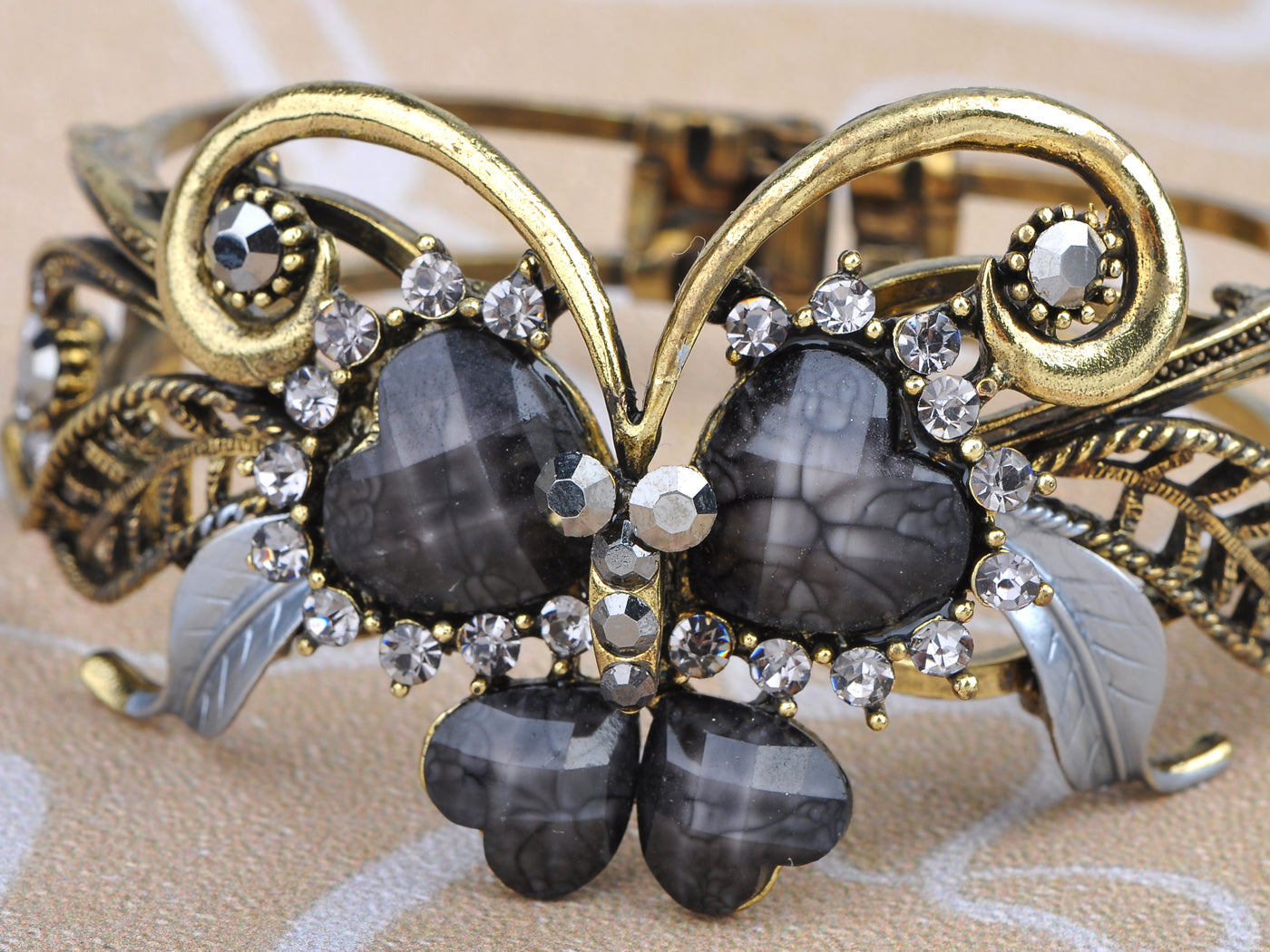 Grey Heart Bead Love Butterfly Cuff Bracelet Bangle