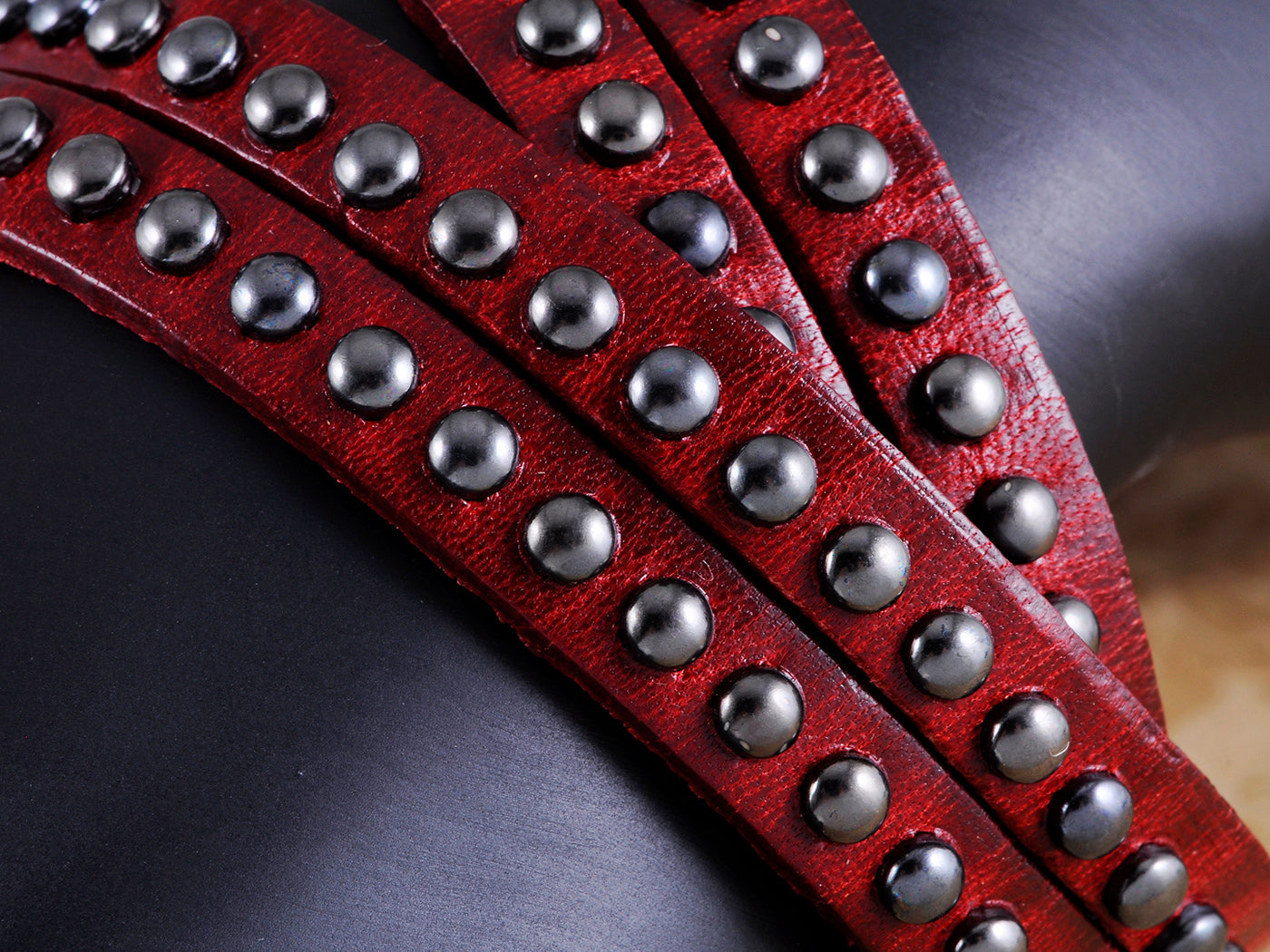 Mahogany Brown Multi Strand Leather Stud Wrapped Wrist Band Bracelet