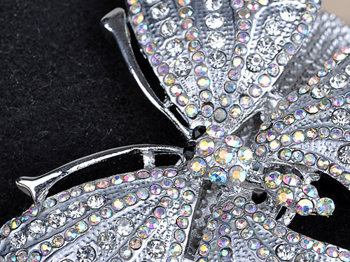• UNIQUE DESIGN - Big butterfly design featuring silver and aurora borealis colored rhinestones.