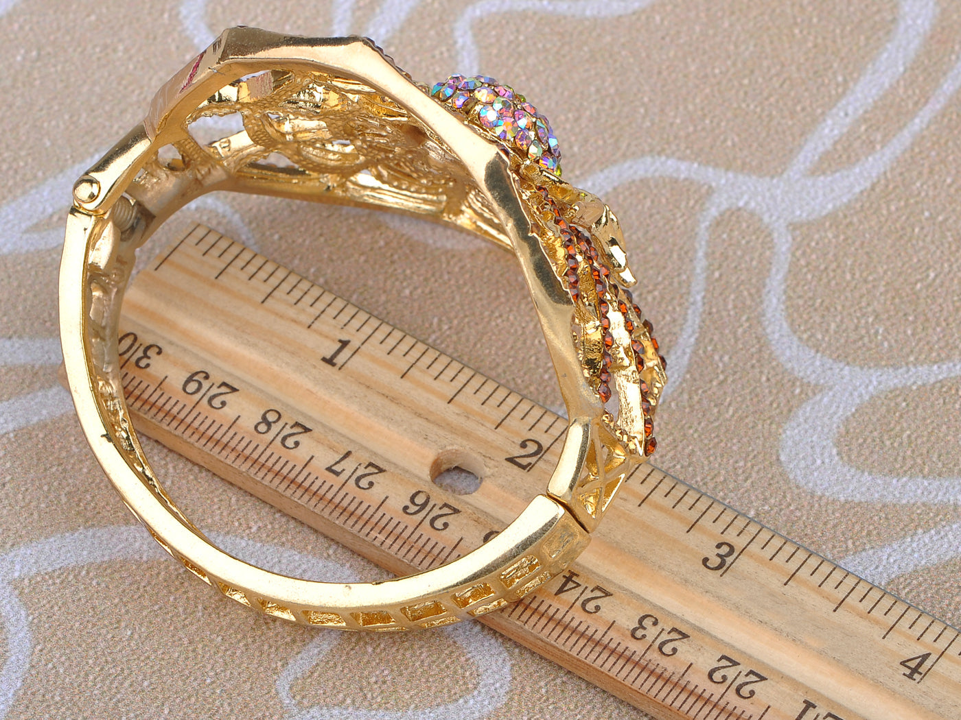- UNIQUE DESIGN - Bracelet bangle cuff featuring halloween creepy spider web design with synthetic topaz aurora borealis green crystal rhinestone and gold tone alloy metal.
