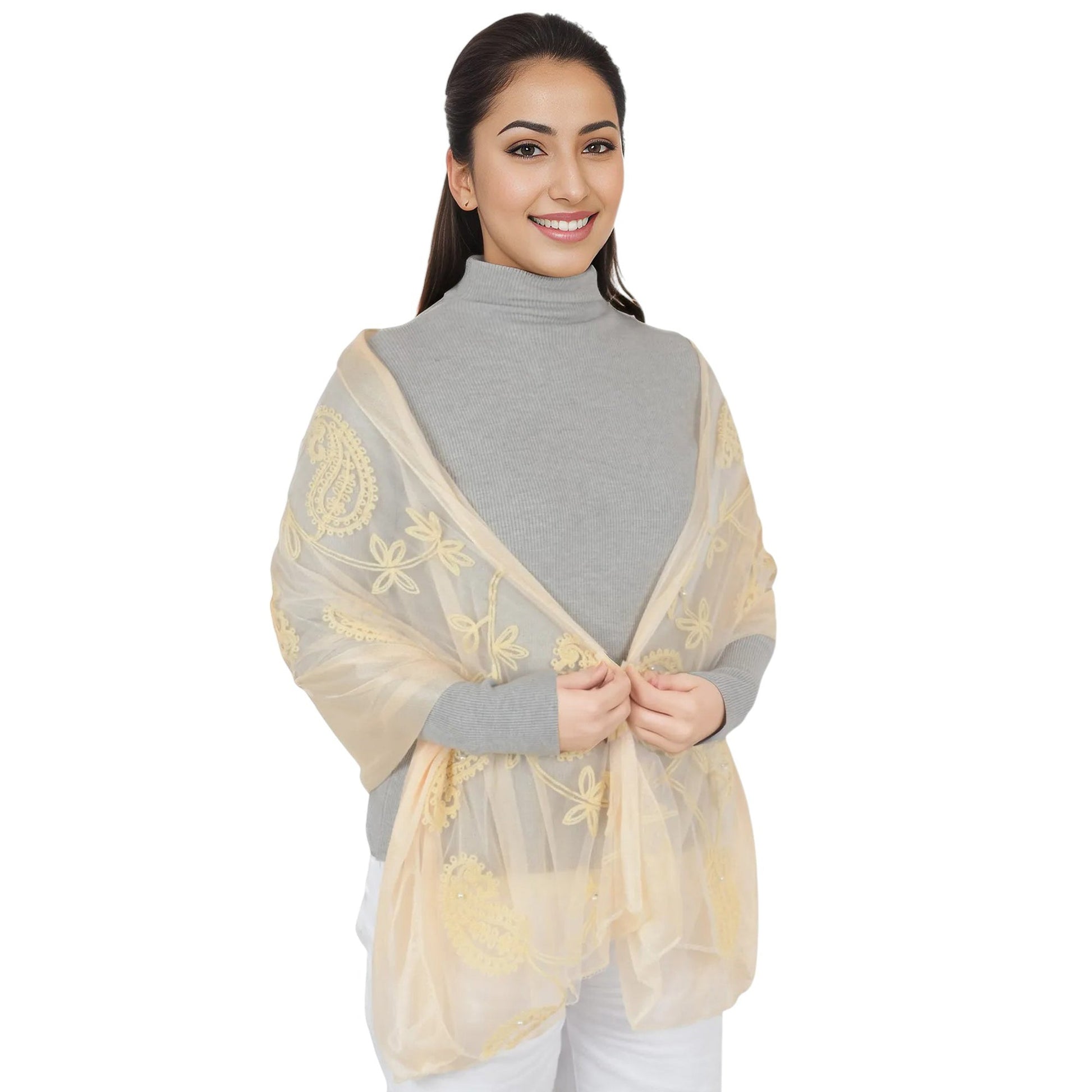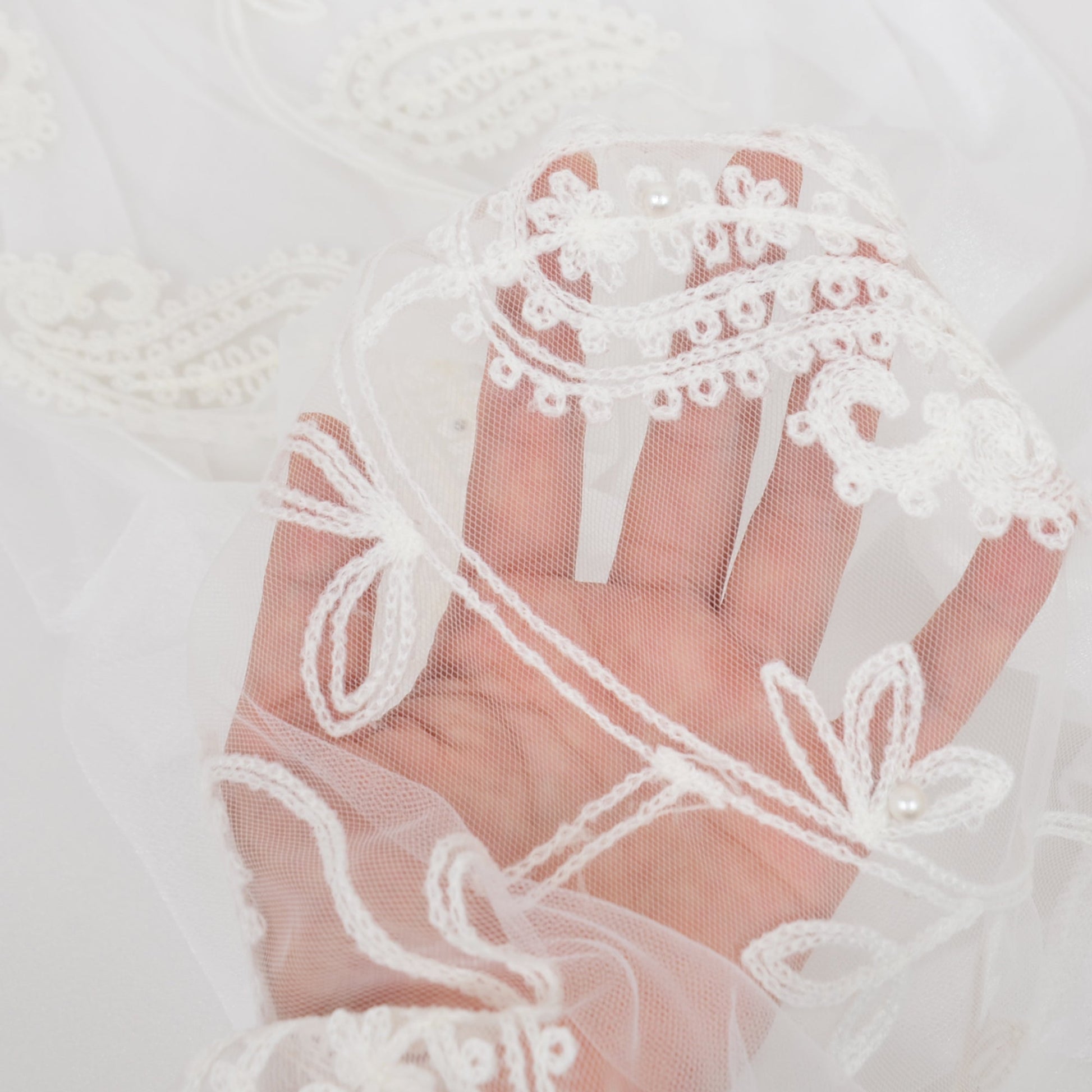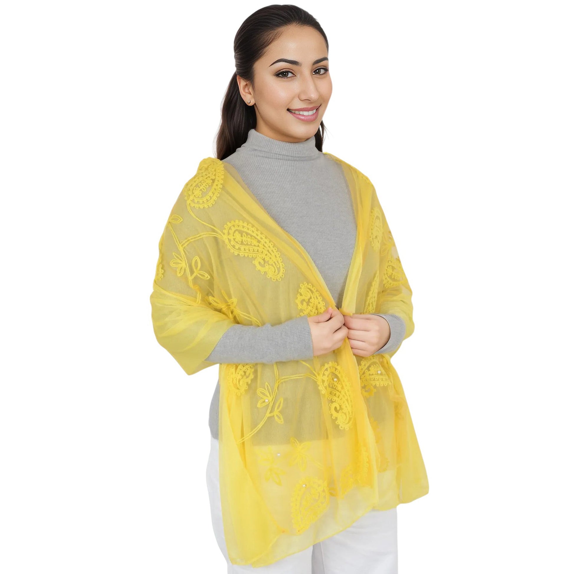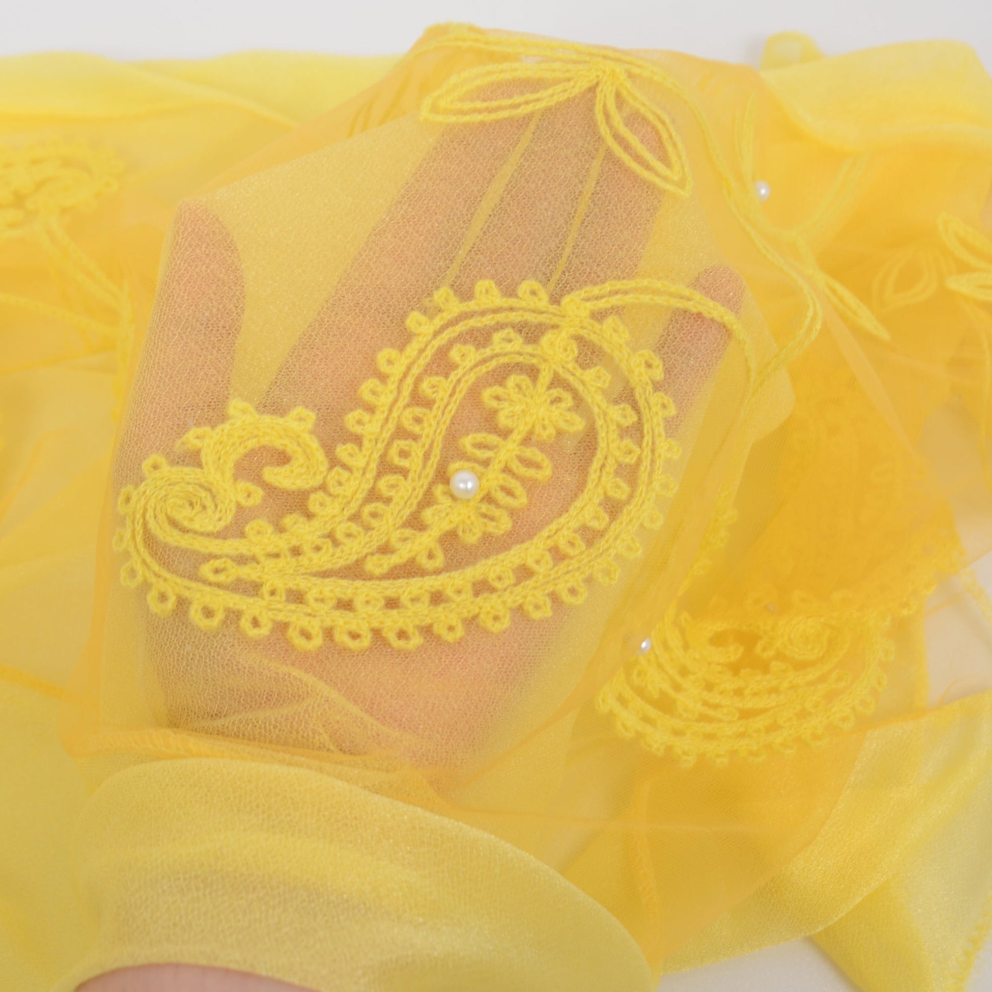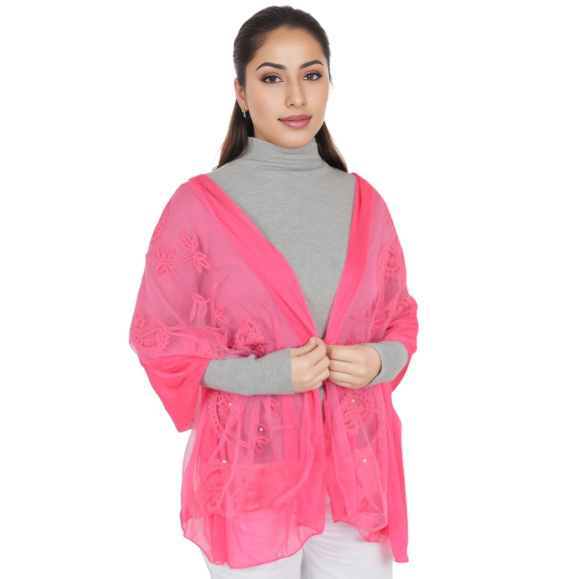 Elevate your outfit with this women's embroidered floral lace scarf. Crafted with intricate floral lace embroidery, this elegant scarf features a double-layered design for added depth and texture. Embellished with delicate faux pearl accents, it brings a touch of sophistication and charm to any look. The lightweight and breathable fabric make it great for layering throughout the year, whether draped over your shoulders or tied as a stylish wrap. Designed for versatility, this scarf is an ideal accessory for both casual and formal occasions, adding timeless beauty and a hint of glamour to your wardrobe.