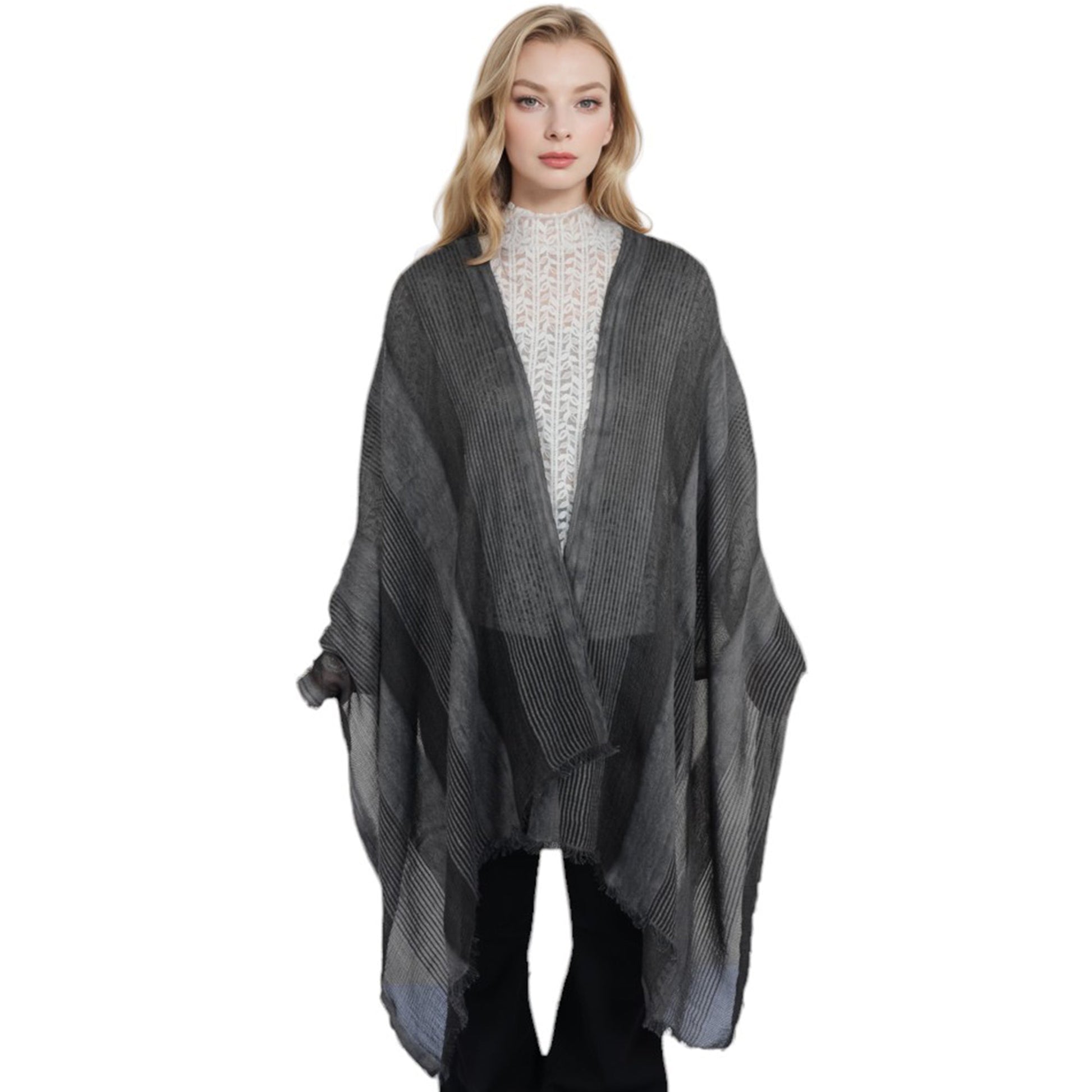 Vintage Textured Striped Scarf Lightweight Fringed Soft Warm Wrap Shawls for Women
