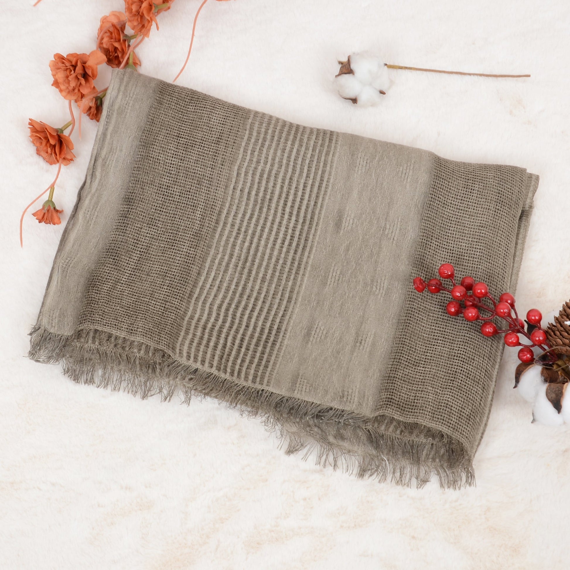This textured stripe scarf combines timeless elegance with modern versatility, featuring a chic blend of stripe patterns and subtle woven details. Crafted from lightweight yet warm fabric, this scarf offers exceptional softness and comfort for everyday wear. The fringed edges add a touch of sophistication, making it ideal for both casual and formal outfits. Whether layered over a coat or paired with a sweater, this scarf is a must-have accessory for staying cozy and chic.