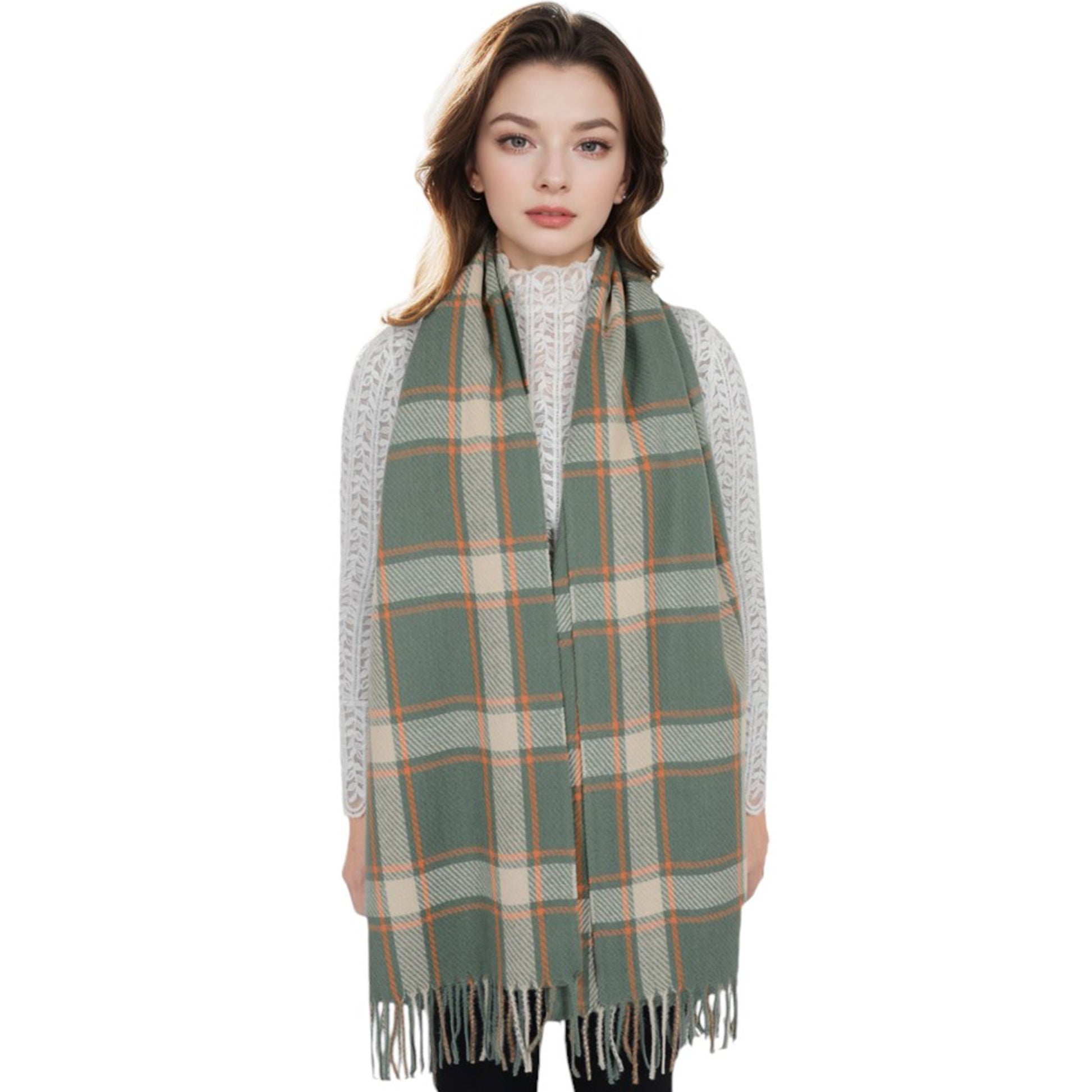 Classic Plaid Winter Scarf Cashmere Feel Checked Fringe Wrap Shawls for Women