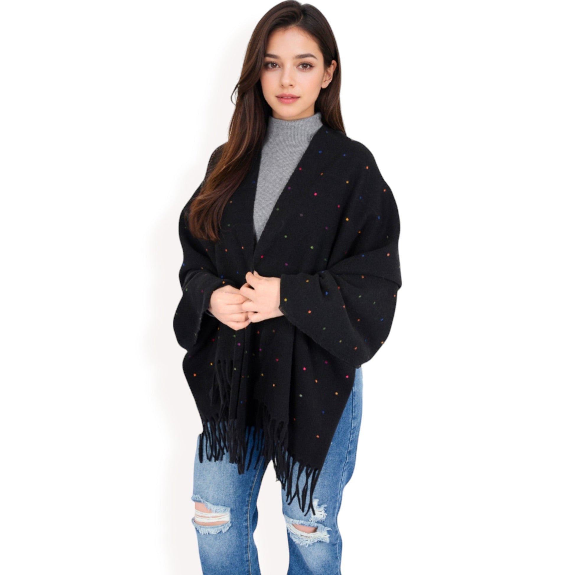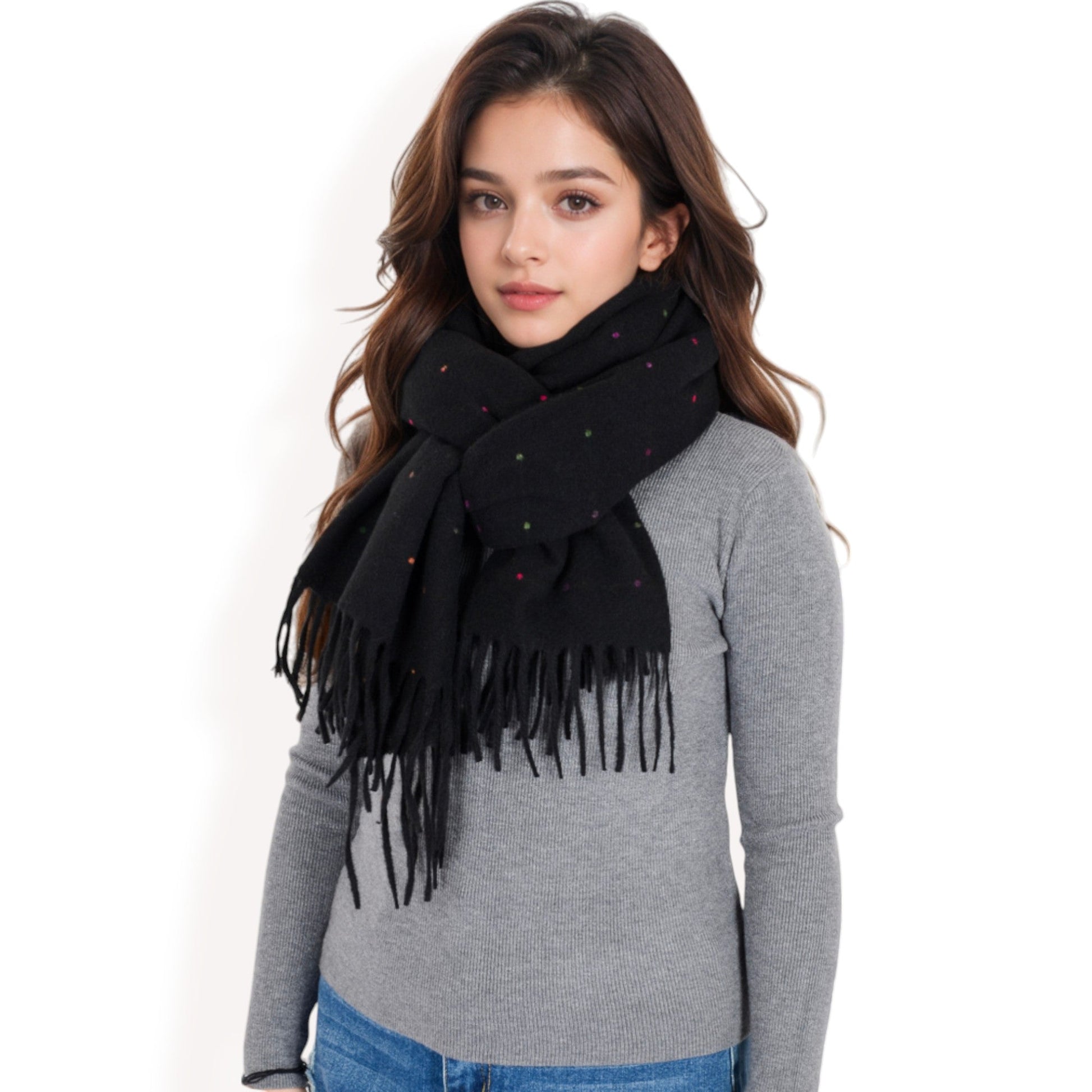 Cashmere-Like Polka Dot Fringe Scarf with Soft Fabric and Lightweight Warmth