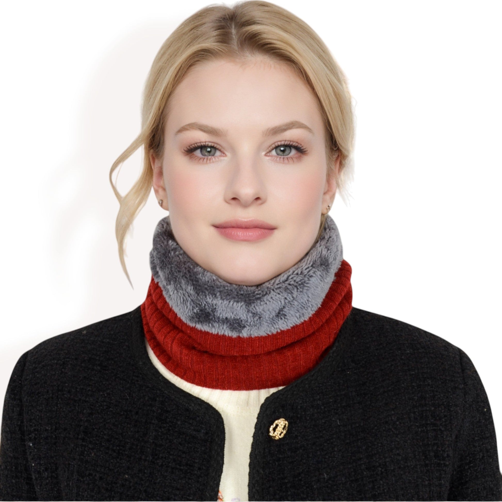 Ribbed Knit Neck Warmer with Fleece Lining for Winter Warmth and Comfort