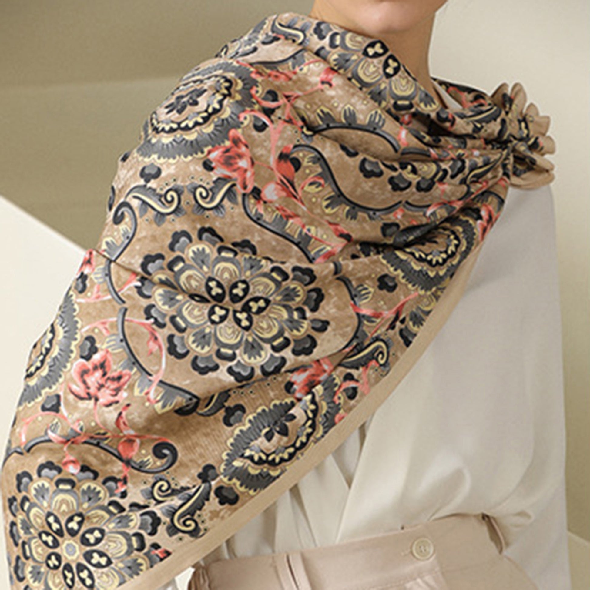 Paisley Print Silky Scarf with Lightweight Soft Fabric Versatile Square Neck and Hair Accessory