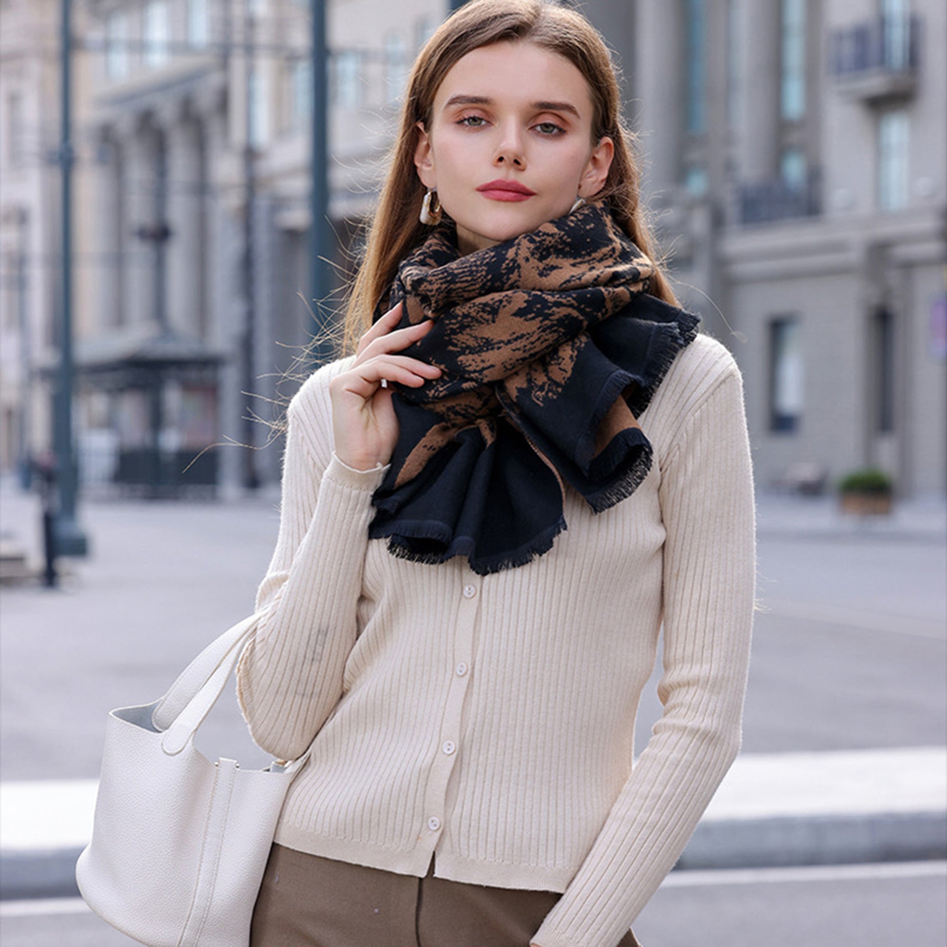 The Anna-Kaci Women's Abstract Print Woven Scarf offers a modern, artistic flair to your everyday wardrobe. Designed with a subtle abstract pattern in versatile tones, this scarf adds depth and texture to both casual and polished outfits. Made from soft, lightweight woven fabric, it drapes effortlessly while providing breathable comfort. Finished with delicate frayed edges, this scarf is a versatile accessory that can be styled as a wrap, layered scarf, or draped for a chic finishing touch.