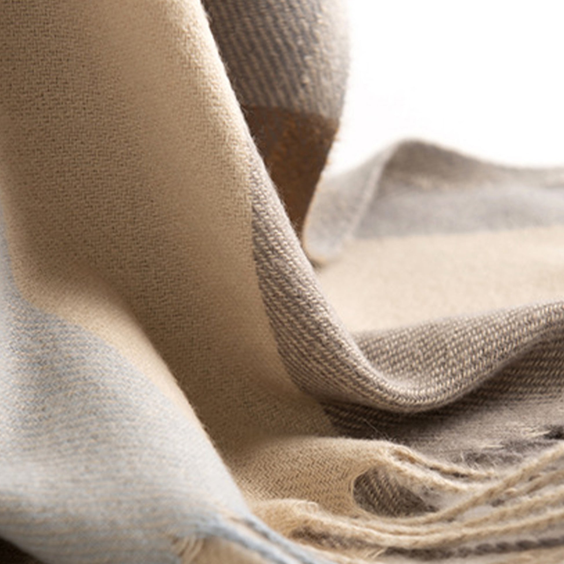 The Anna-Kaci Women's Oversized Plaid Scarf brings timeless elegance and cozy warmth to your wardrobe. This versatile wrap can be styled as a scarf, shawl, or blanket for any occasion. Featuring a soft plaid design with tassel edges, it adds both style and comfort to your outfits. Ideal for layering, this piece transitions seamlessly from casual daywear to polished evening looks.