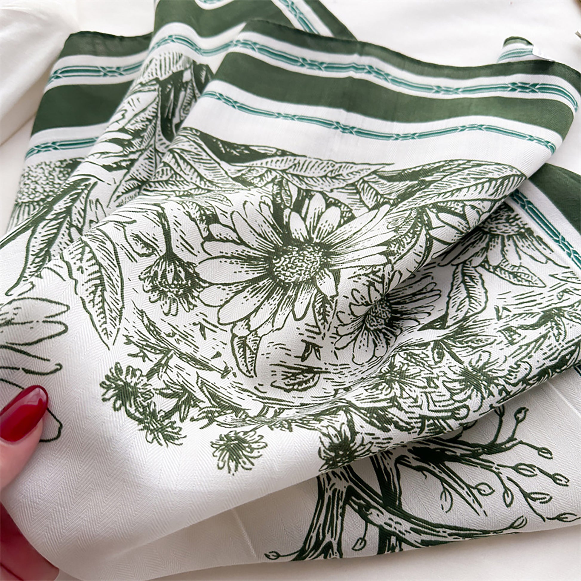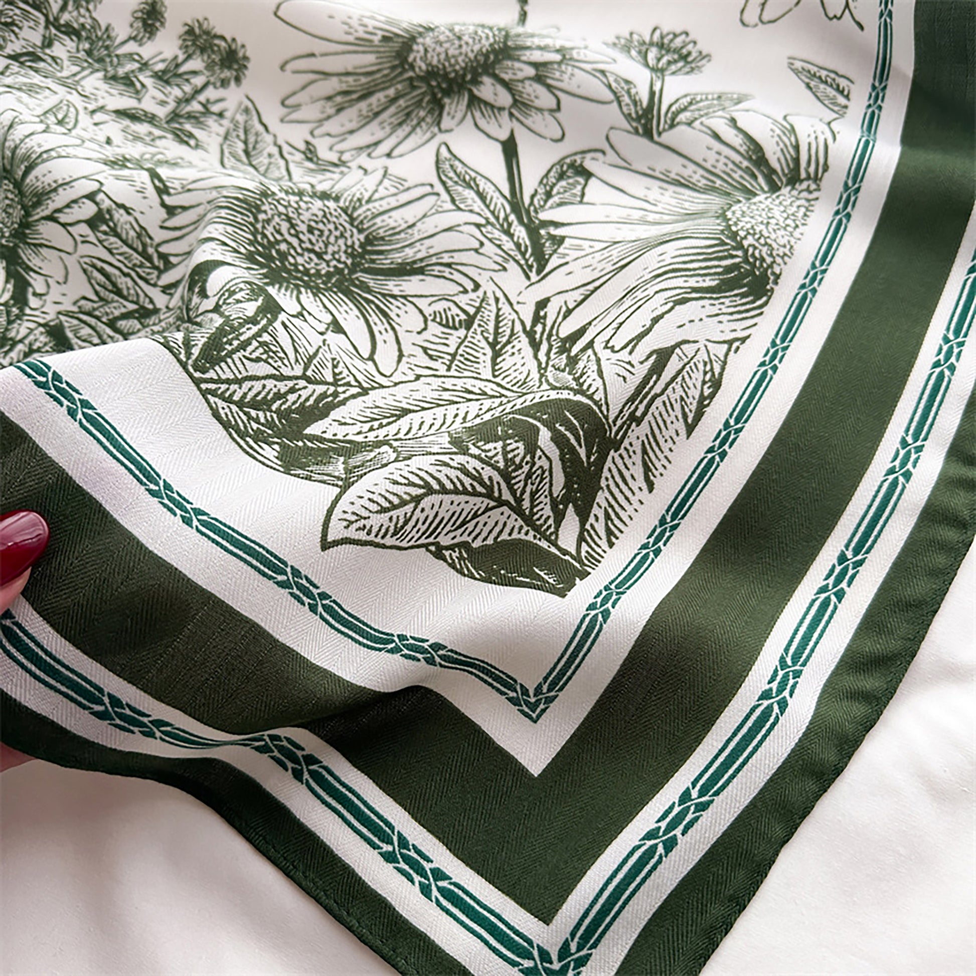 The women's square scarf combines timeless elegance with a soft, plush texture. Made from premium faux velvet fabric, it delivers a gentle and smooth touch while showcasing a beautifully detailed floral pattern framed by a striped border. This versatile accessory can be worn around the neck, tied on a bag, or used as a headscarf to add a sophisticated finish to any outfit. Perfect for elevating your wardrobe with a blend of luxury and style.