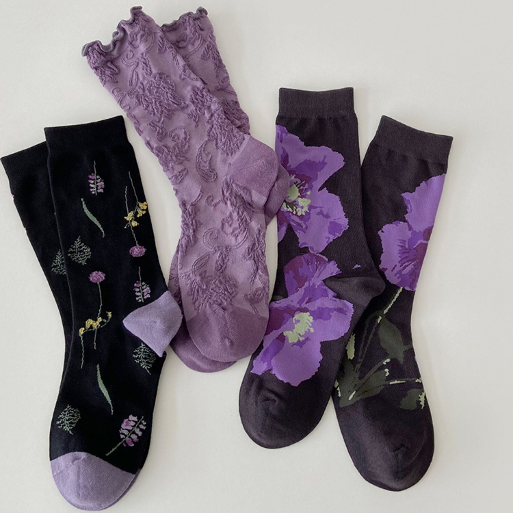 This 3-pack of women's crew socks features a blend of floral and abstract patterns, adding a splash of color and personality to your wardrobe. Crafted from a soft, stretchy fabric, they offer all-day comfort and a secure fit. The unique designs bring a stylish twist to casual or dressy looks, making them ideal for adding a fun flair to your everyday outfits.