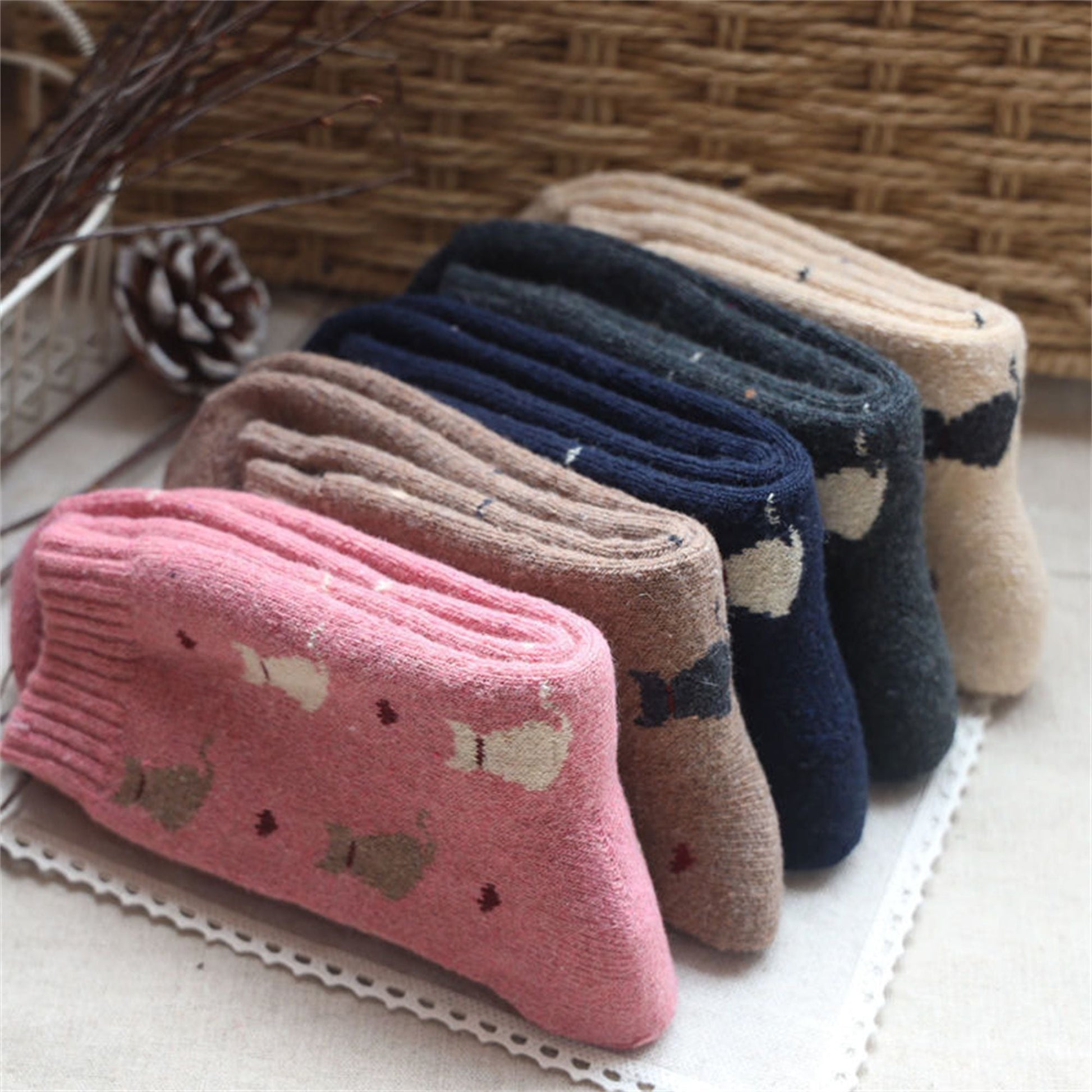 Women's 5-Pack Assorted Patterned Thick Knit Socks with Plaid and Holiday Prints