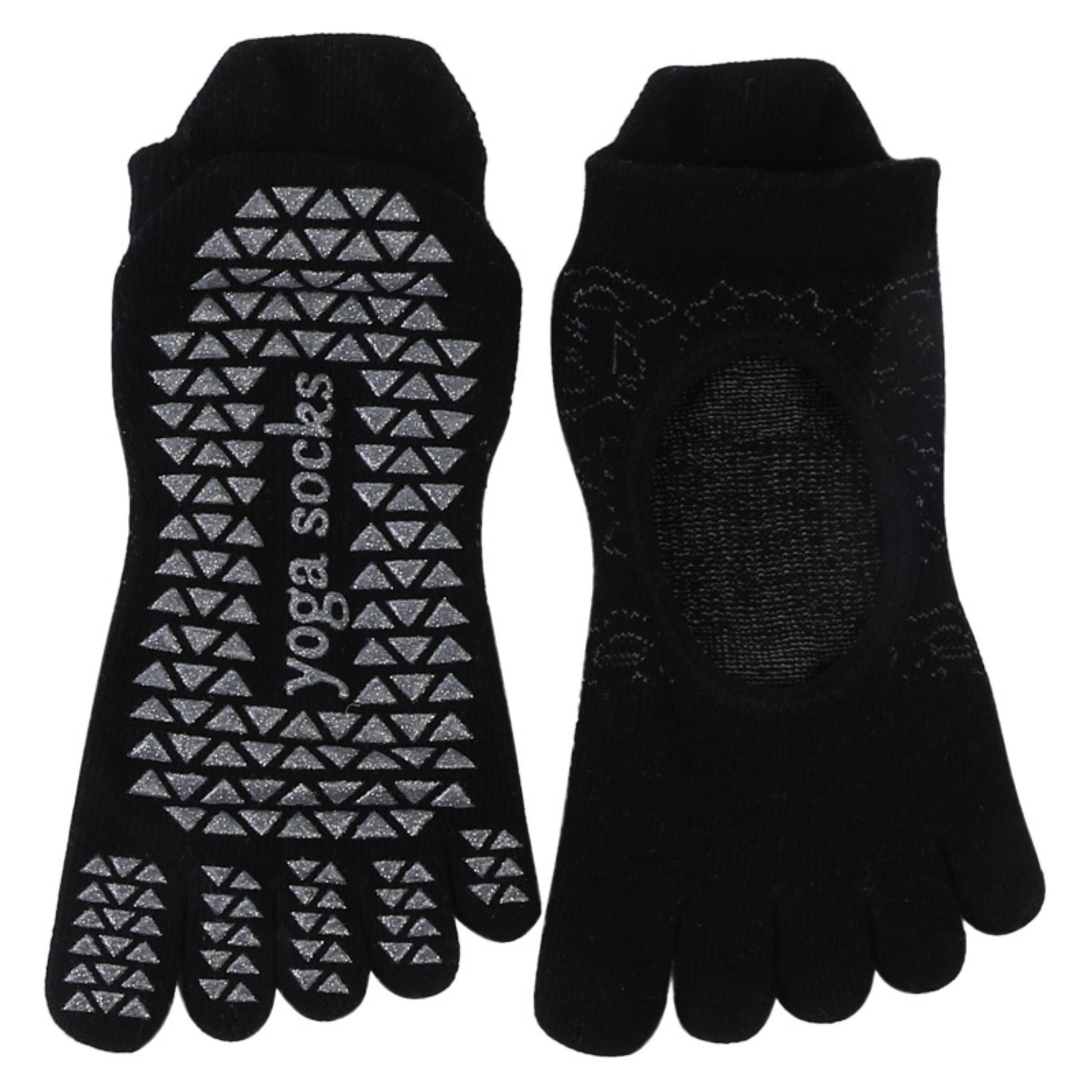 These non-slip five-toe yoga socks are designed to enhance stability and comfort during your workouts. Featuring a breathable open-top design and silicone grip soles, they ensure a secure fit and prevent slipping on studio floors. The individual toe slots promote natural movement, while the soft, durable fabric keeps your feet comfortable. Perfect for yoga, pilates, barre, or dance, these socks combine functionality with style.