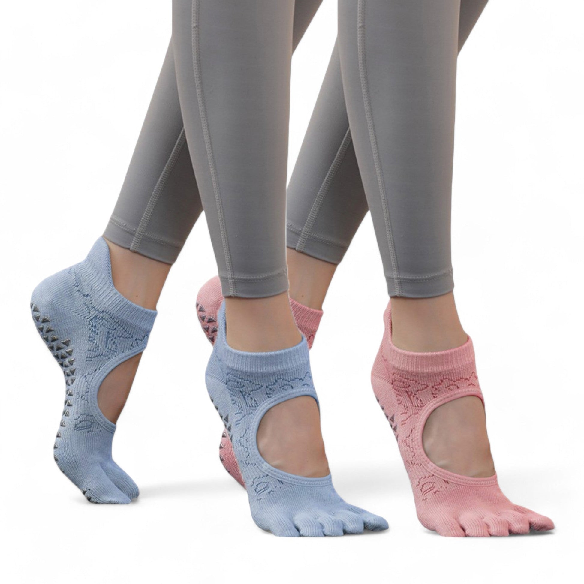 2-Pack Non-Slip Five-Toe Yoga Socks with Open Top Design for Stability and Comfort