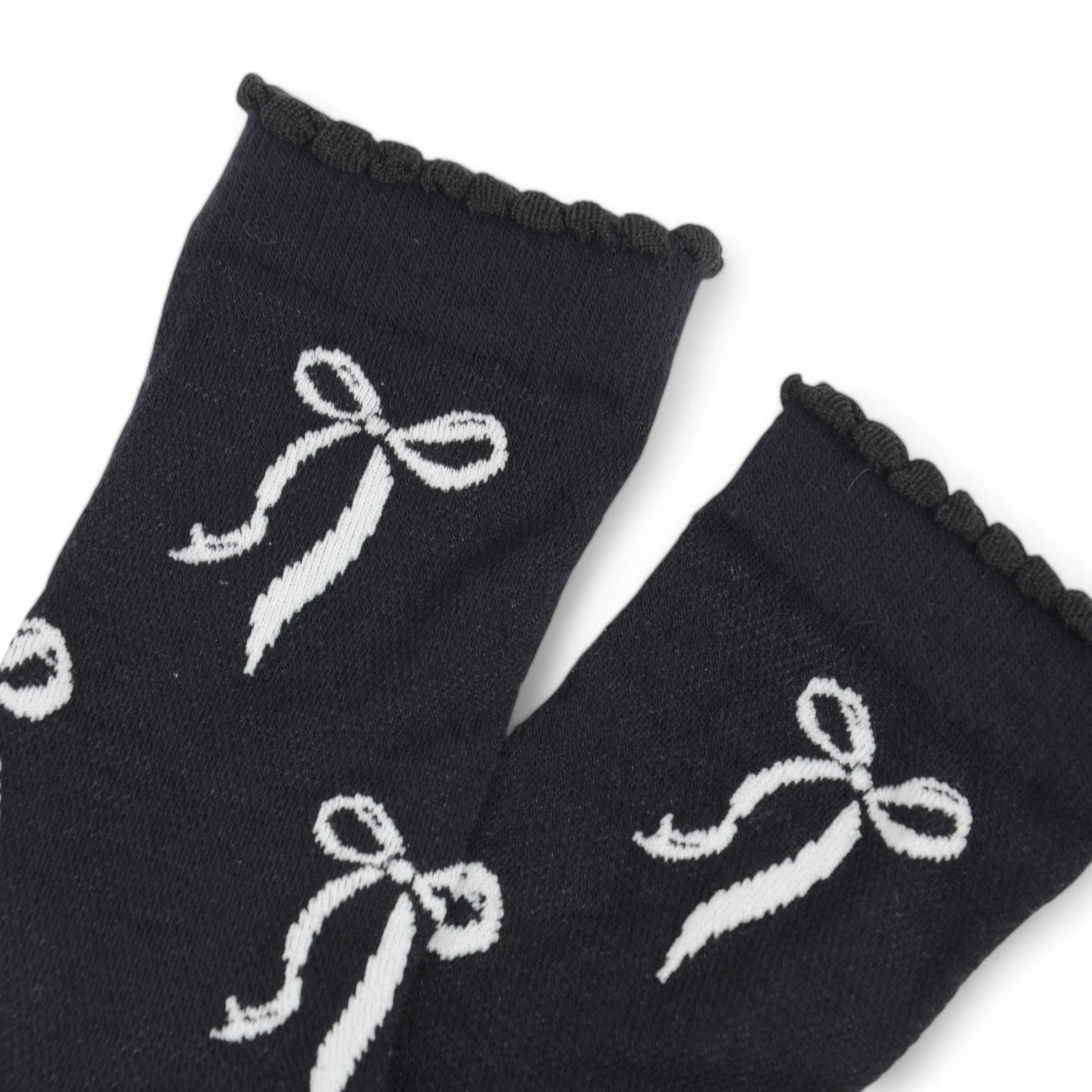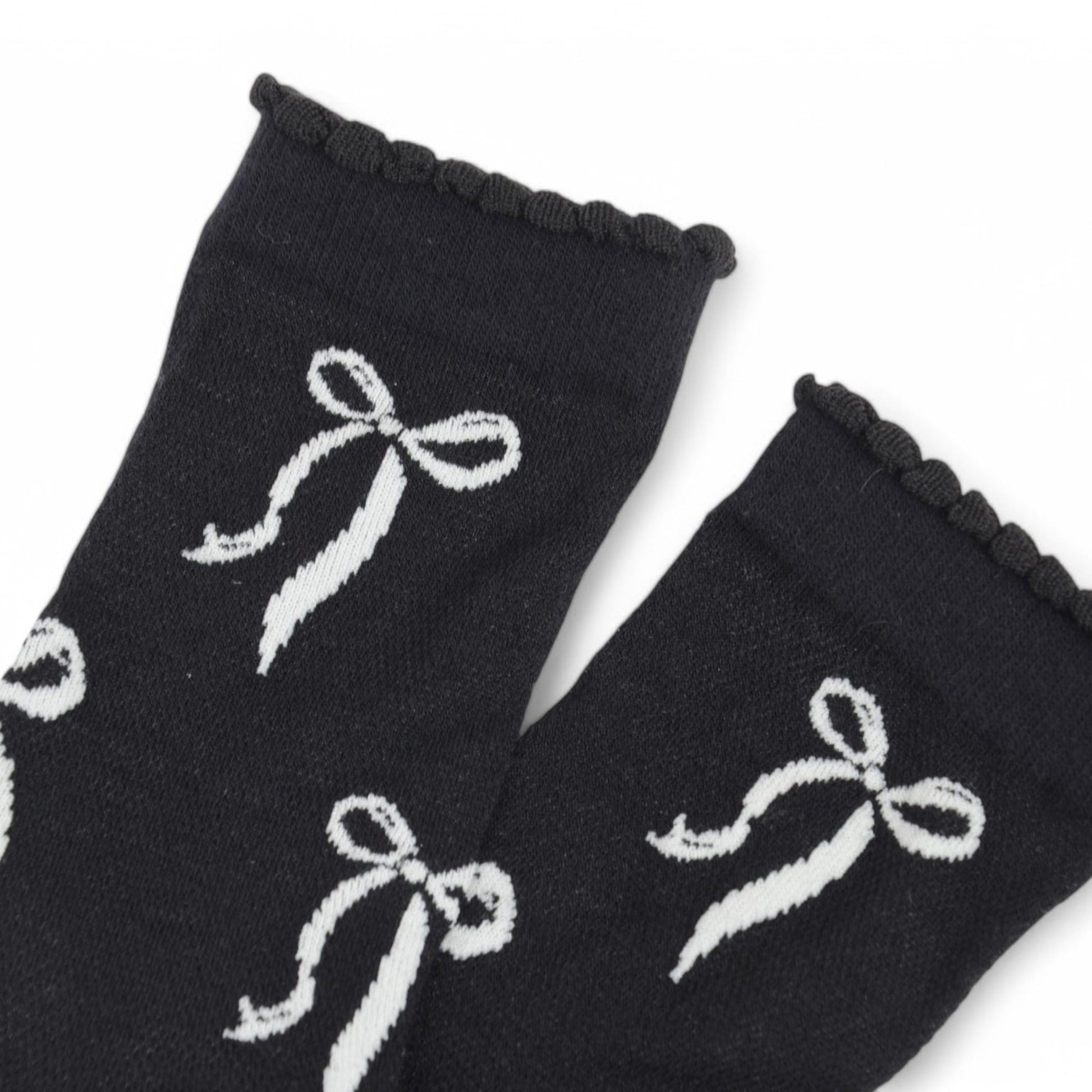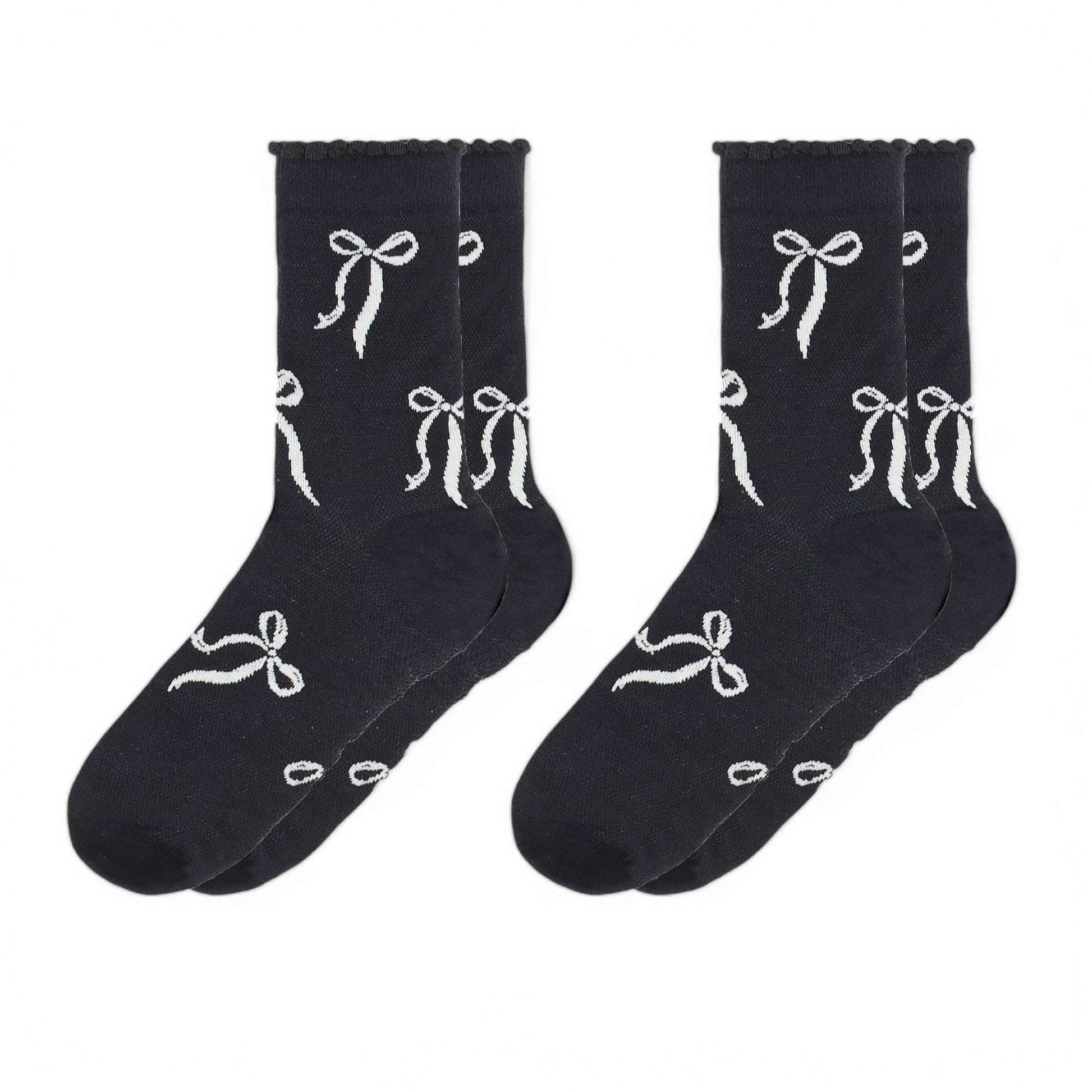 2-Pack Bow Pattern Crew Socks with Scalloped Trim and Contrast Details