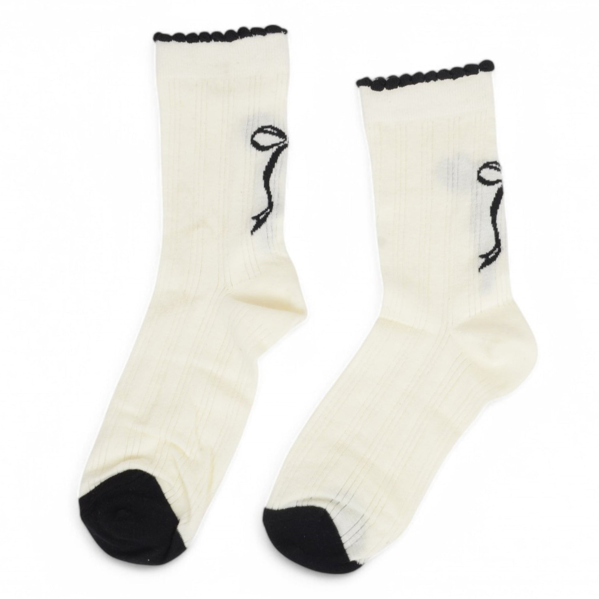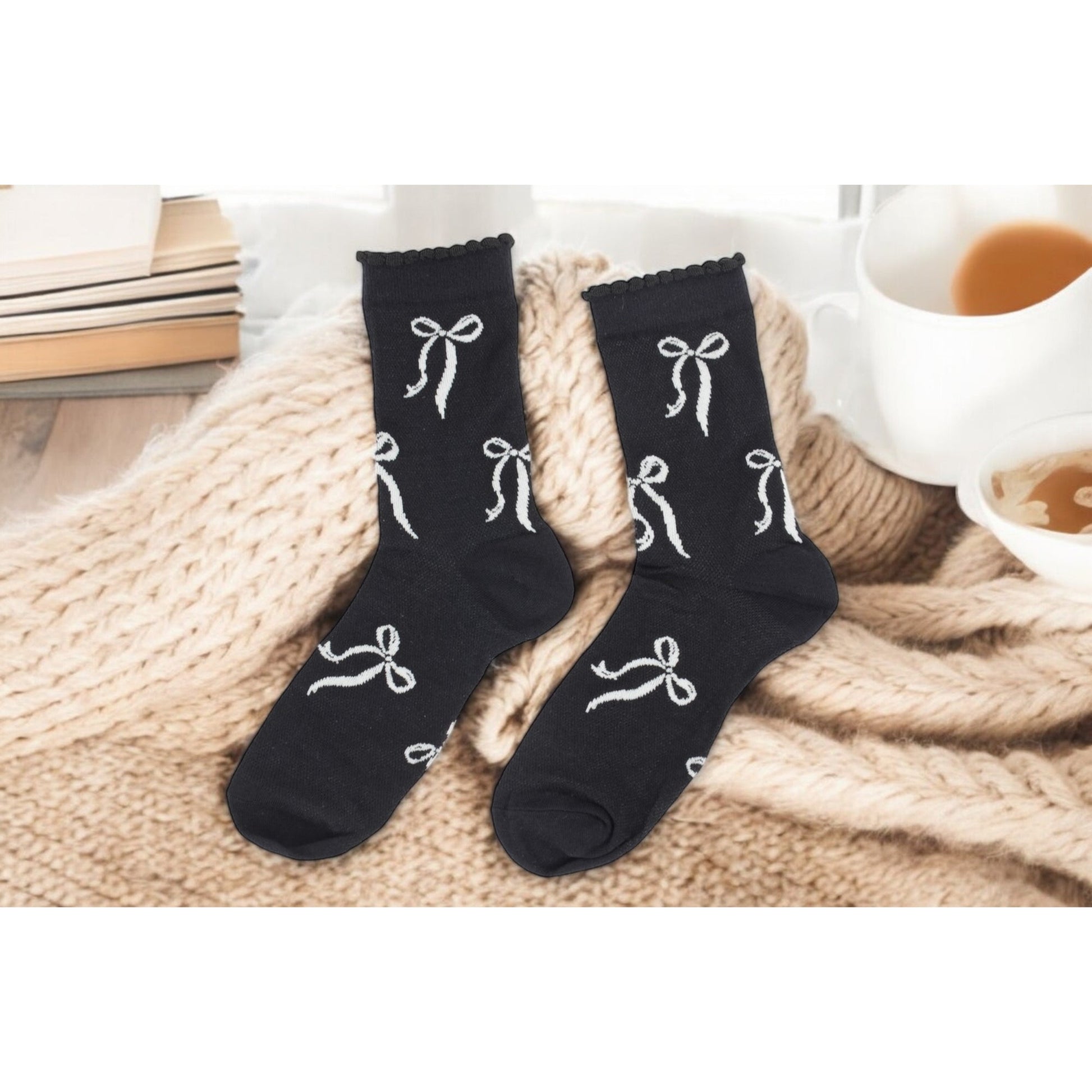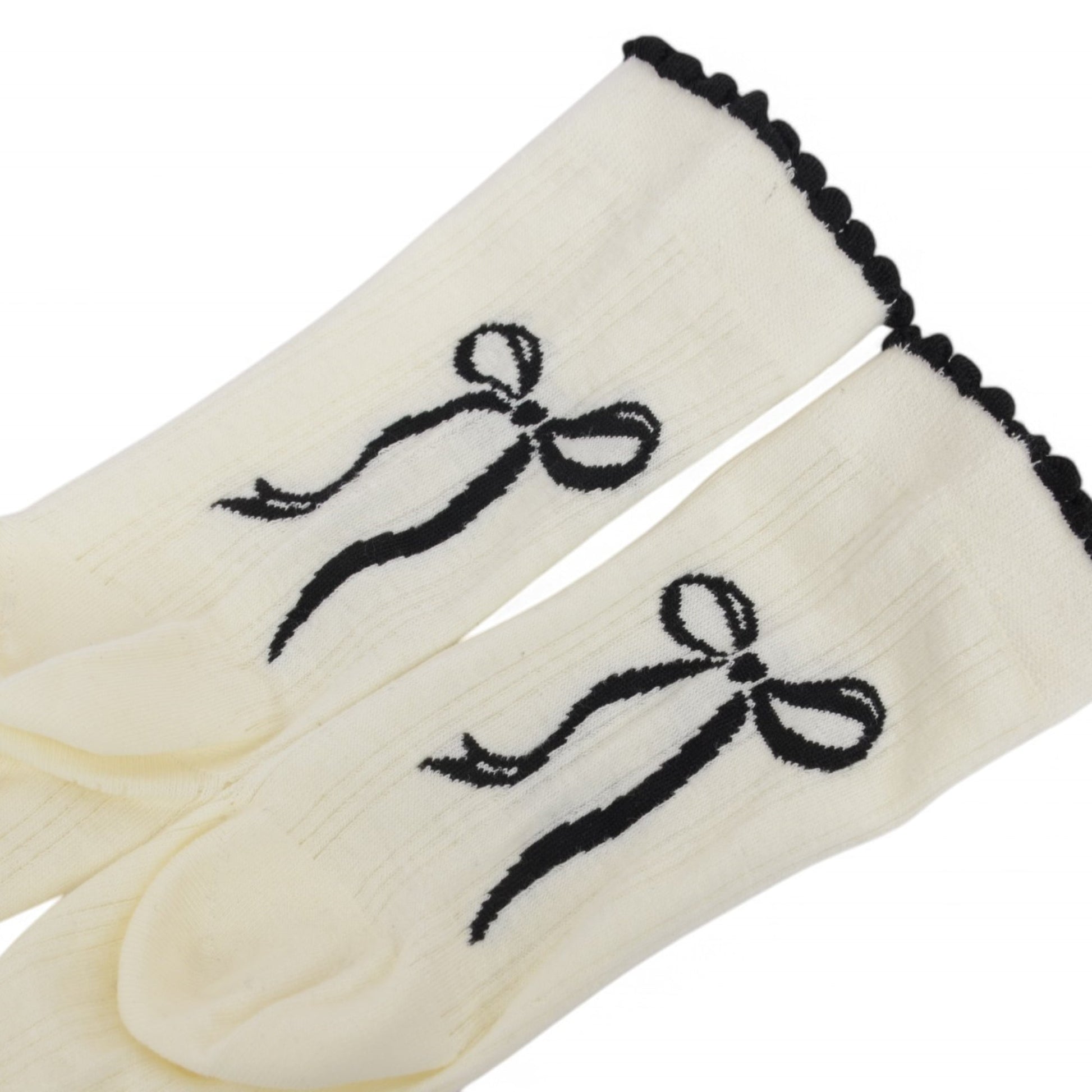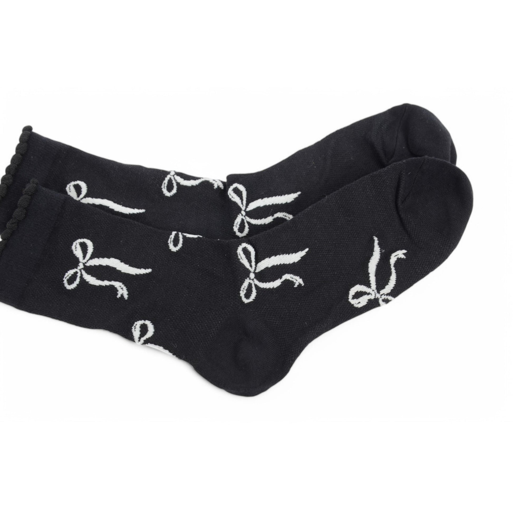 2-Pack Bow Pattern Crew Socks with Scalloped Trim and Contrast Details