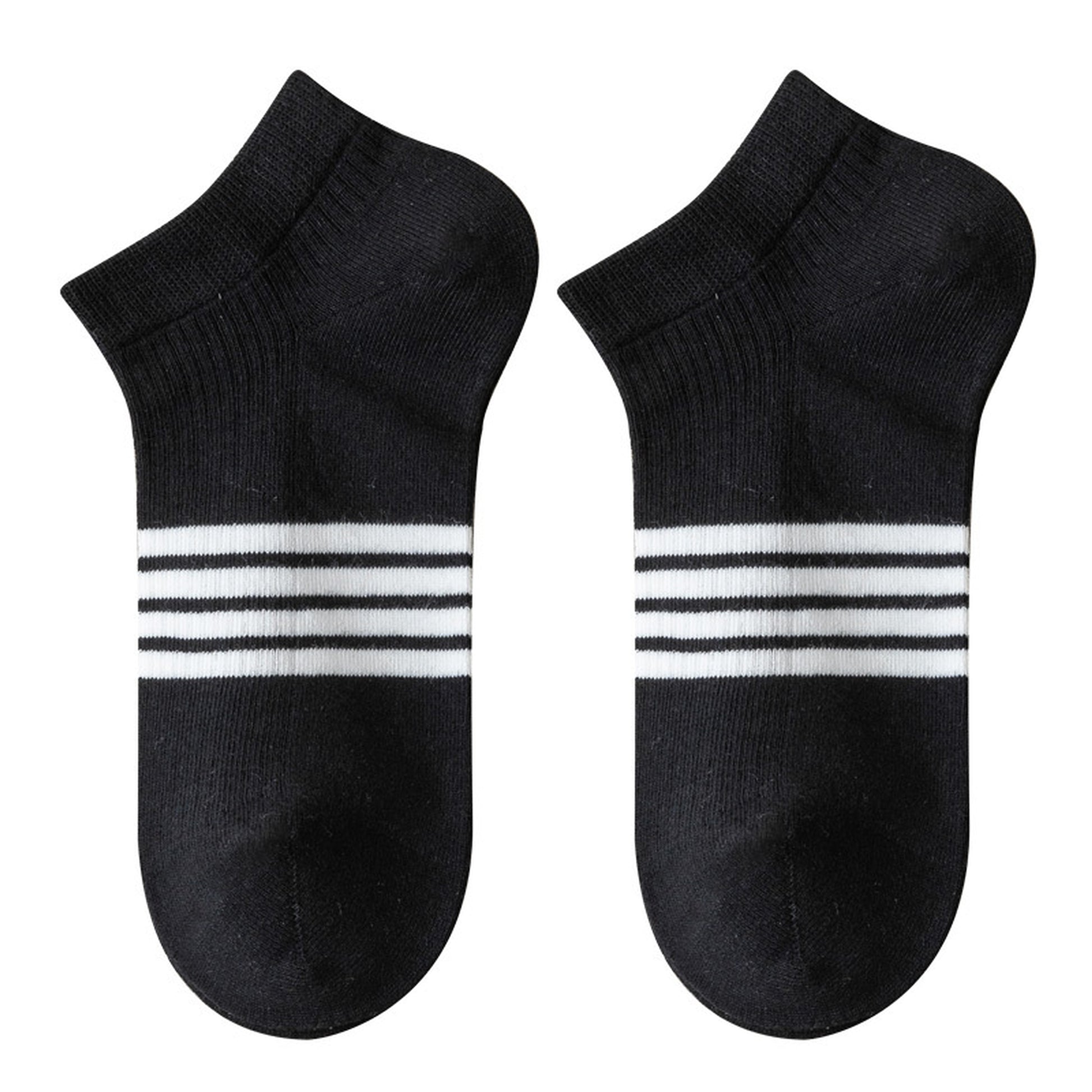 Step up your sock game with these sleek and stylish ankle - length socks. The timeless black base is accented by crisp white stripes, creating a look that's both sporty and fashionable. It's a design that effortlessly complements a wide range of outfits, from athletic gear to everyday casual wear.