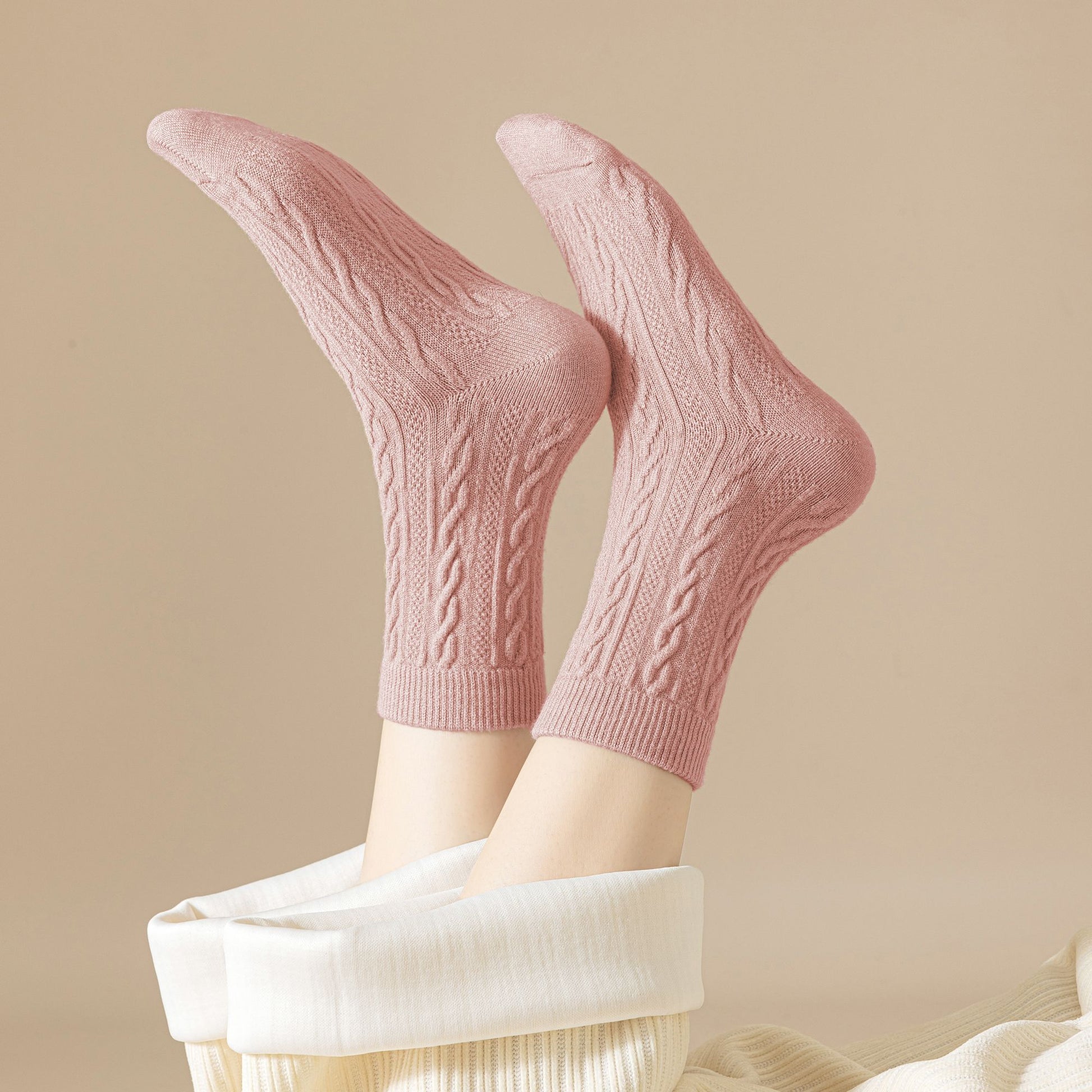 Classic Crew Socks Cable-Knit Cotton for Casual Stability and Comfort 2 Pairs