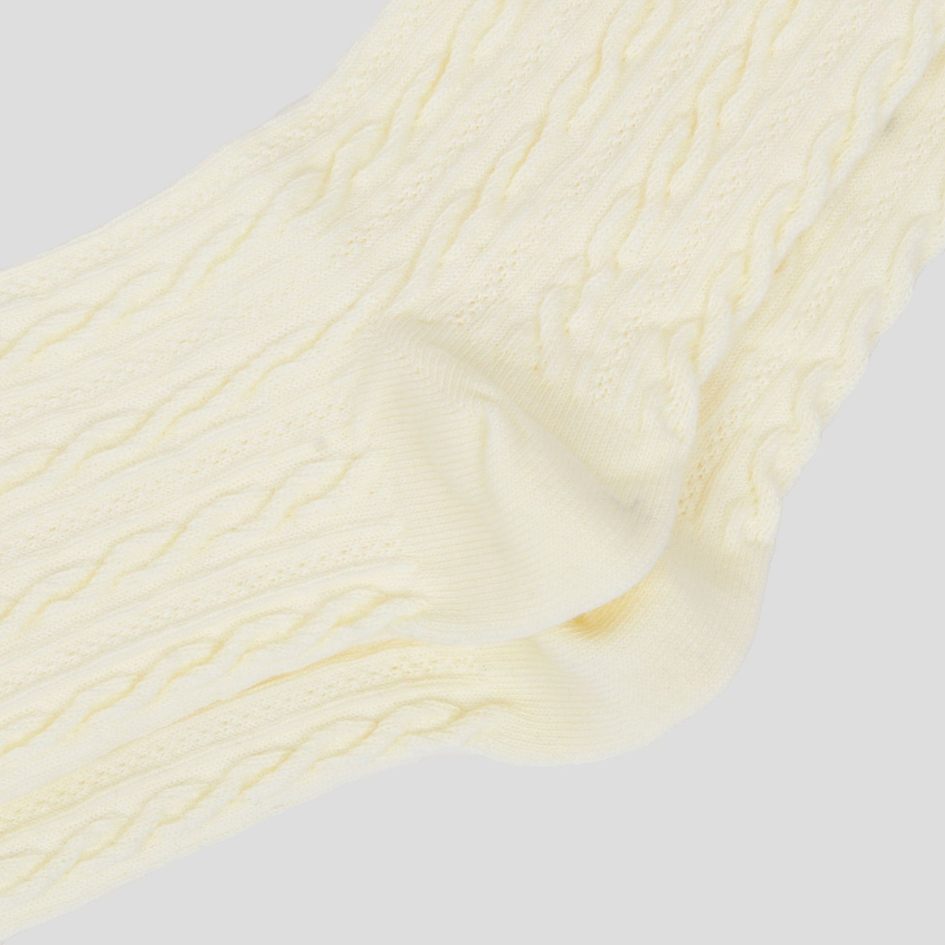 Indulge in comfort and style with our Classic Cream Cable-Knit Women's Crew Socks. These socks showcase a beautiful cable-knit pattern, a timeless design element that exudes elegance and warmth. The soft, colored cotton not only looks great but also feels luxurious against your skin.