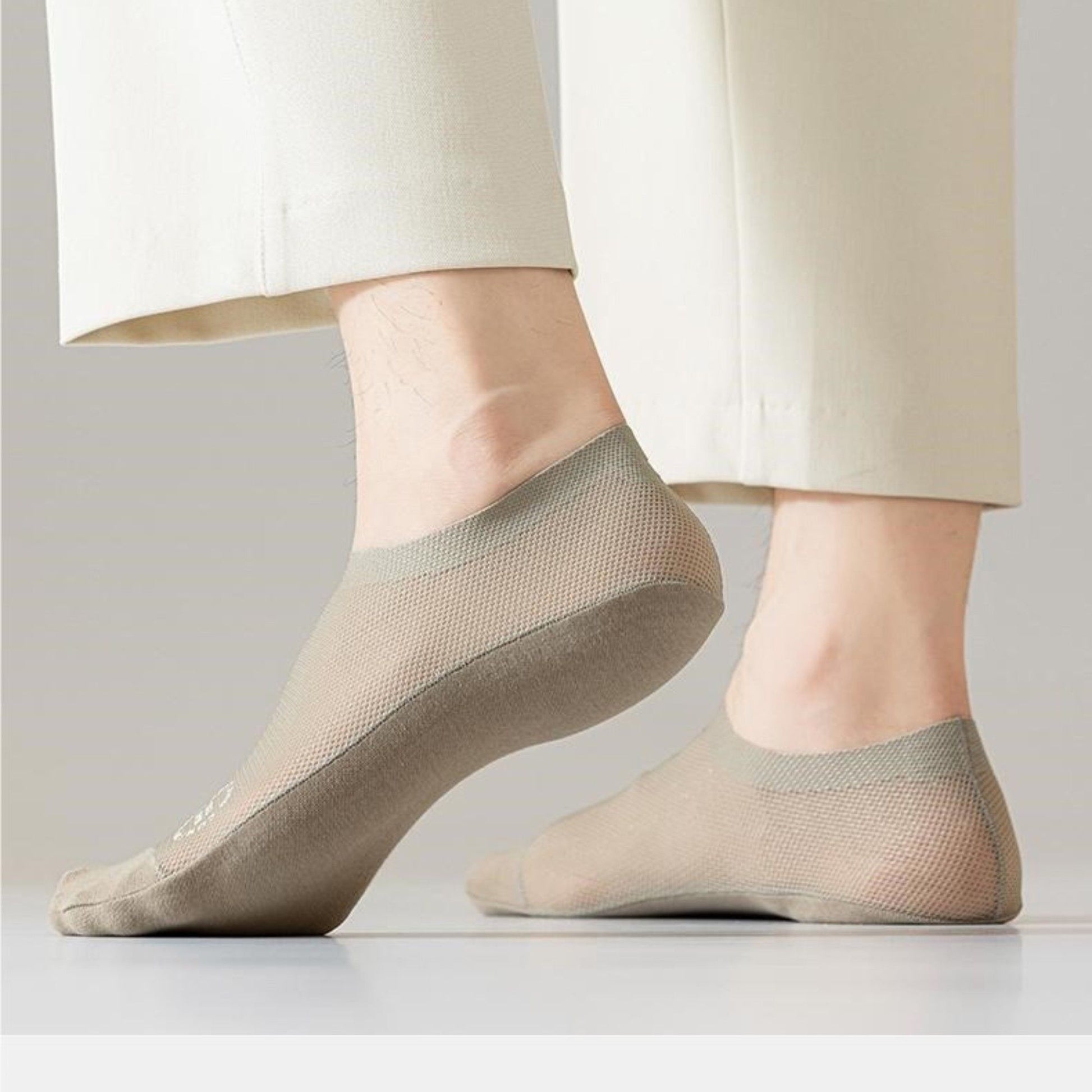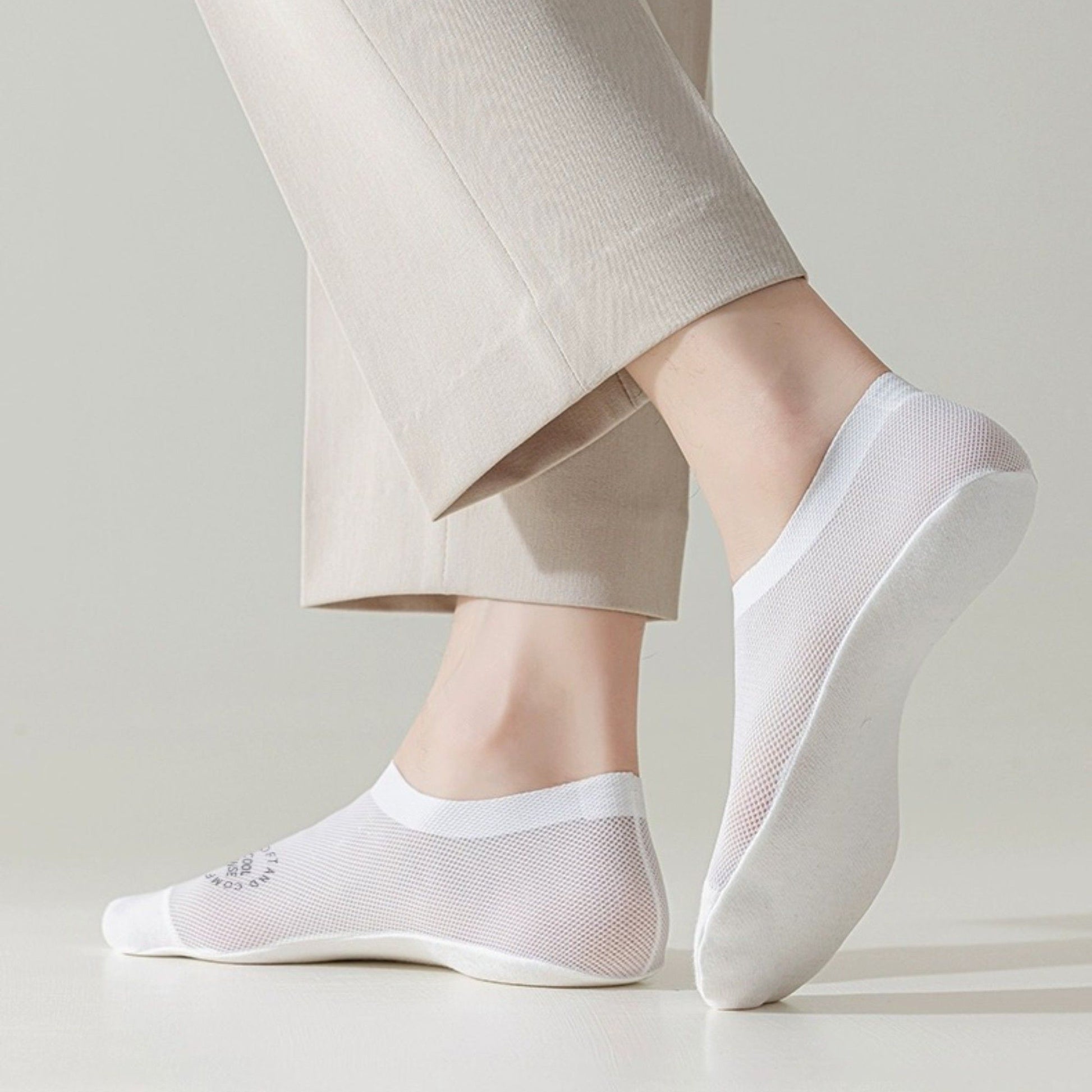 These Men's No-Show Mesh Socks combine breathable comfort with secure wear. Designed with a ventilated mesh fabric and a non-slip silicone grip at the heel, they ensure your socks stay in place all day. The low-cut silhouette remains invisible in most shoes, while the ergonomic fit and soft texture provide long-lasting comfort. Ideal for daily wear, these socks offer functionality and subtle style in one.