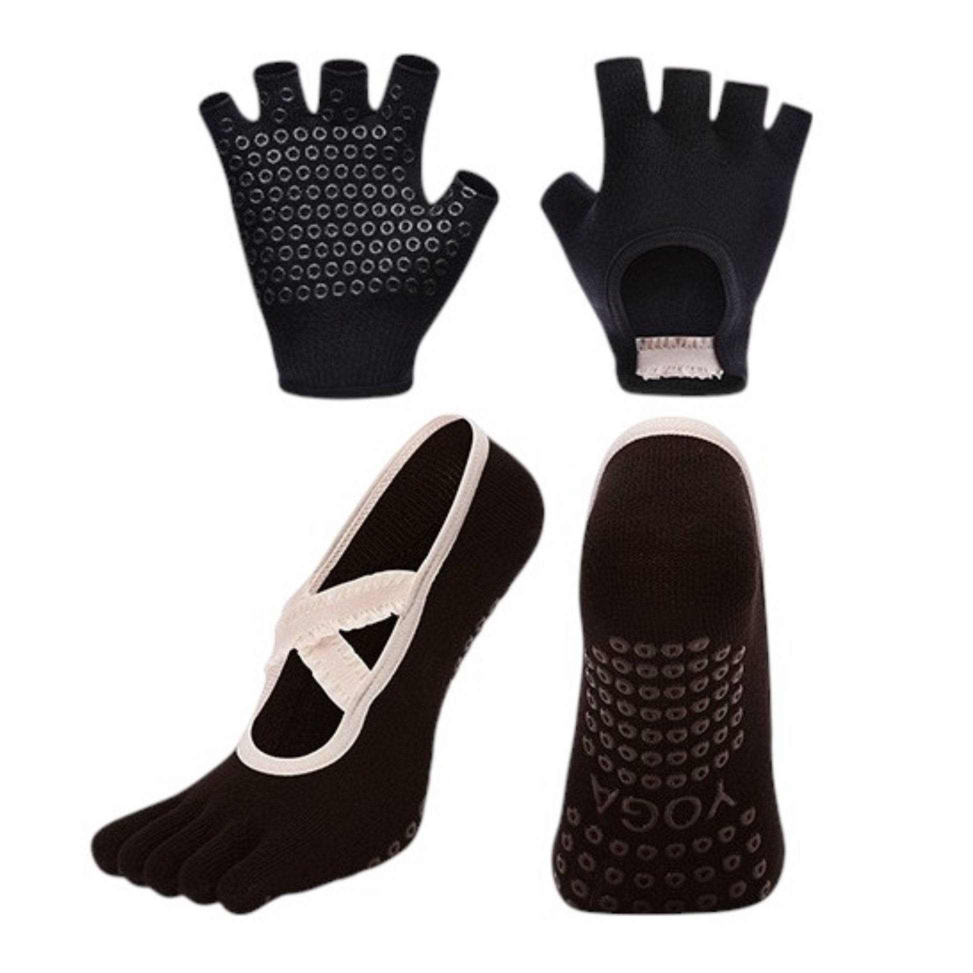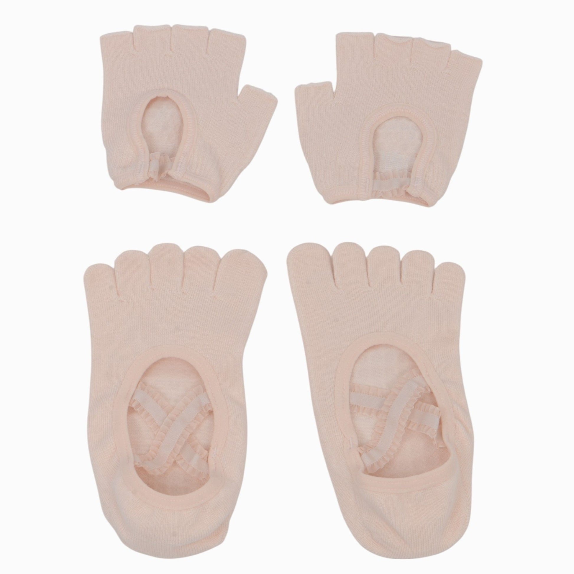 Yoga Socks and Gloves Set with Anti-Slip Grip for Pilates and Barre Workouts