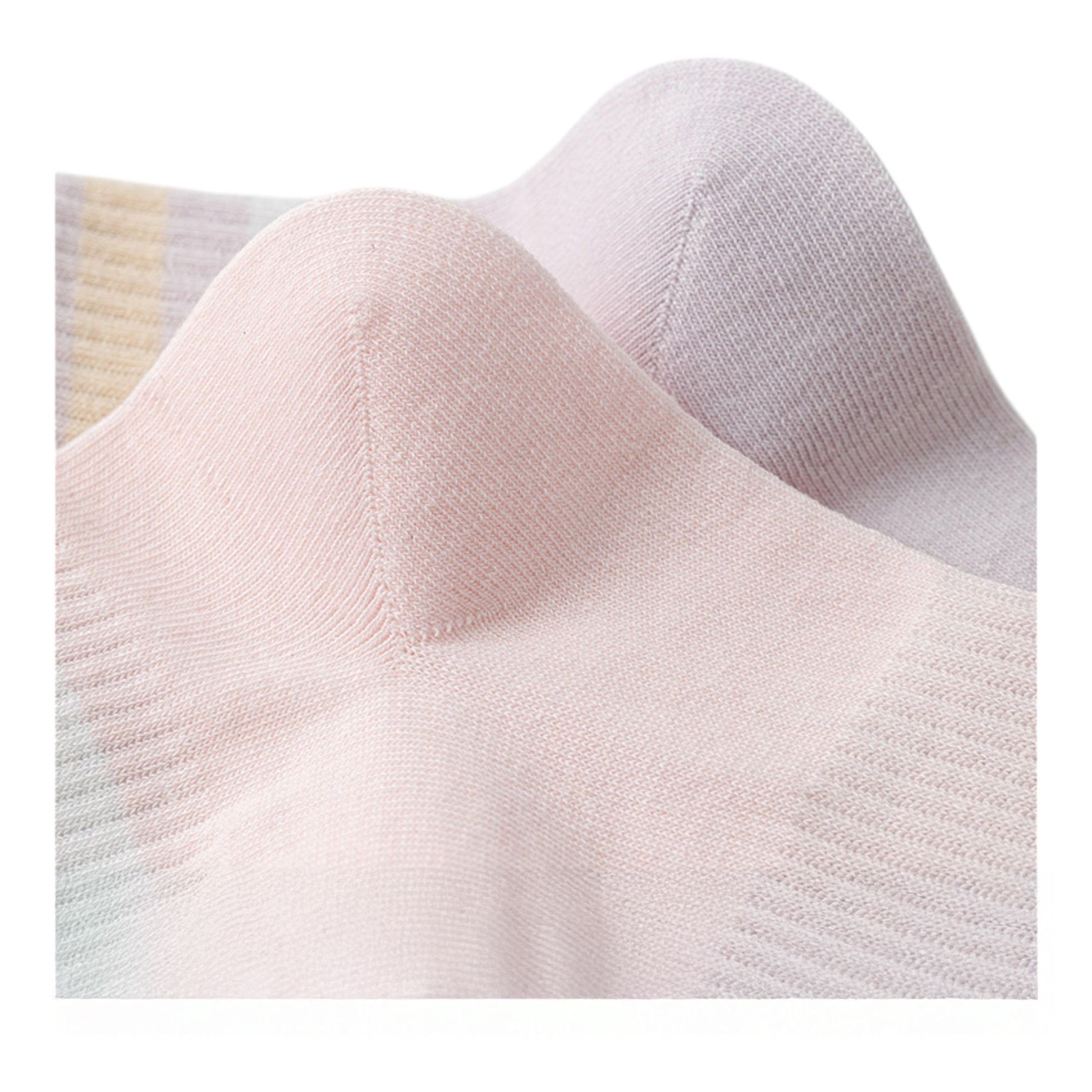 5 Pairs Women Cotton Ankle Socks with Pastel Striped Cuffs Soft Breathable Knit Fabric for Everyday Comfort