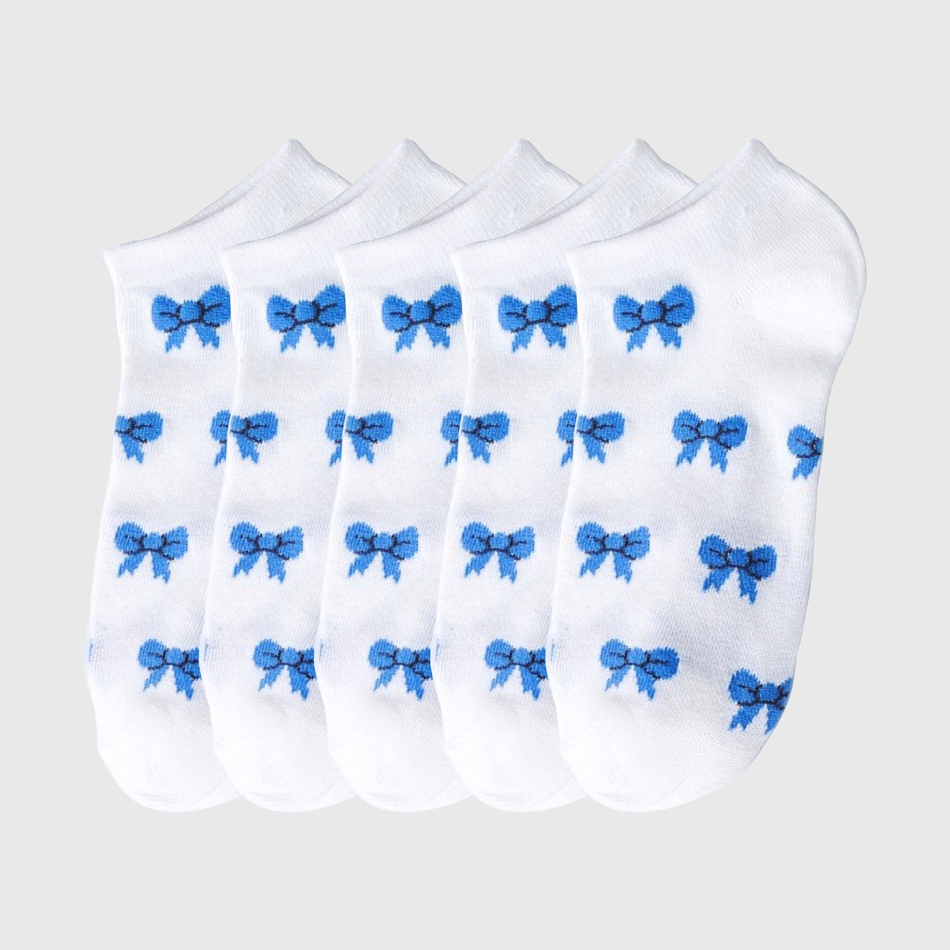 Step into summer with charm using our Women's No - Show Socks with Blue Bow Pattern. This 5 - pack set blends cute style and practicality, featuring delicate blue bows that add a playful, feminine vibe to your footwear. Designed to stay hidden inside sneakers, flats, or loafers, they eliminate visible sock lines for a sleek, minimalist look.