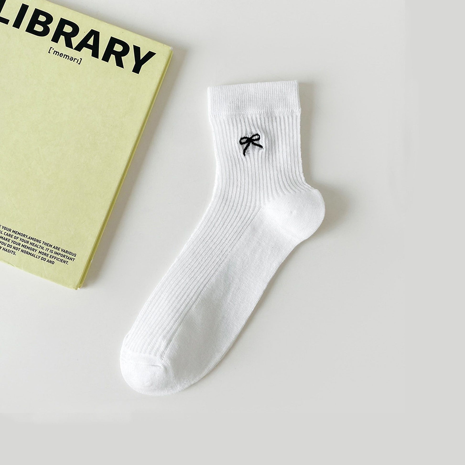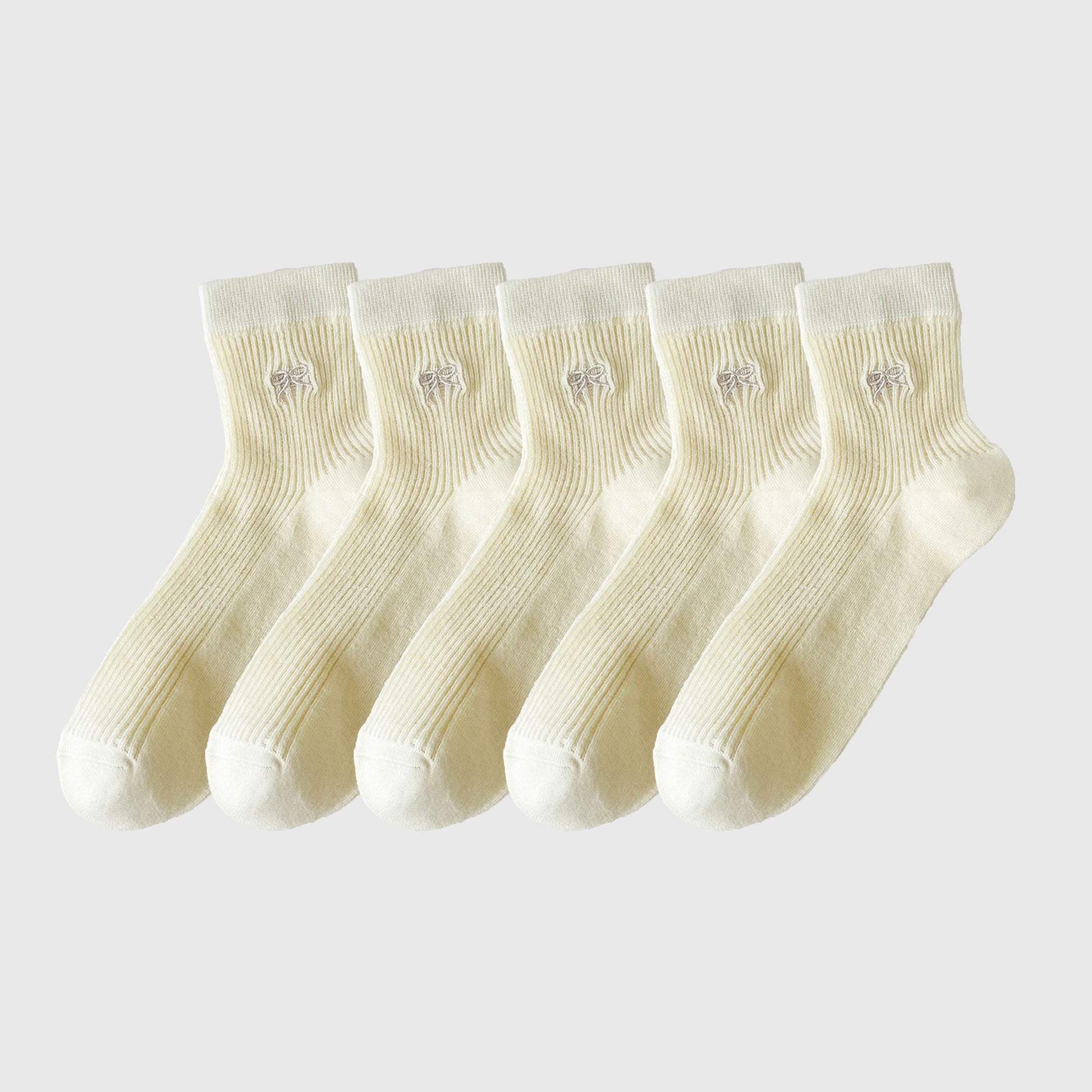 Ribbed Ankle Socks with Bow Embroidery 5Pk