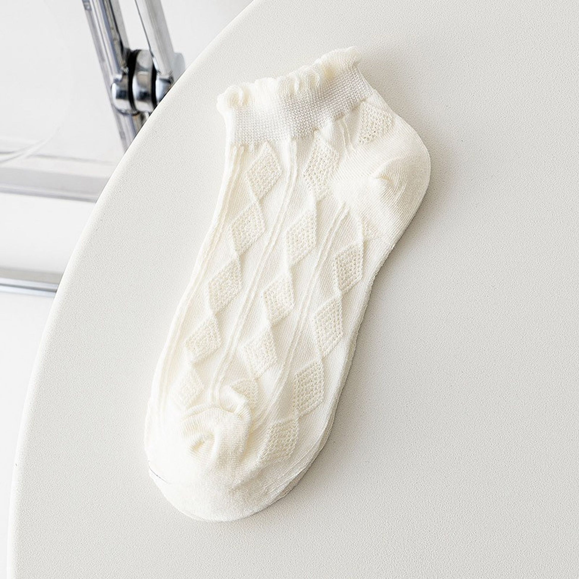 Step into summer with charm using our Women's Summer Floral Embroidered Ruffle Ankle Socks. This 5 - pack set blends cute details and breathability, featuring delicate pink floral embroidery and ruffle cuffs that add a playful, feminine vibe to your daily looks. Crafted from lightweight, airy mesh fabric, these socks keep feet cool, dry, and comfortable¡ªwhether you¡¯re strolling the beach, running errands, or lounging at home.