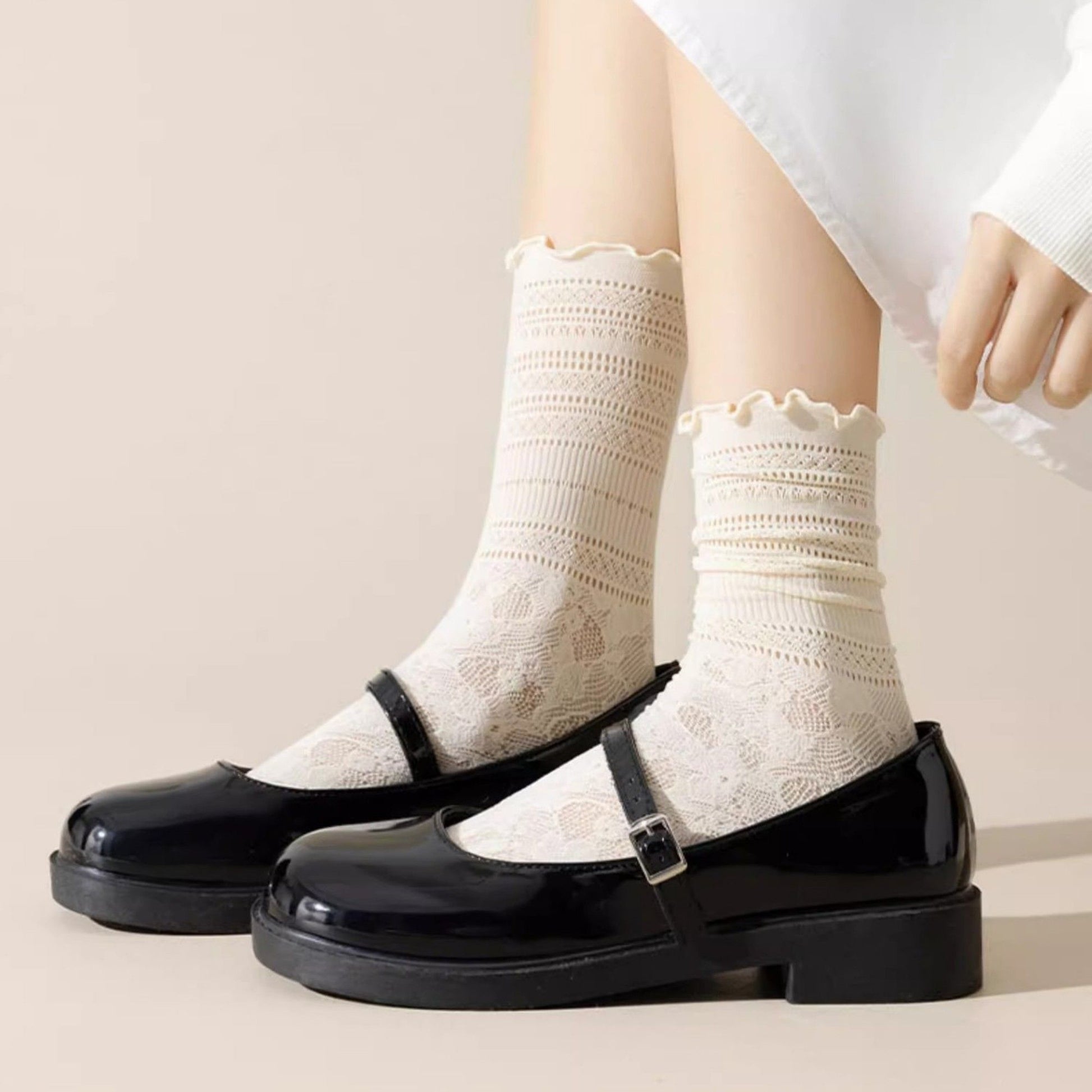 Lace Liner Socks with Elastic Cuff and Floral Mesh Detail Soft Stretch 2-Pack