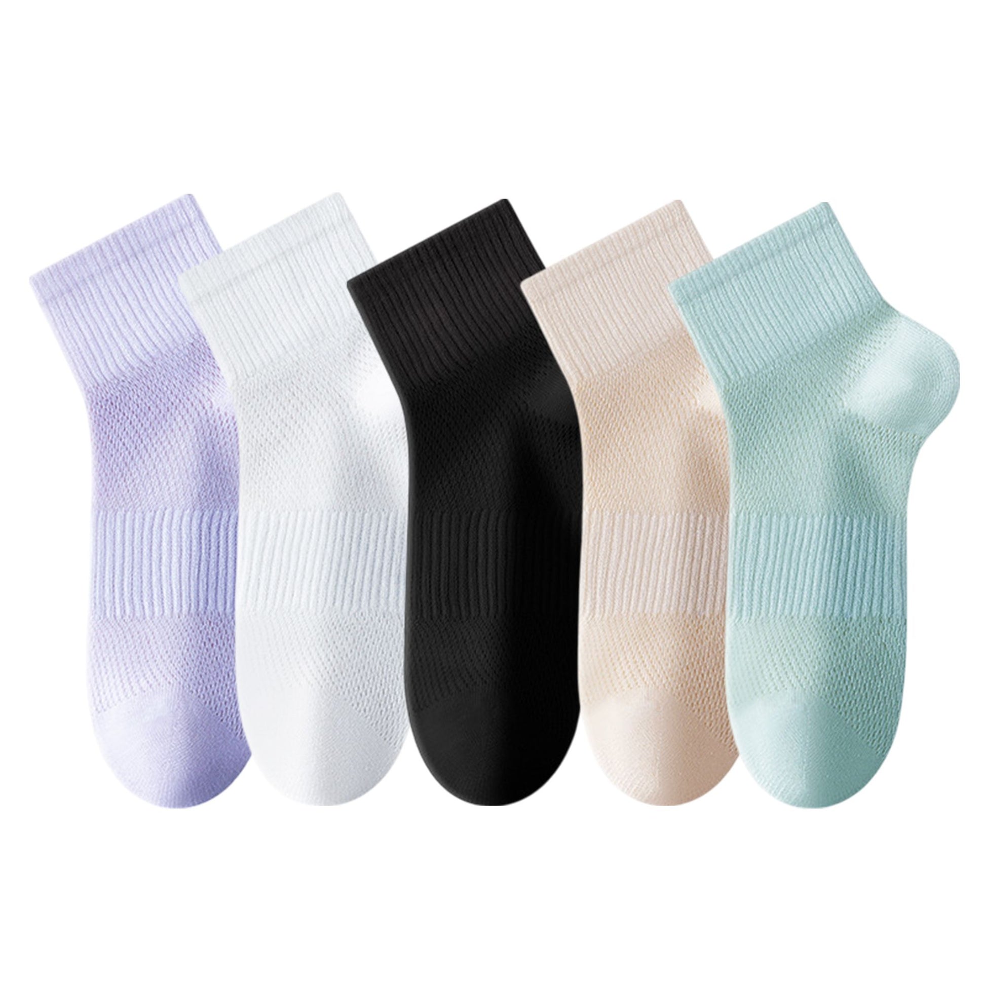 Womens Lightweight Breathable Ankle Socks 5-Pack Cushioned Sole Mesh Texture Soft Stretch Comfort Fit