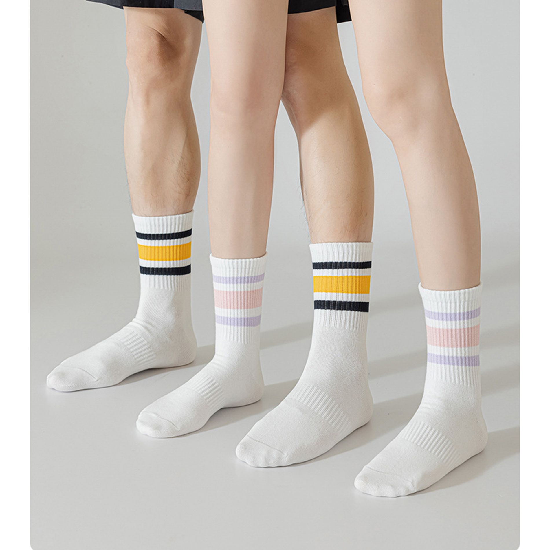 Crew Socks 4-Pack White Base Colorful Ribbed Cuff Striped Design Stretch Comfort Breathable Fit