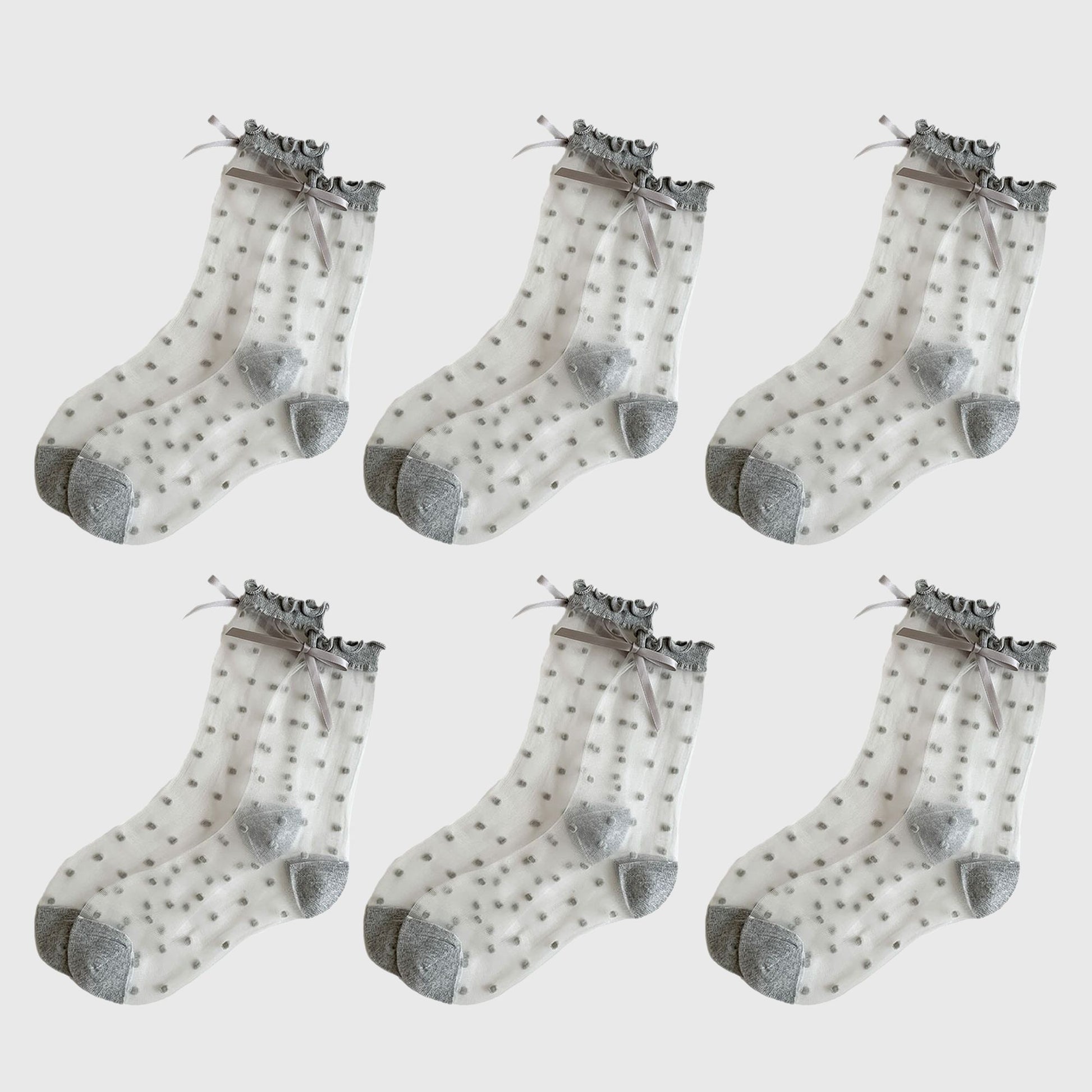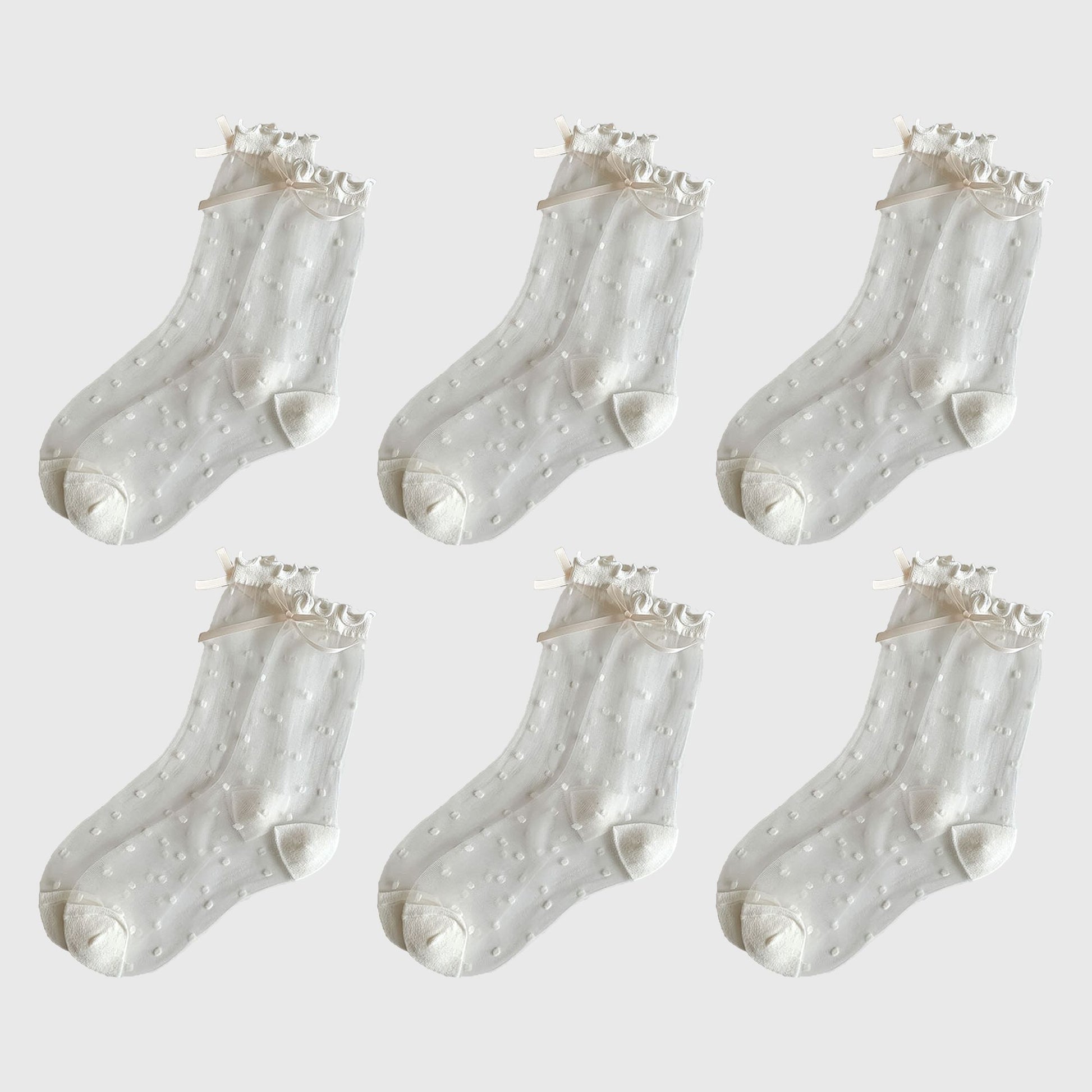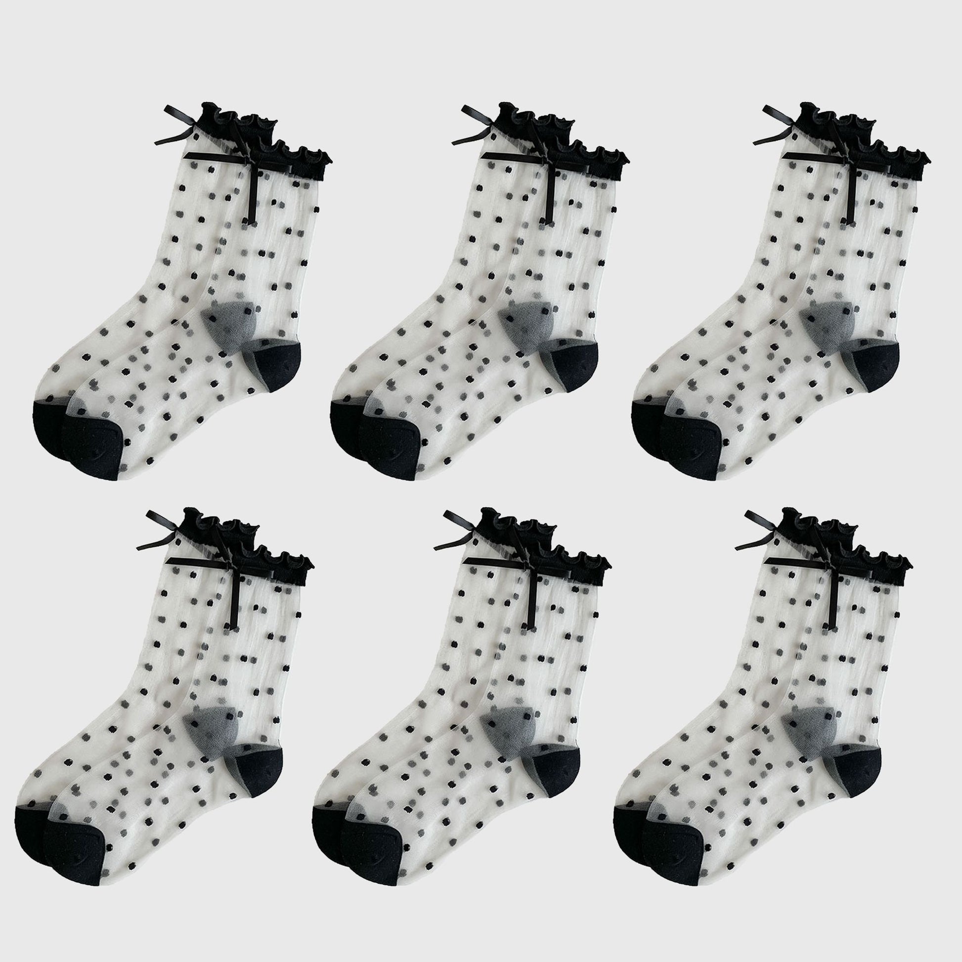 Sheer Polka Dot Ankle Socks with Bow Detail 6pk
