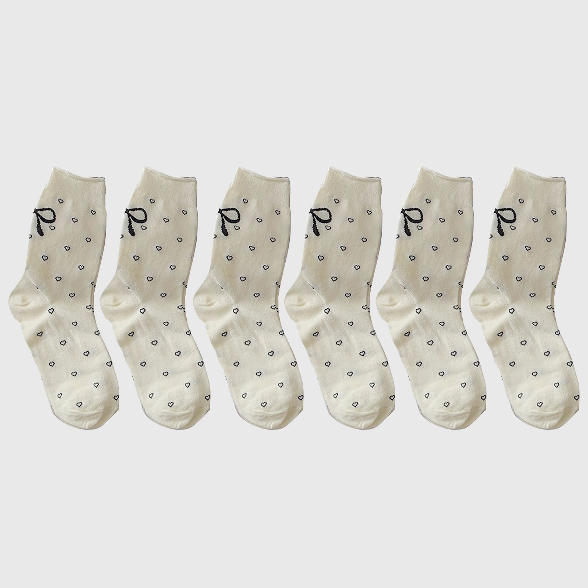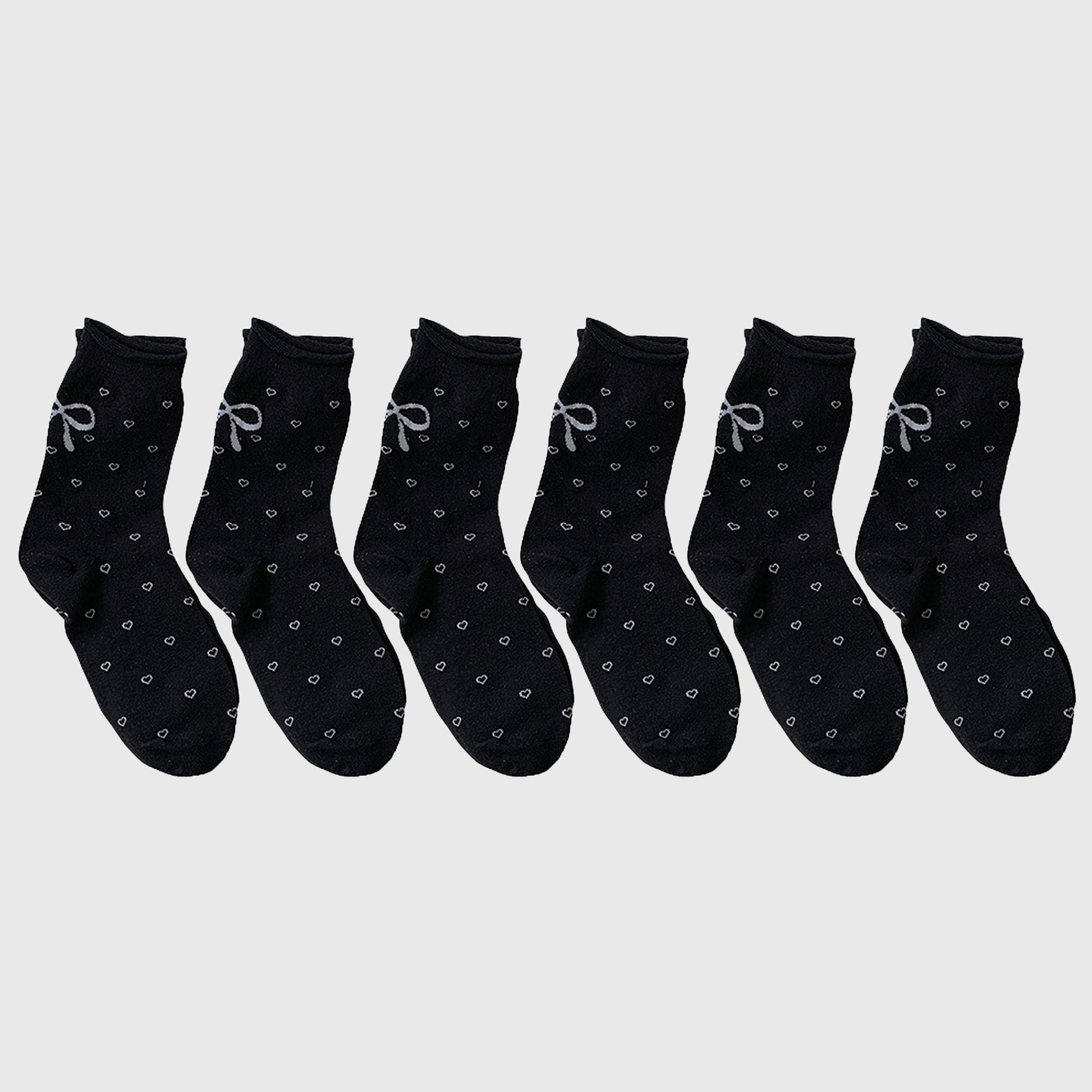 Cotton Bow - Heart Pattern Ankle Socks 6pk