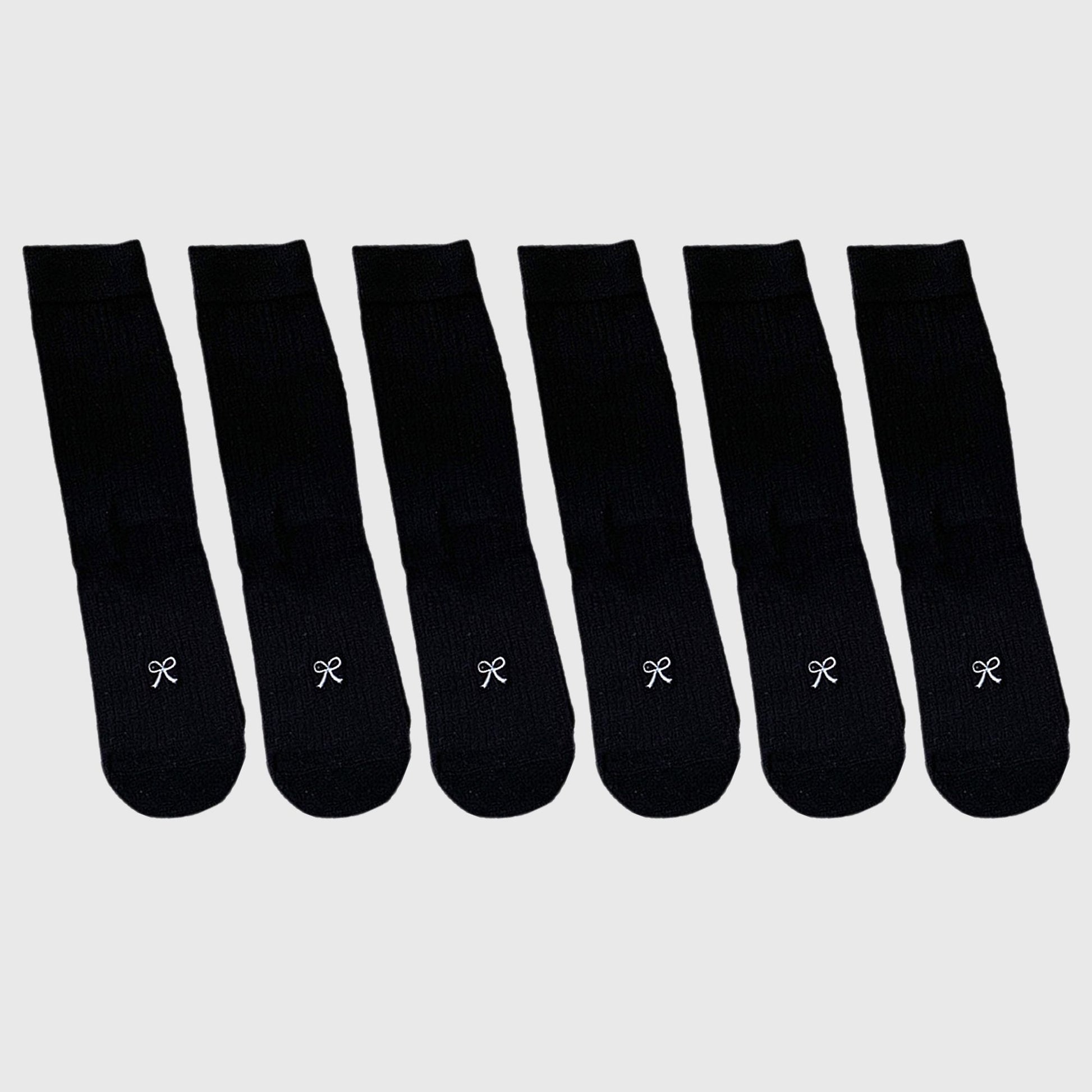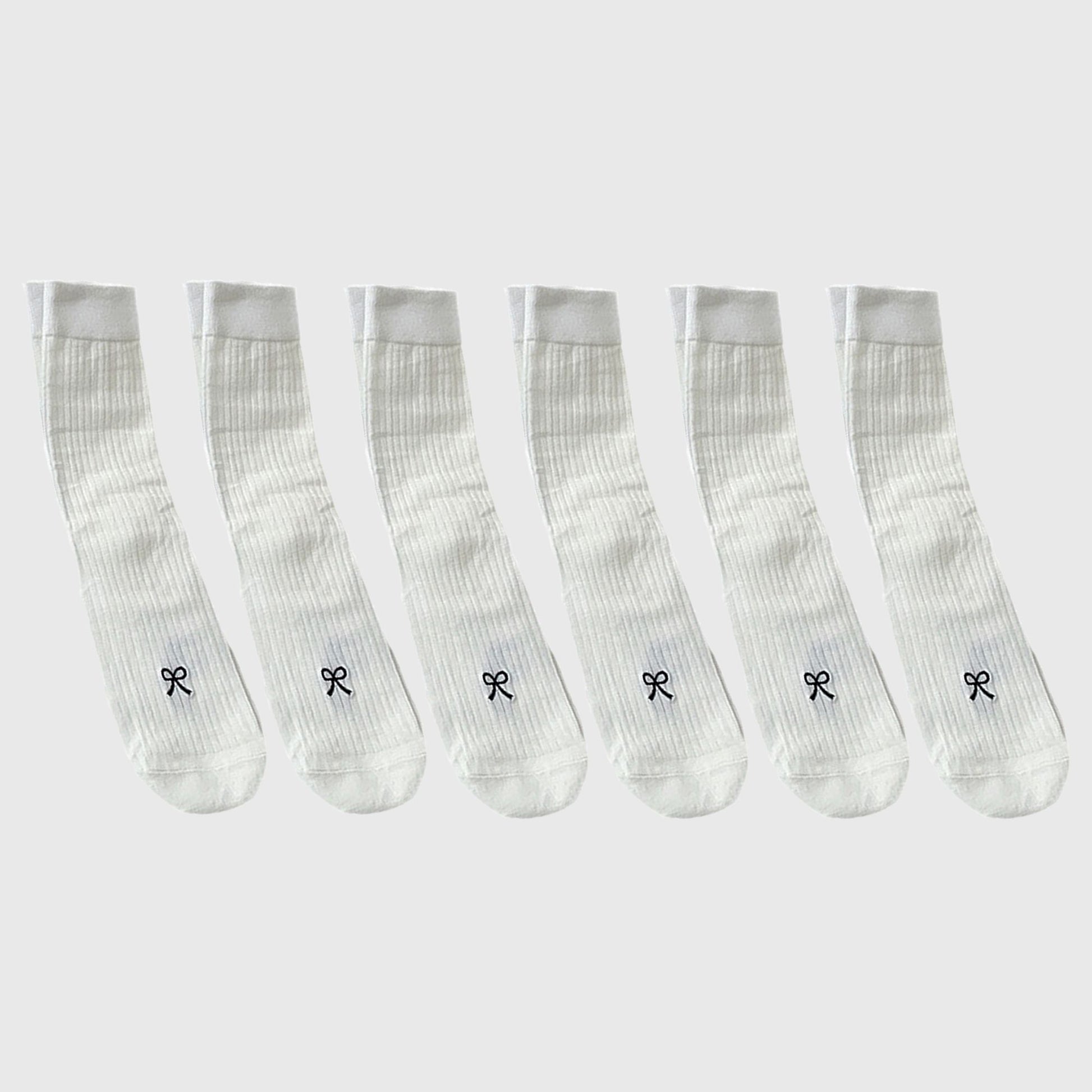 Ribbed Ankle Socks with Bow Embroidery 6Pk