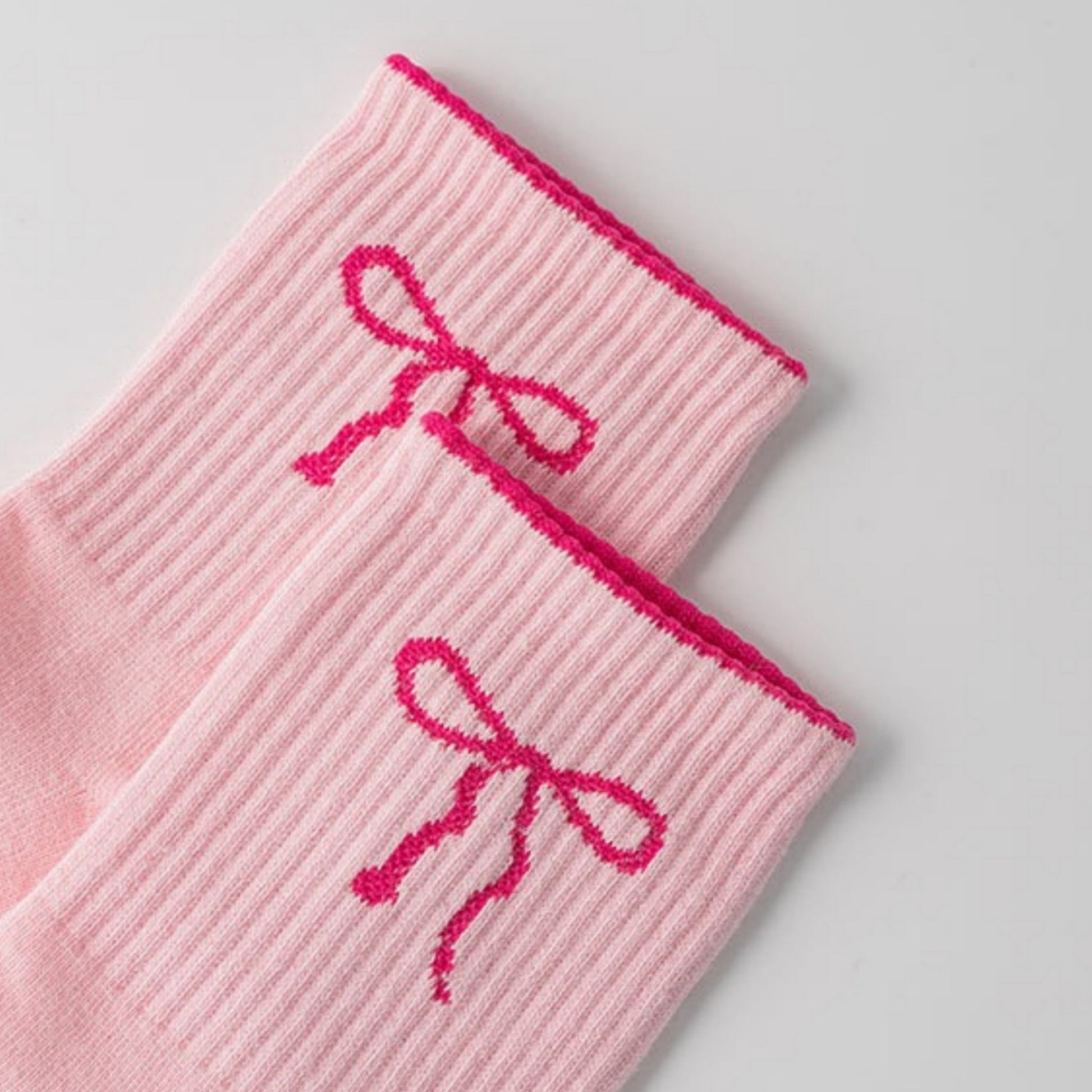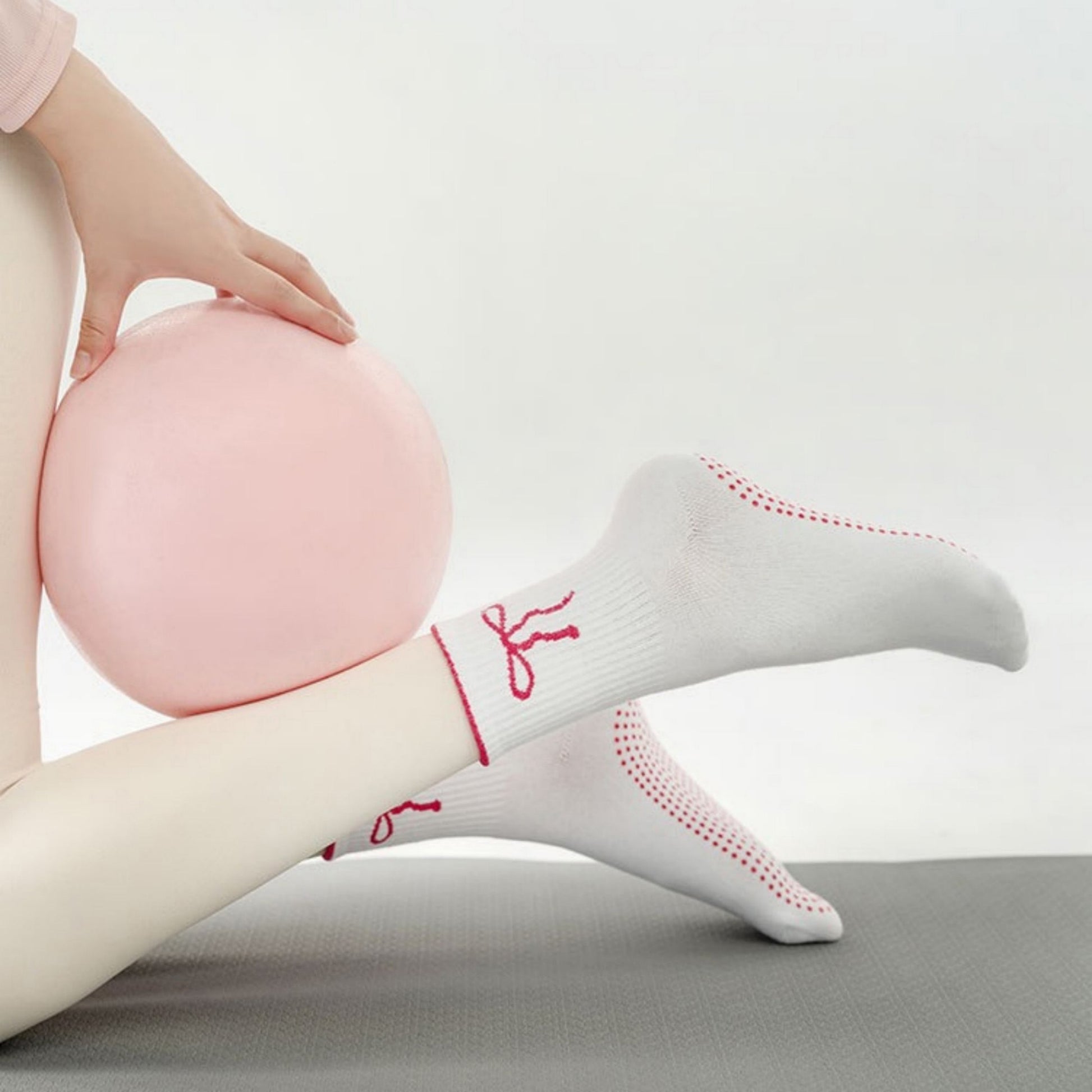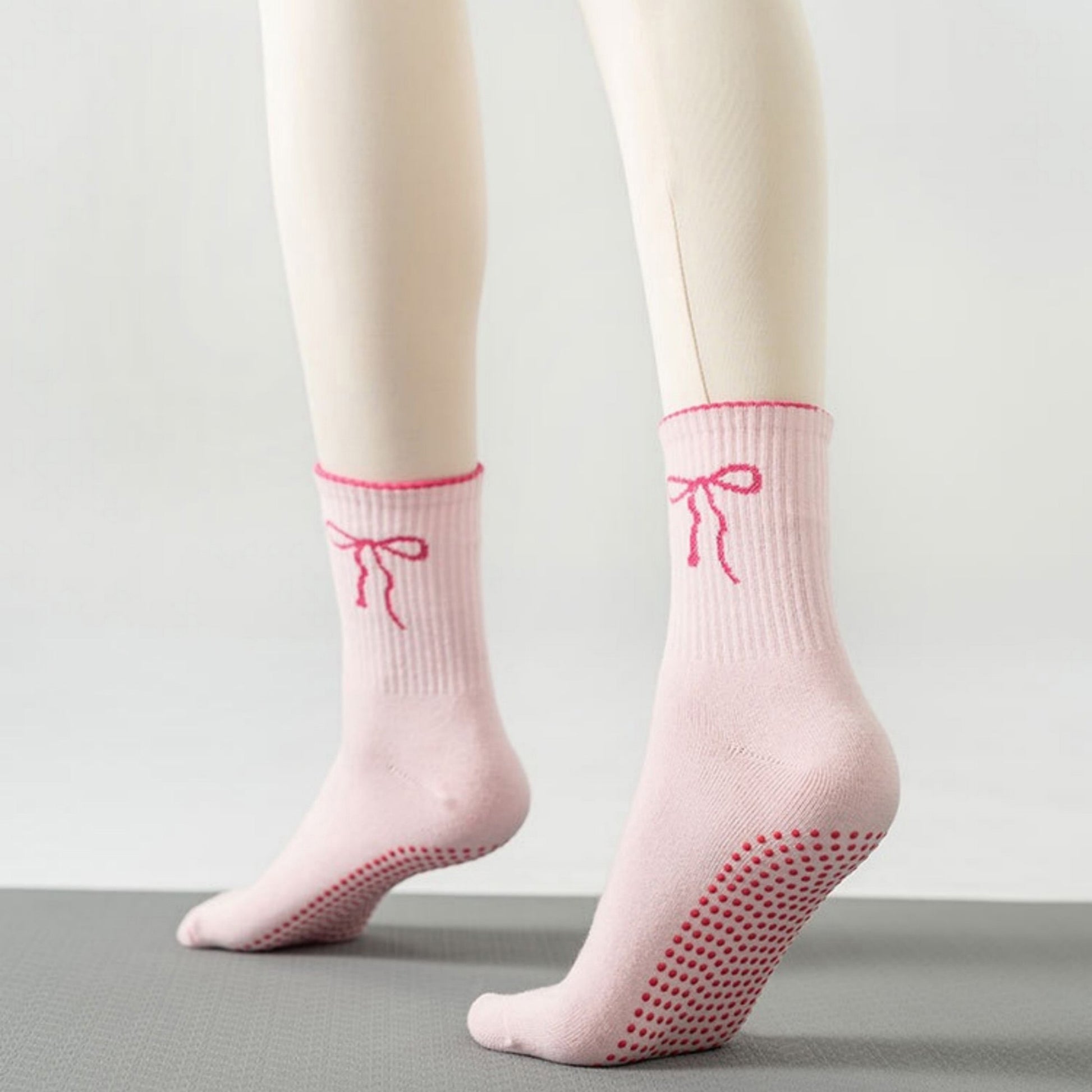 2-Pack Non-Slip Grip Socks with Bow Embroidery and Anti-Skid Dot Soles