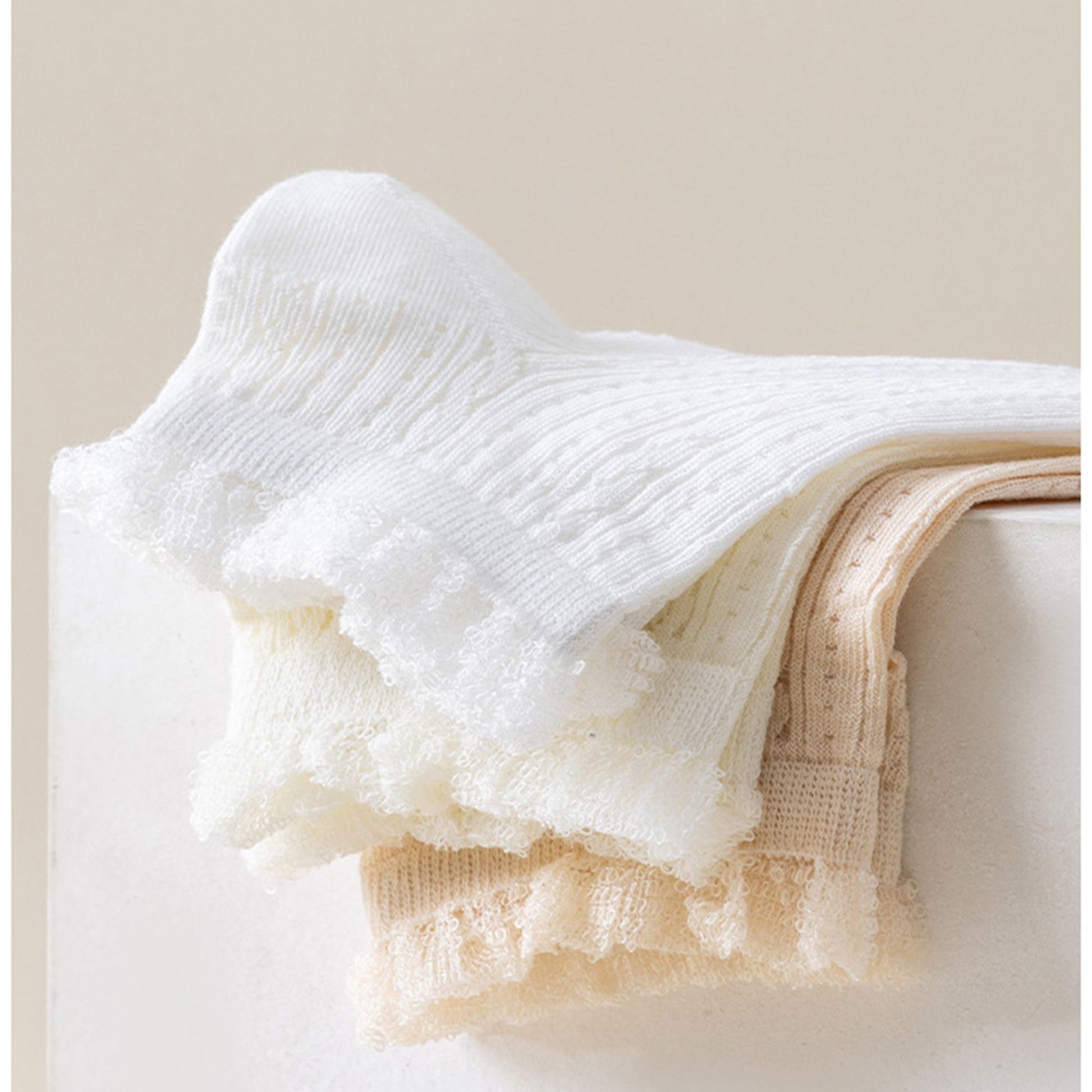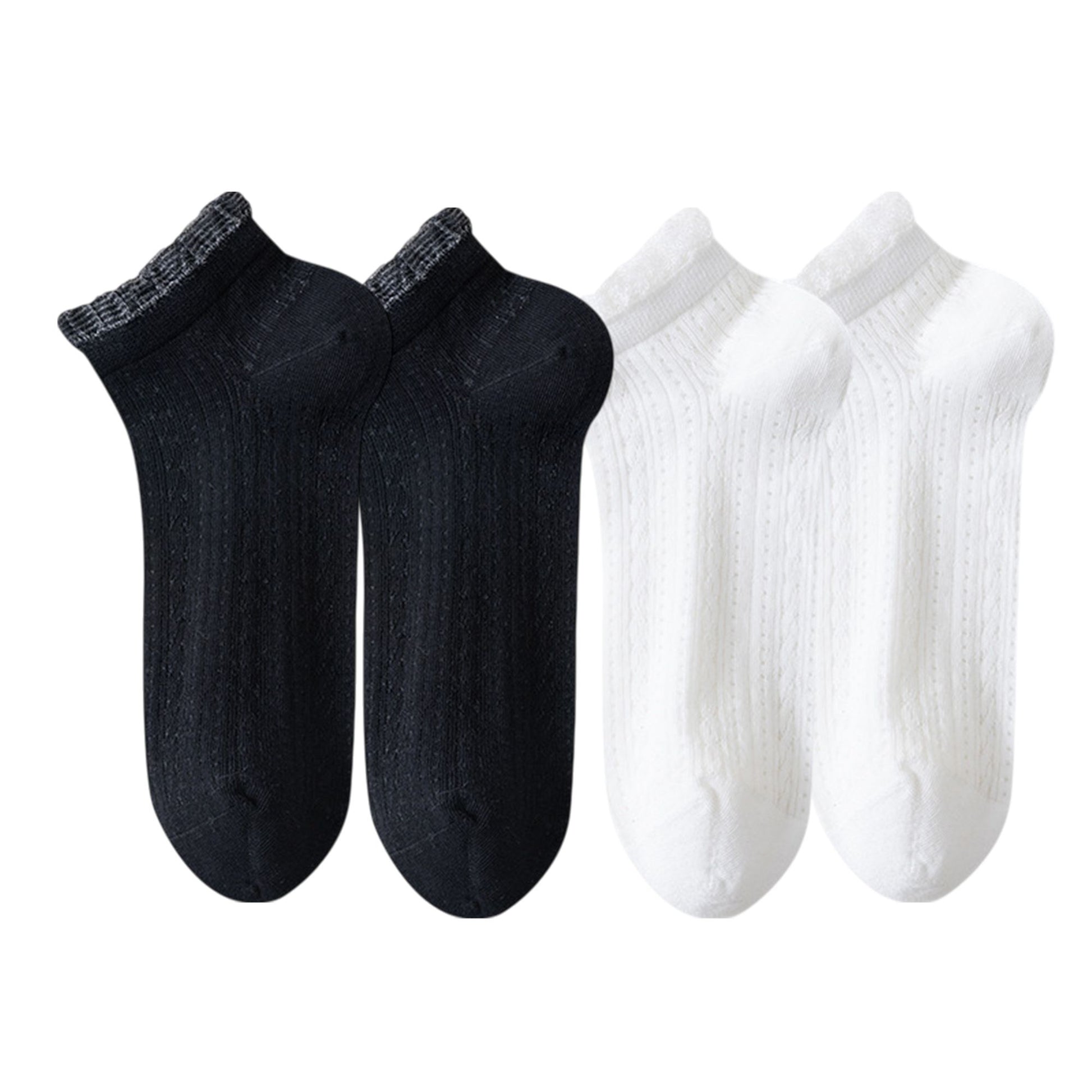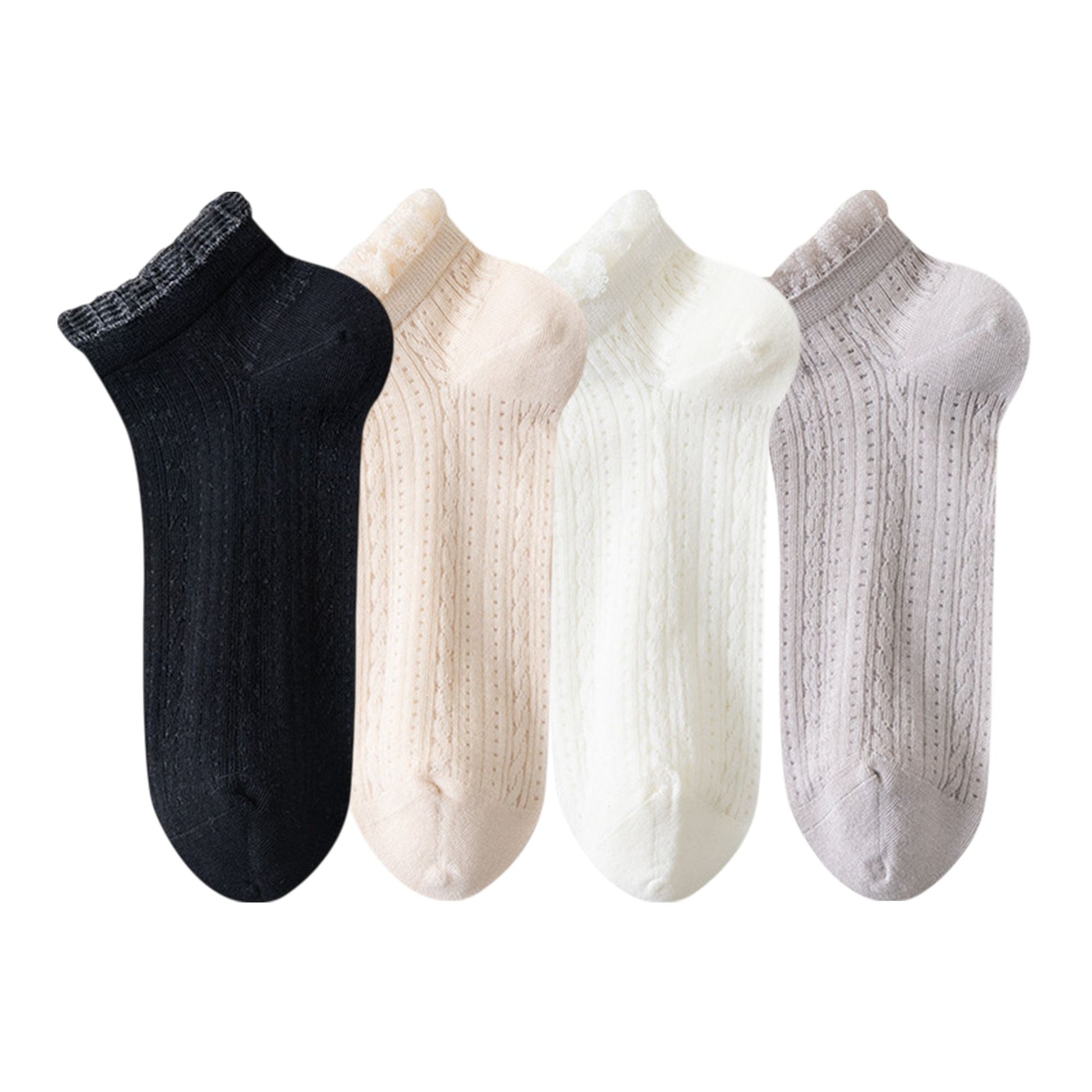 4-Pair Pack Breathable Lace Trim Ankle Socks with Open Knit Mesh Texture and Cotton Comfort