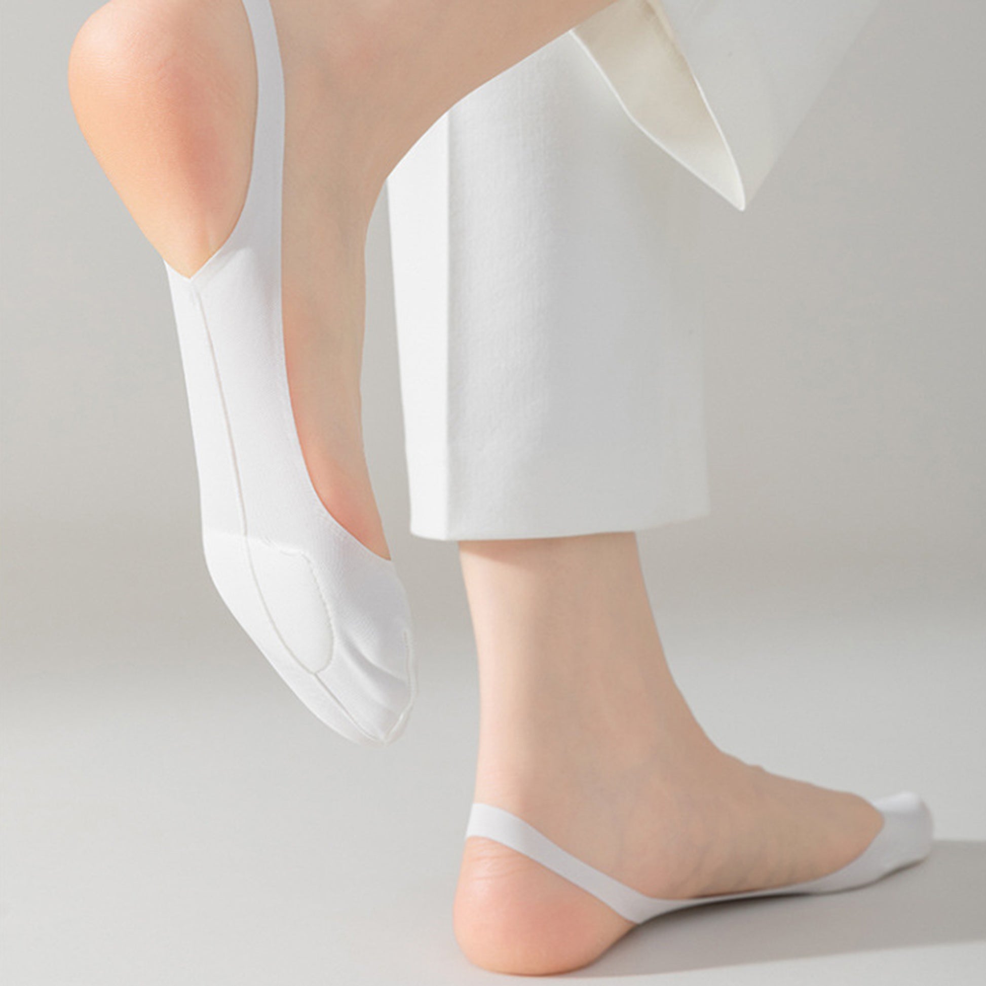 This 4-pair set of women¡¯s no show liner socks features a unique ballet-inspired design with elegant criss-cross elastic straps for added style and security. The low-cut silhouette stays hidden inside most shoes, while the soft, stretchy fabric offers a snug and breathable fit. Equipped with non-slip silicone at the heel, these socks stay in place all day long. Available in four versatile colors¡ªwhite, beige, gray, and black¡ªthey add a chic twist to your everyday essentials.