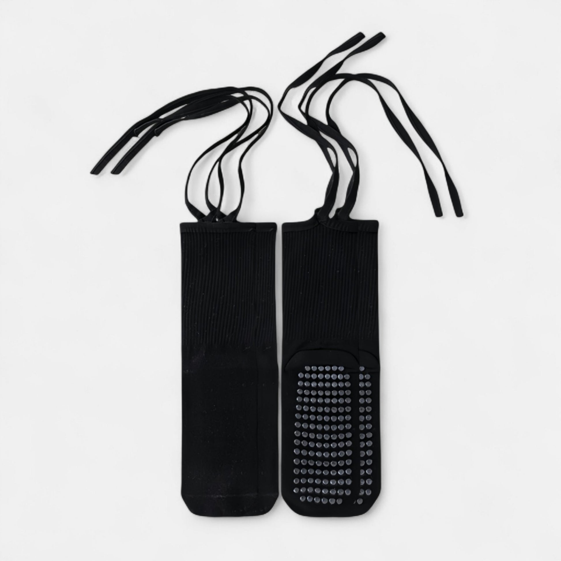 2-Pack Over-the-Calf Grip Socks with Ribbon Tie and Non-Slip Sole for Barre Pilates Yoga