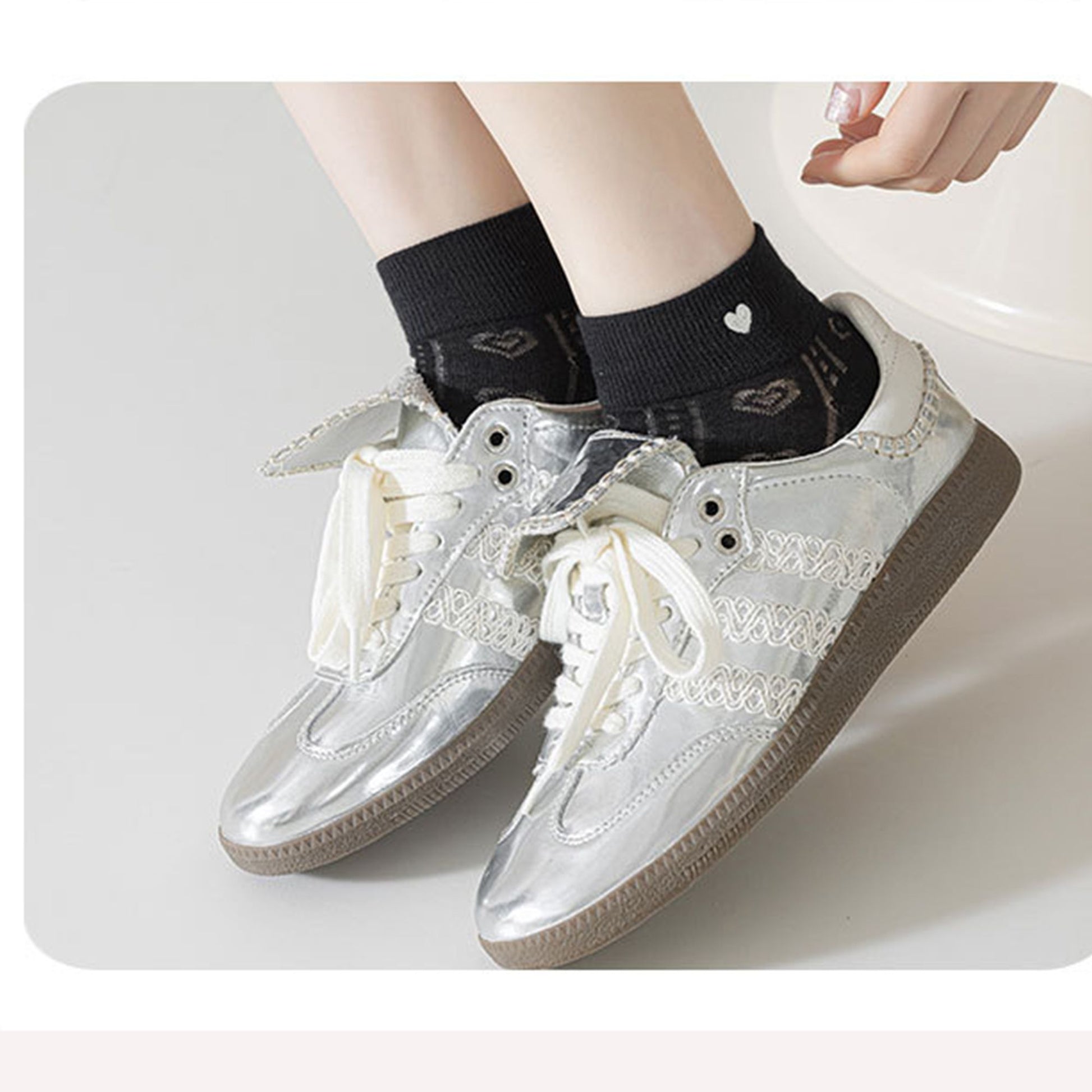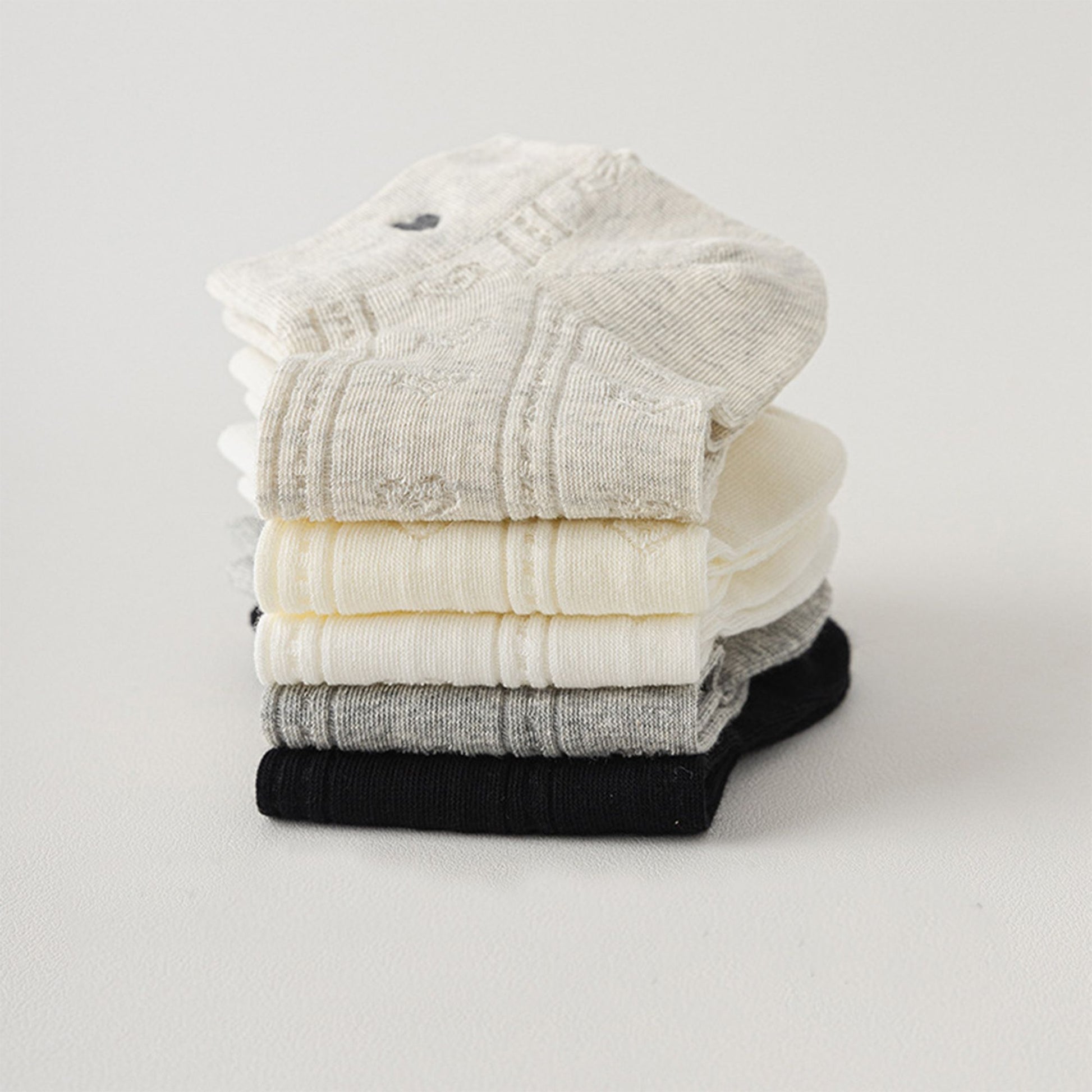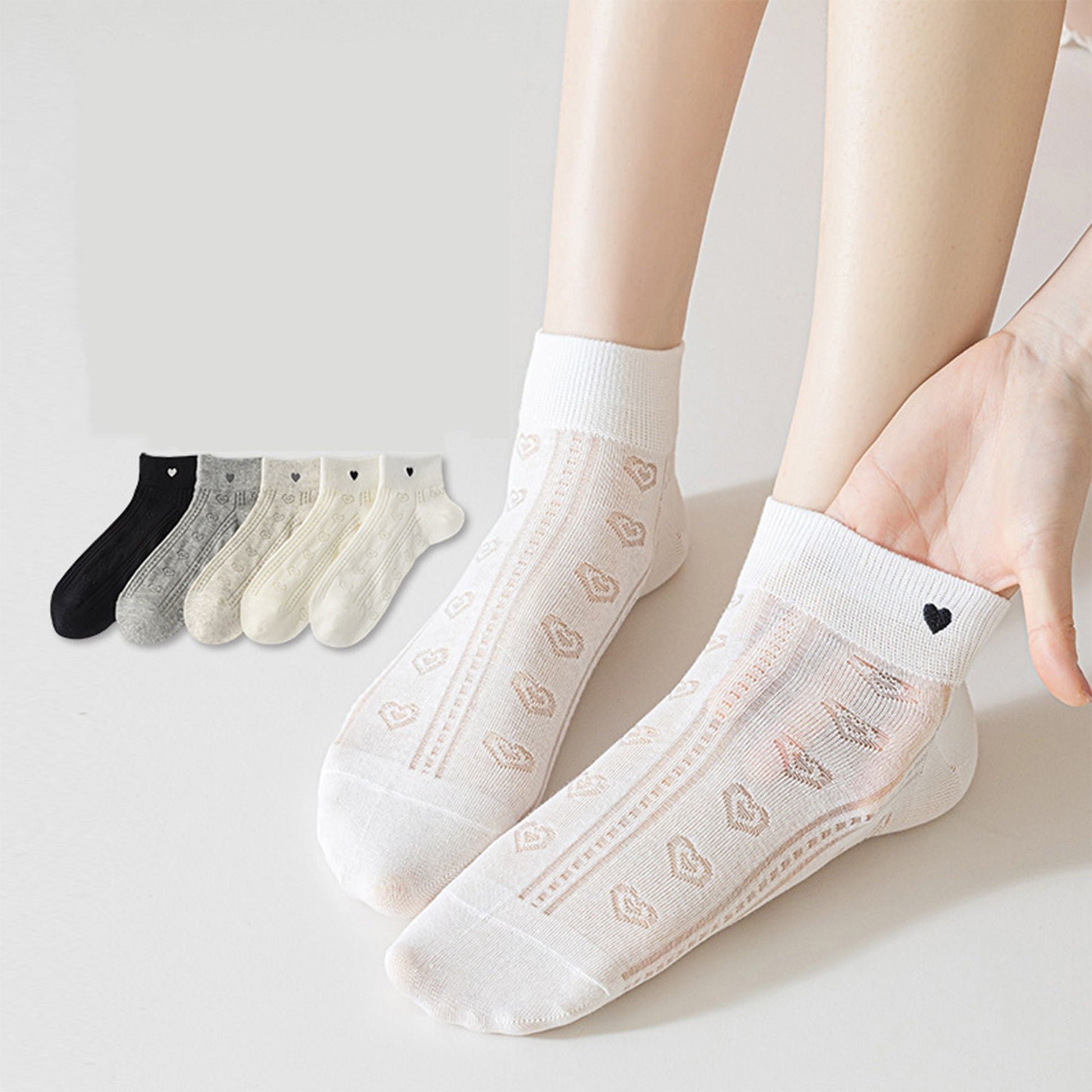 4 Pairs Heart Pattern Breathable Short Crew Socks Soft Stretch Knit Design Multiple Color Options