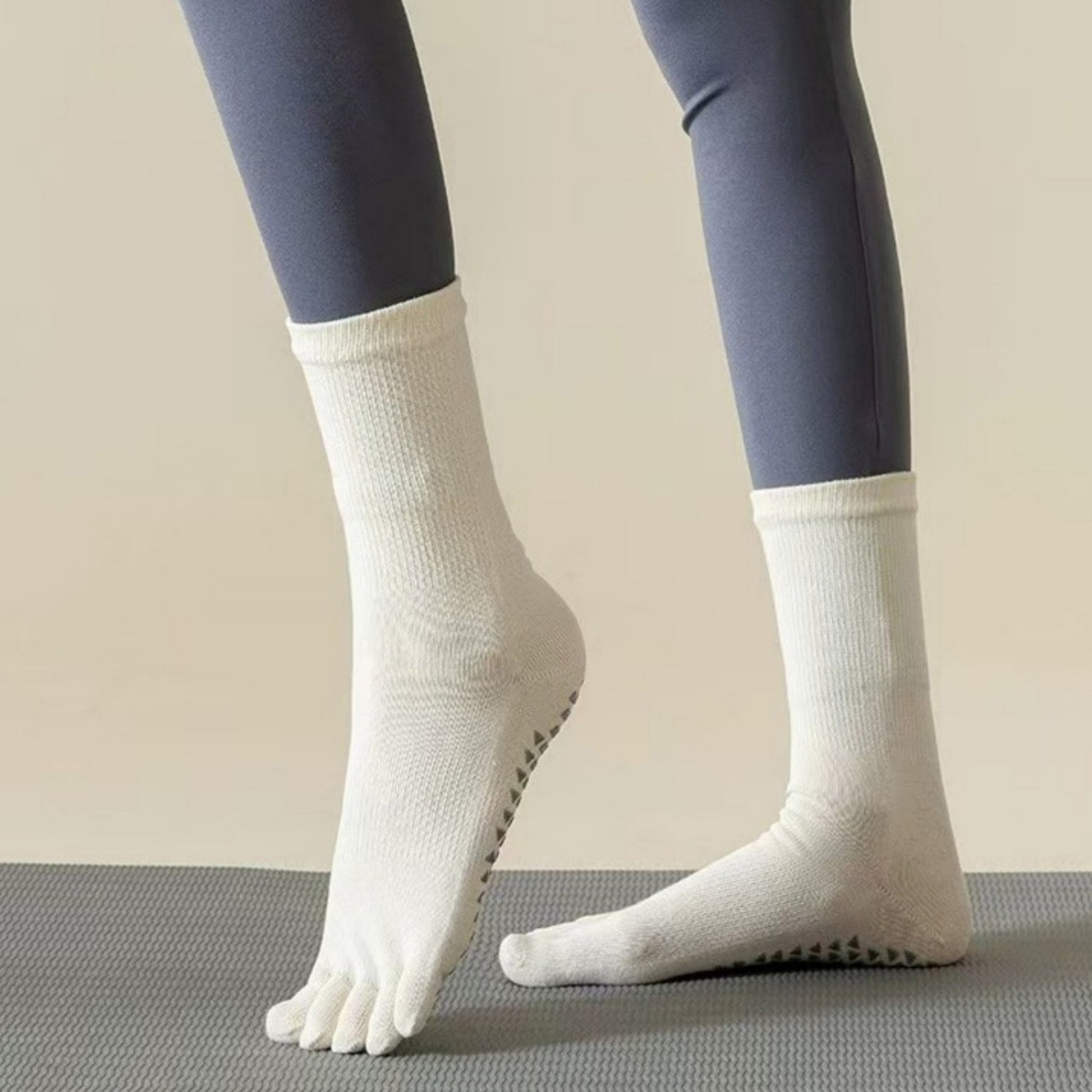 The Anna-Kaci Women's 2-Pack Grip Toe Socks combine comfort and functionality with a minimalist, studio-ready design. Featuring individual toe construction and anti-slip grip soles, these socks promote natural toe movement and enhanced balance during yoga, pilates, or barre. The ribbed knit fabric hugs the foot and calf for a secure, breathable fit. Available in versatile neutrals, this two-pack is perfect for active lifestyles that prioritize style and control.