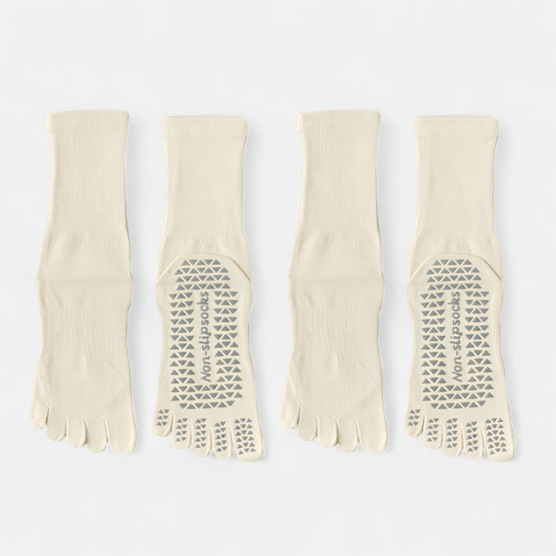 2-Pack Grip Toe Socks with Non-Slip Soles and Ribbed Knit in Neutral Tones for Yoga and Studio Classes
